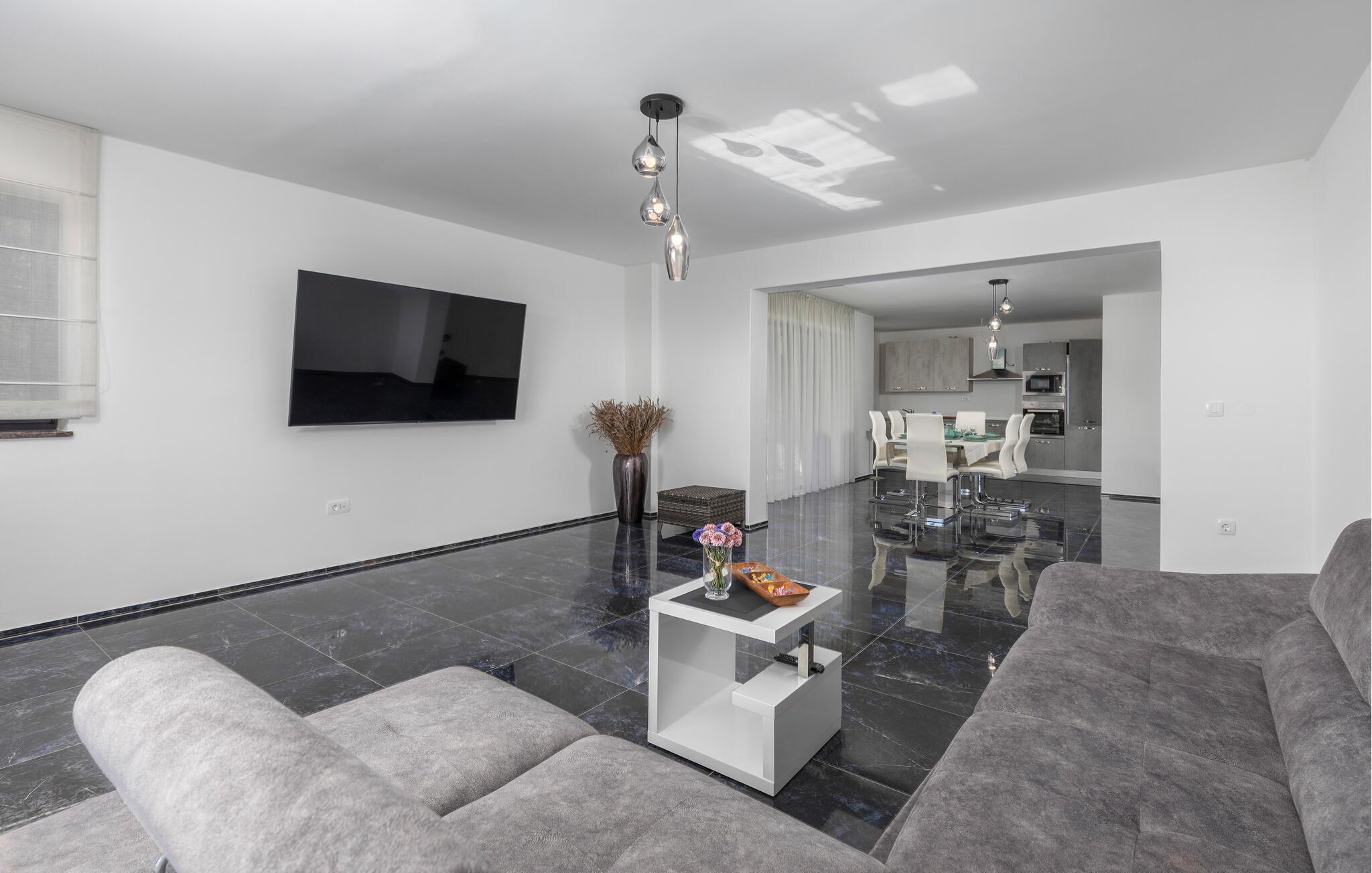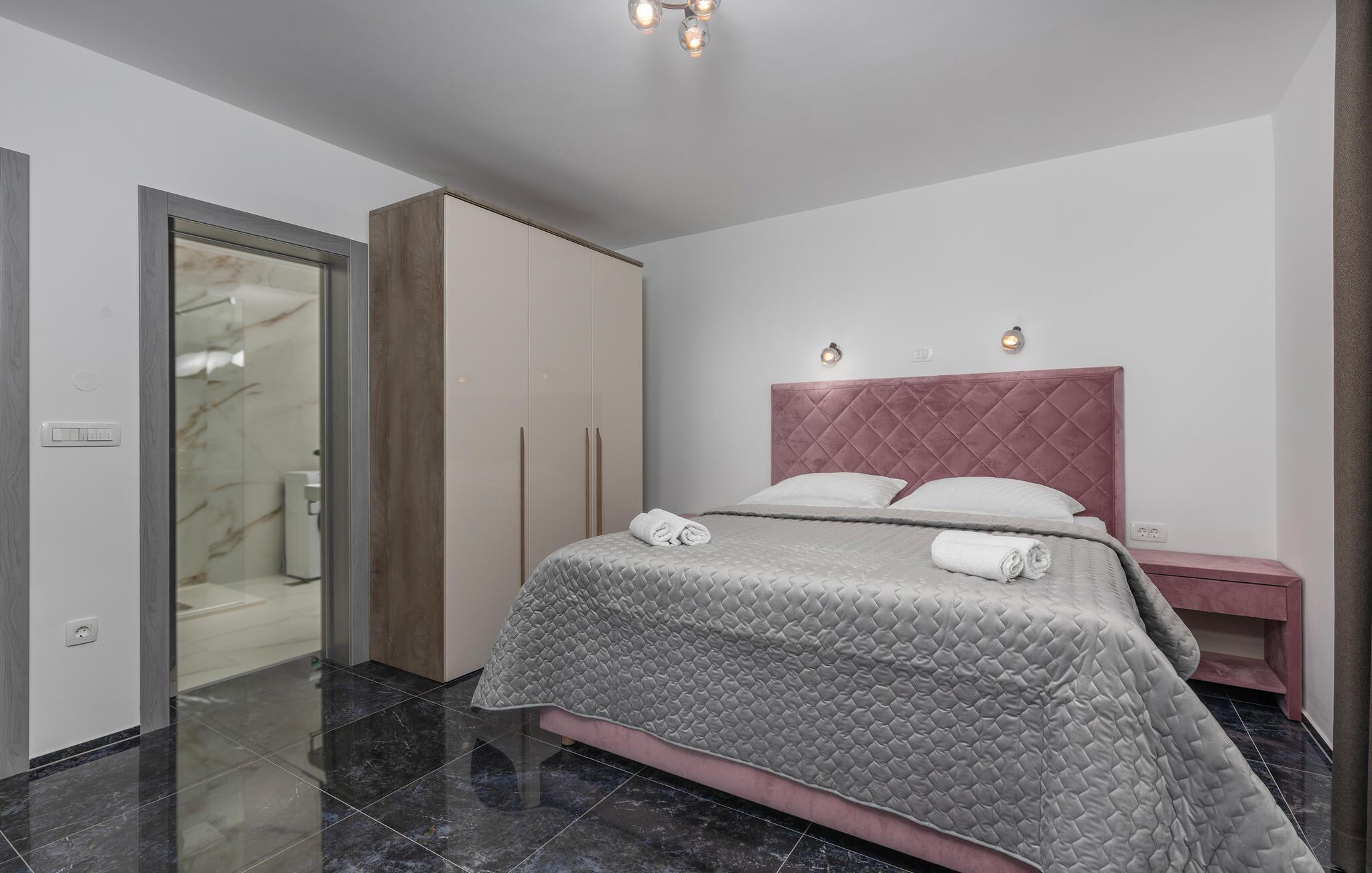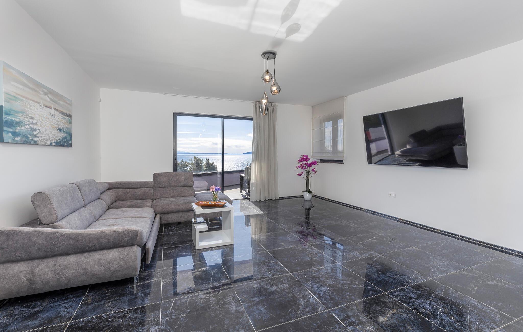 Am Meeresufer der Kvarner Bucht heißt Sie diese elegante Ferienwohnung willkommen. Bewundern Sie den Panoramablick auf das funkelnde Meerwasser, die ideale Szenerie für eine entspannende Auszeit. Nach einer geruhsamen Nacht begrüßen Sie auf Ihrer Terrasse die ersten Sonnenstrahlen. Beim Frühstück mit Meerblick steigt die Vorfreude auf lustige Strandtage und ausgiebige Entdeckungstouren in der Region. Doch zuerst gönnen Sie sich vielleicht ein erquickendes Bad im Pool, der an heißen Tagen Abkühlung verspricht. Im Whirlpool kommen Geist und Körper voll und ganz zur Ruhe.