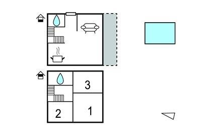 Badezimmer 5m2 (nr. 1) - WC. Warmes und kaltes Wasser. Dusche