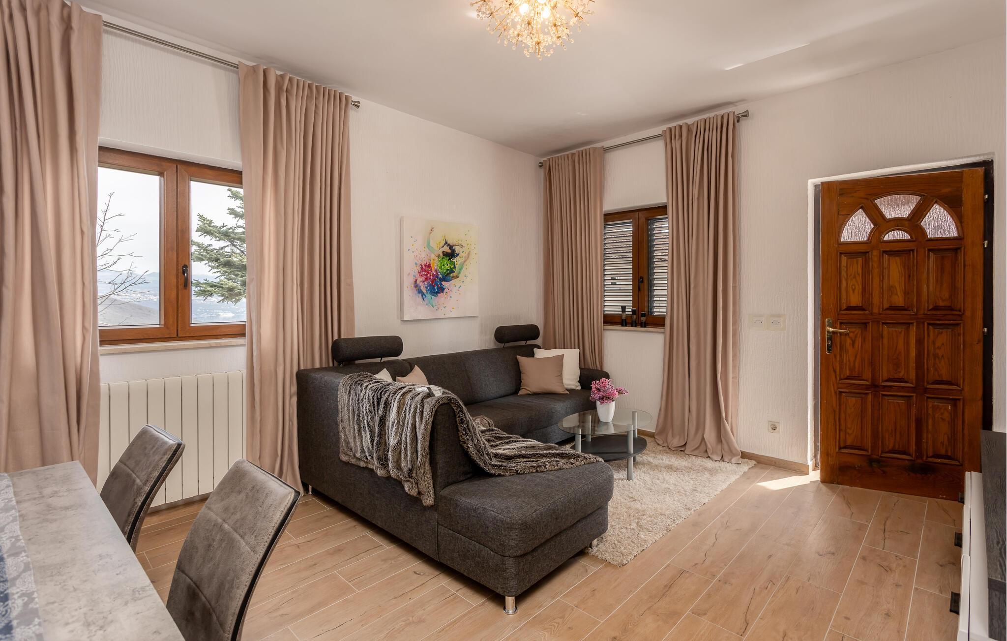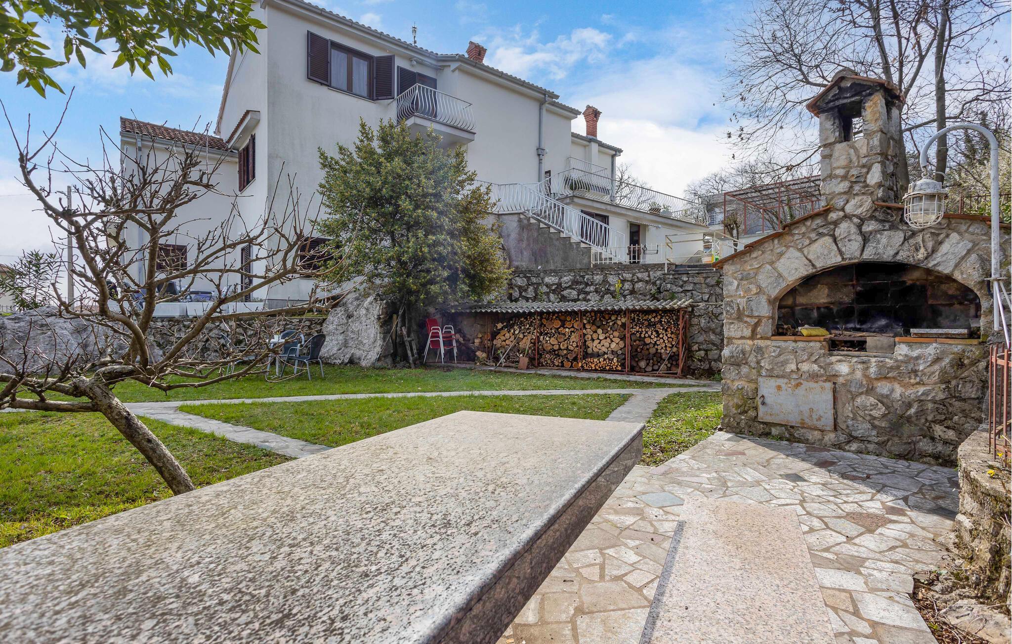 Genießen Sie nicht nur die schönen Innenräume, sondern freuen sich auch auf Mahlzeiten oder Sonnenbäder auf der Terrasse, von der Sie auch auf die Kvarner Bucht blicken können und Ihren Kindern beim Spielen auf dem eingezäunten Grundstück zusehen können. Bereiten Sie auf dem gemauerten Außengrill leckere Abendessen vor und besprechen beim Essen auf der großen und offenen Terrasse ihre nächsten Ausflugsziele.