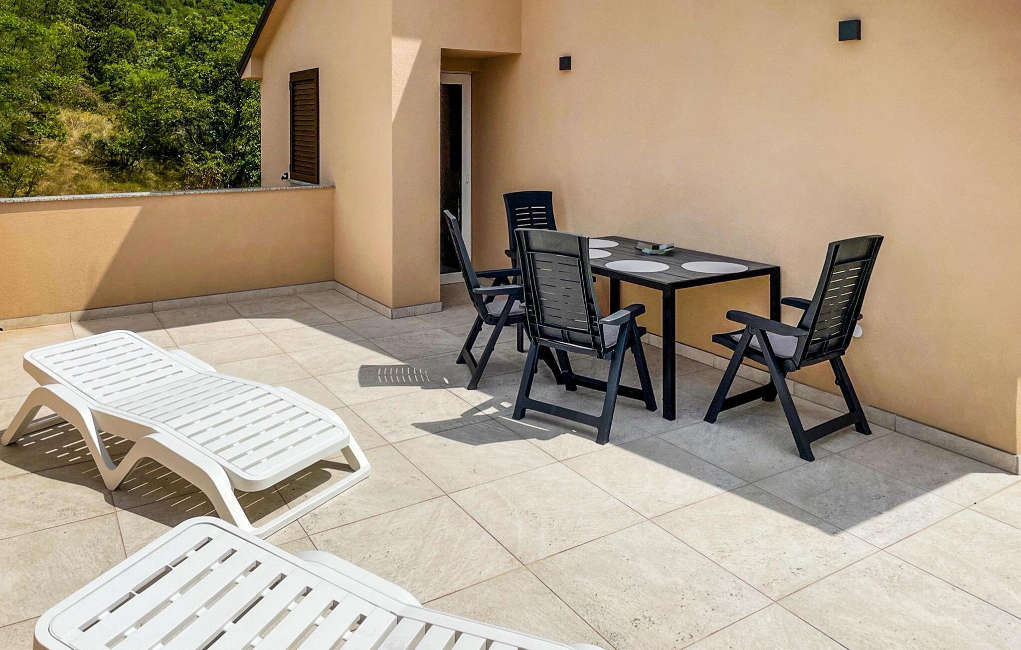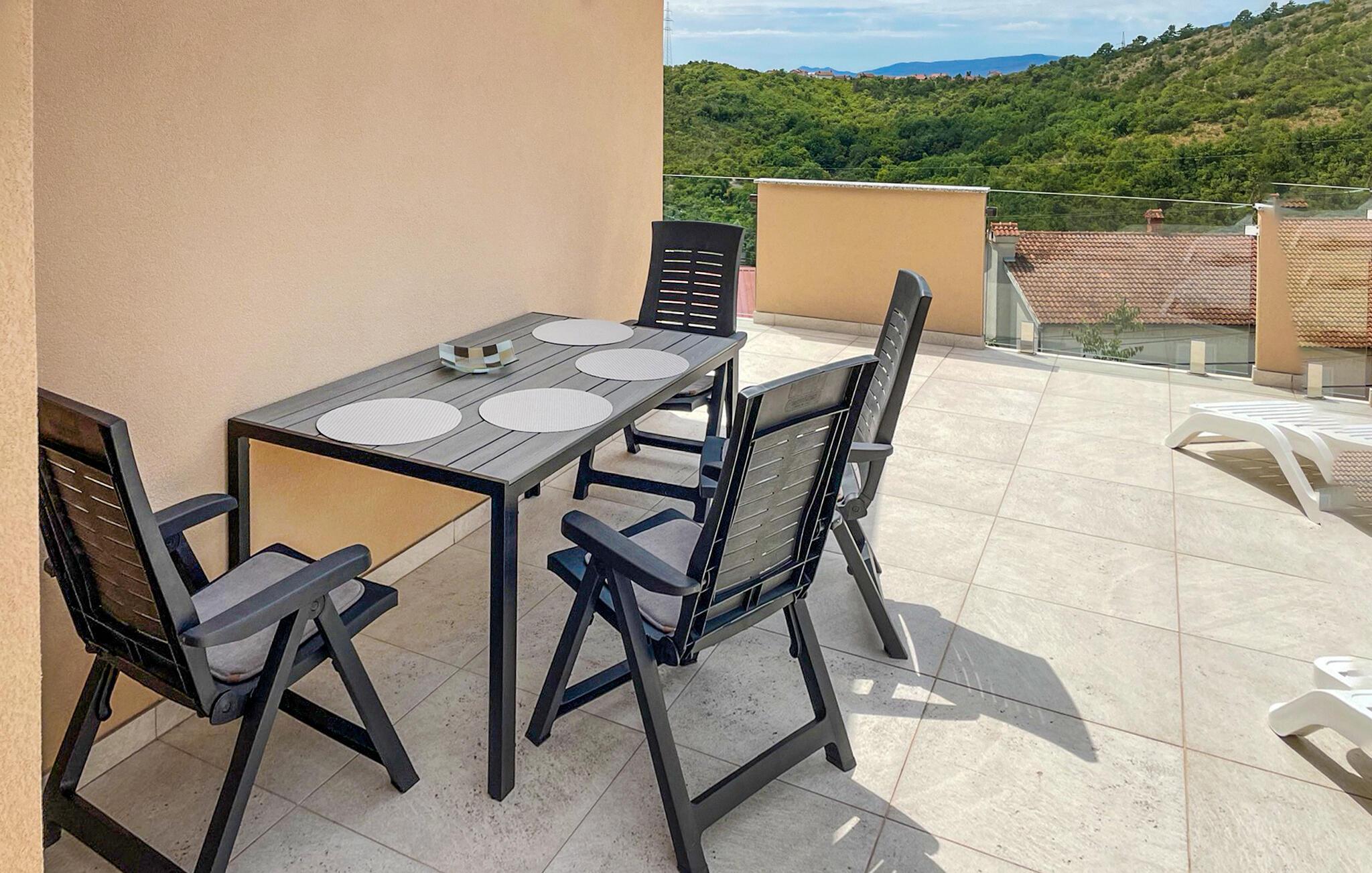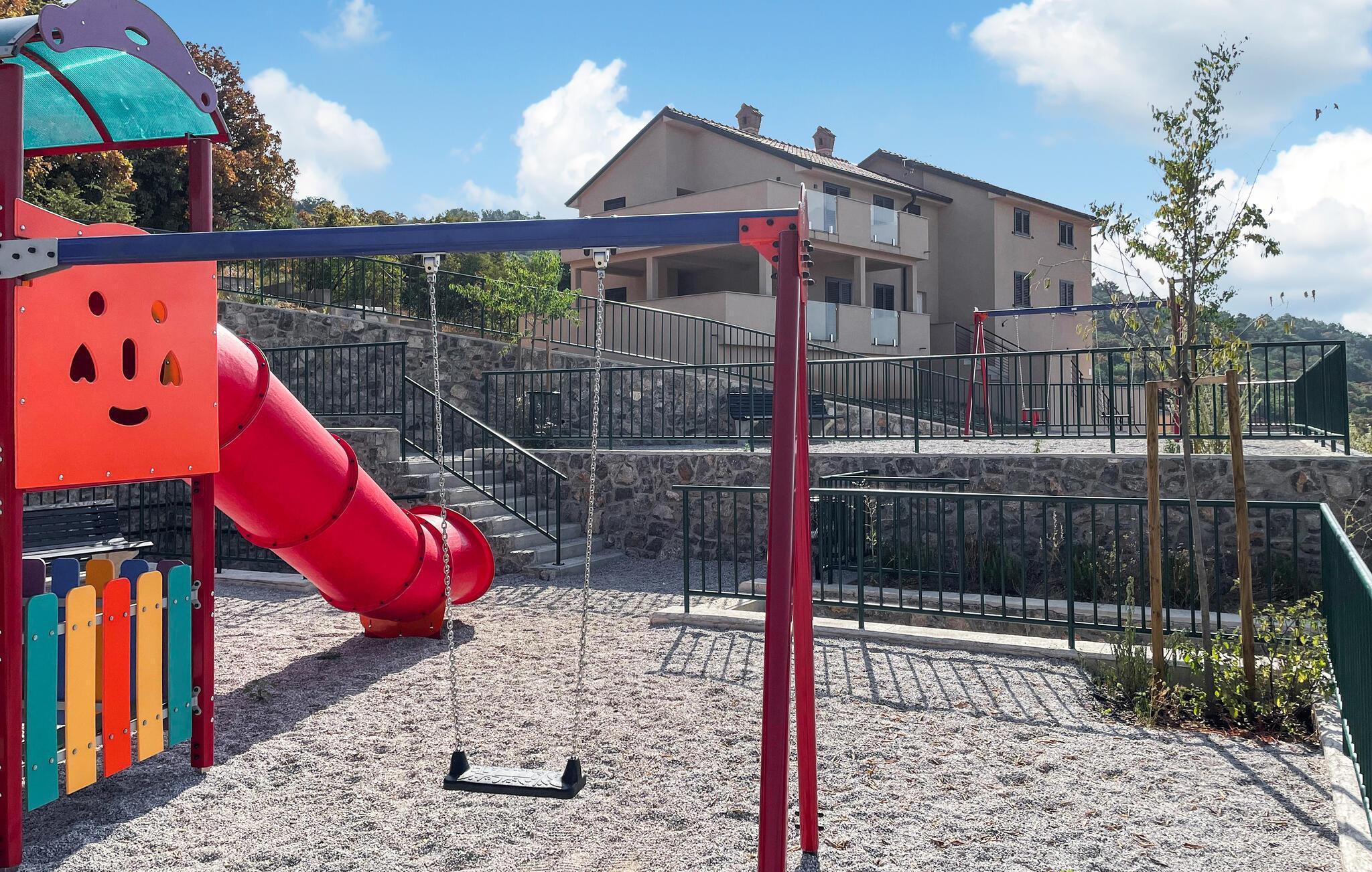 Direkt neben der Wohnung befindet sich ein Spielplatz, ideal für Familien mit Kindern. Lassen Sie Ihre Kinder auf den Schaukeln und Rutschen Spaß haben, während Sie den friedlichen Blick auf die grüne Umgebung genießen. Besuchen Sie die nahe gelegene Stadt Opatija mit ihren wunderschönen Parks und Promenaden oder unternehmen Sie einen Tagesausflug nach Rijeka, wo Kultur und Geschichte auf Sie warten.