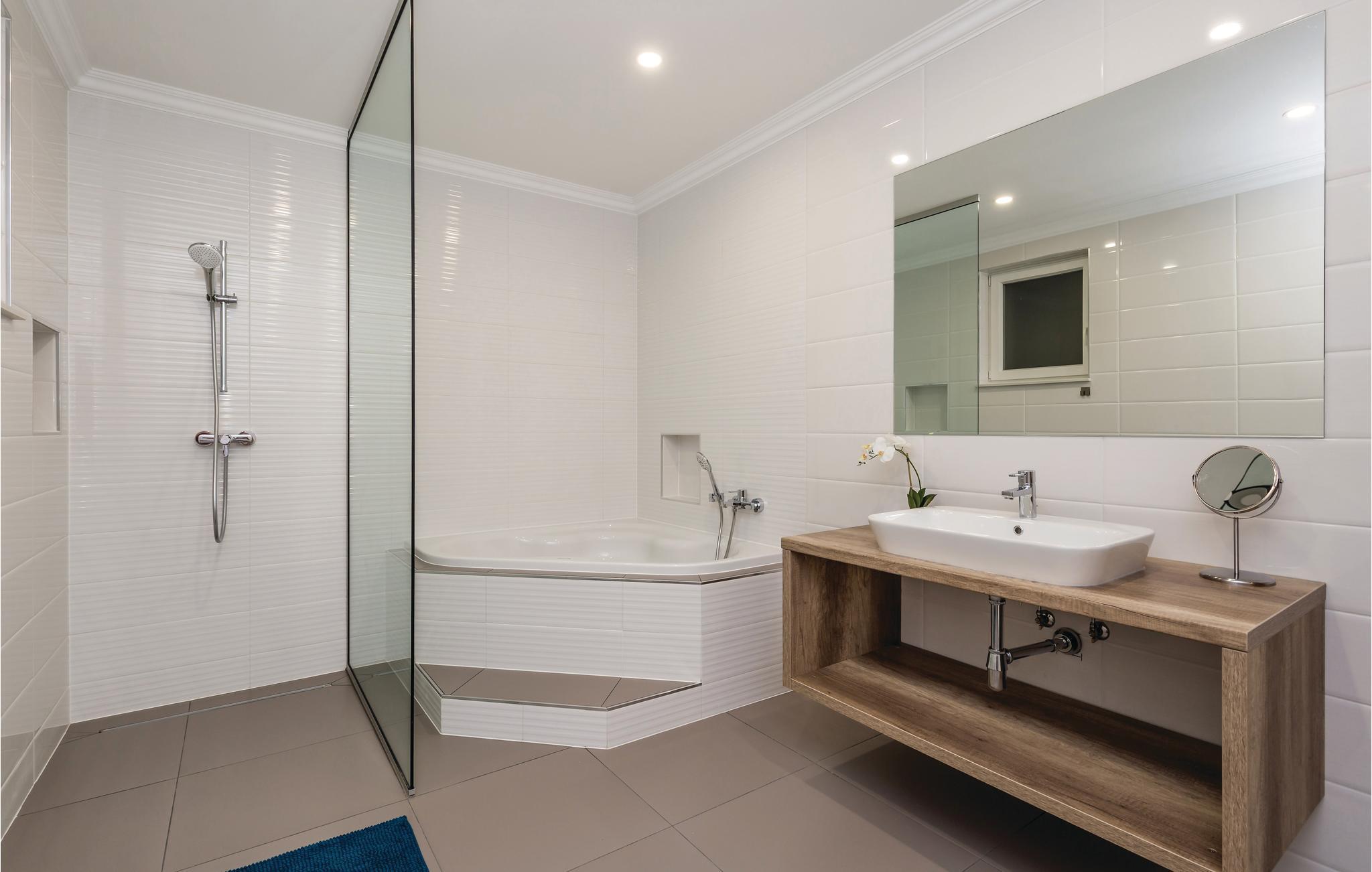 Badezimmer (nr. 1) - WC. Warmes und kaltes Wasser. Dusche und Badewanne
