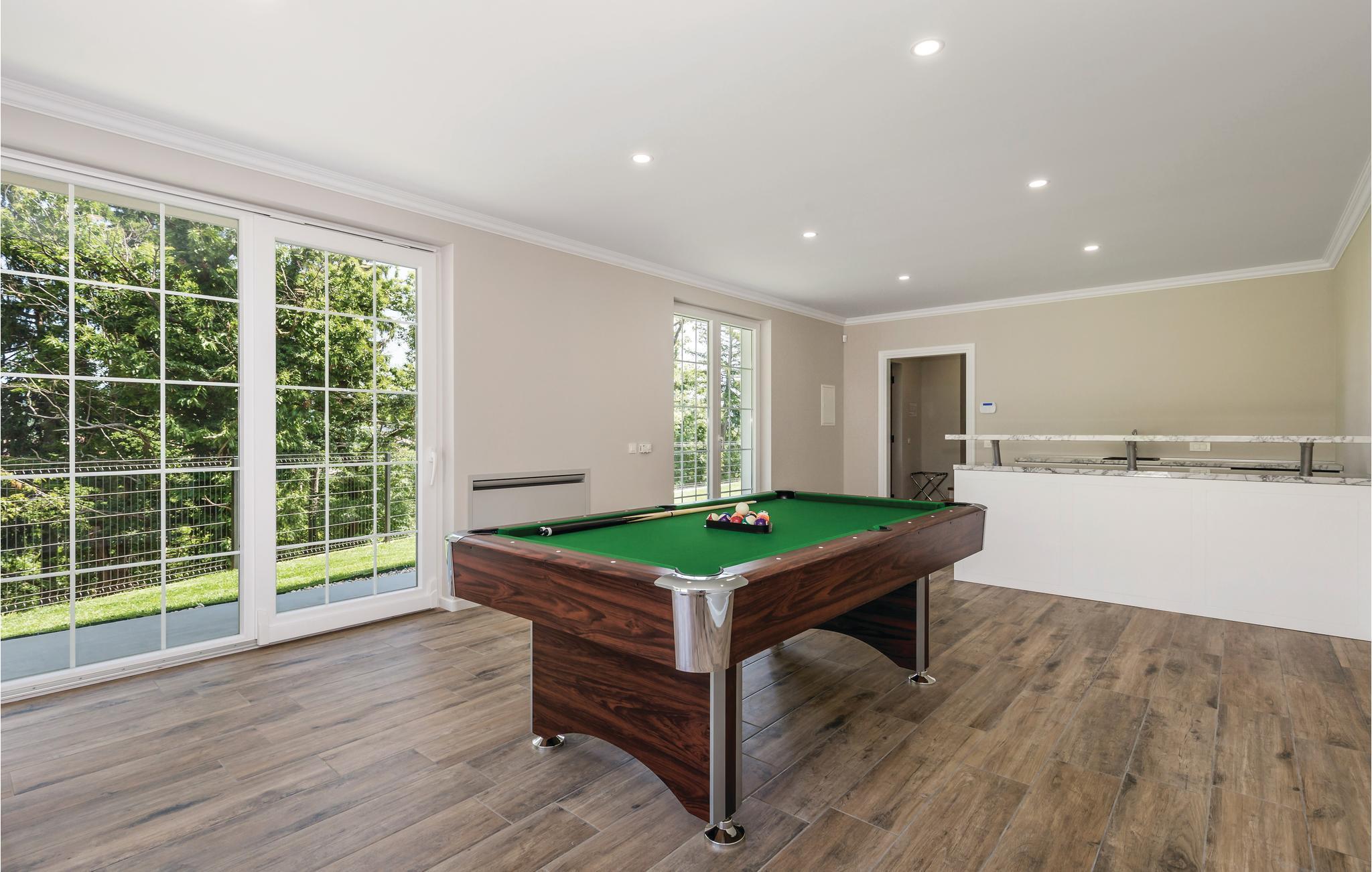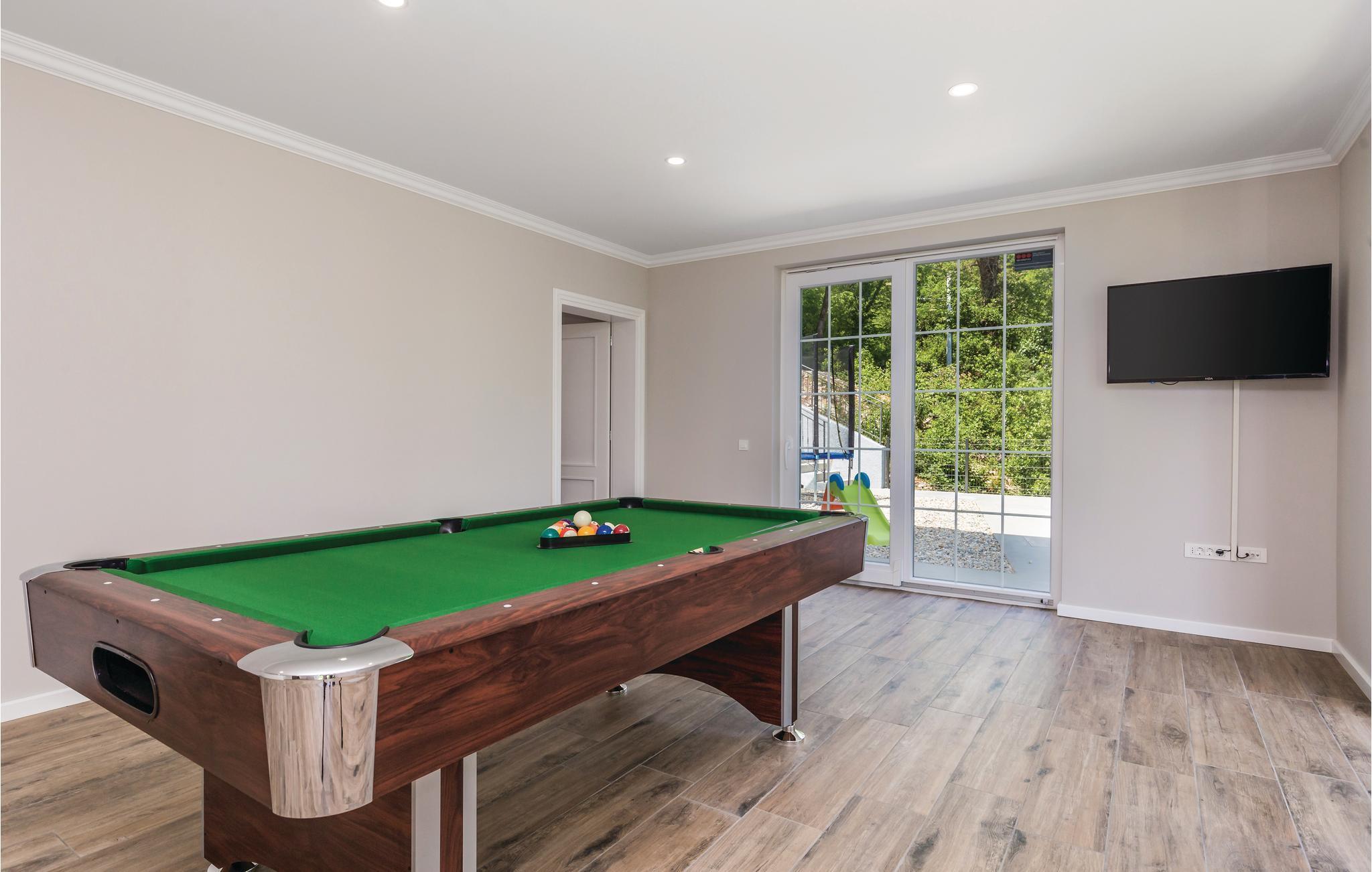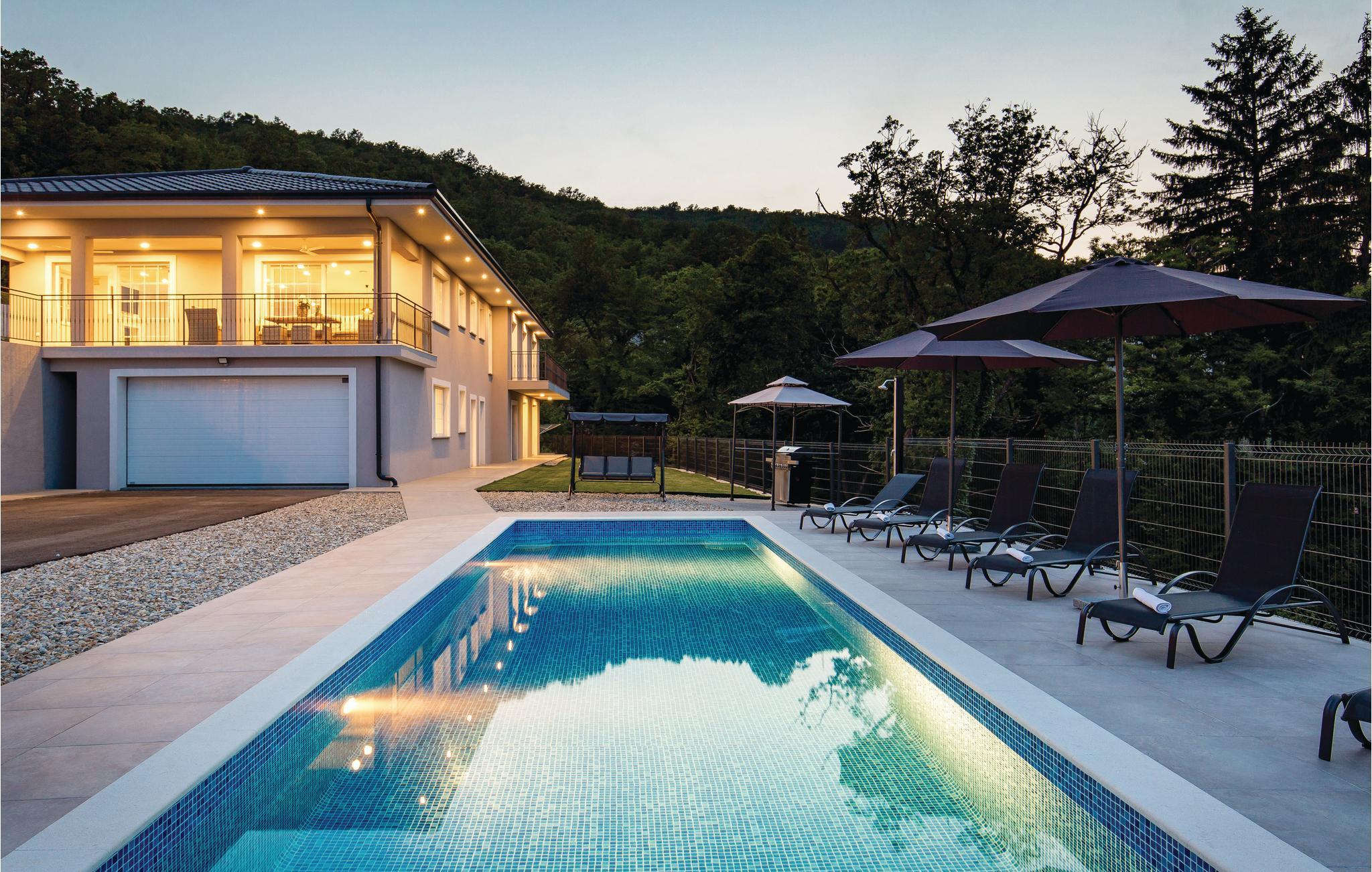 Am Fuße des Berges Ucka und oberhalb der wunderschönen Küstenstadt Opatija befindet sich dieses beeindruckende Ferienhaus. Es liegt am Rande eines Waldes, abseits vom Stadtlärm, im Ort Matulji, wo Sie sich fantastisch erholen können. Das stilvoll eingerichtete Ferienhaus liegt auf einem ca. 3000 m² großen und umzäunten Grundstück. Im Inneren gibt es große Glasflächen, die den Innenraum mit Licht durchfluten und einen direkten Bezug zum natürlichen Außenbereich mit Pool, Liegestühlen und Grill herstellen. Die Wohnfläche verteilt sich über zwei Etagen. Im Erdgeschoss sind Wohnzimmer mit Billard, Schlafzimmer, Bad und Aufenthaltsraum, während Wohnküche, vier Schlafzimmer, zwei Bäder und ein separater Wasch- und Bügelraum im Obergeschoss sind. Aktivurlauber können die Umgebung auf Rad- und Wanderwegen erkunden. In wenigen Autominuten erreichen Sie die Stadt Opatij, in der Sie viele Restaurants, Bars und Strände finden. Die ca. 12 km lange Promenade lädt zu Spaziergängen ein. Parken in der Garage.