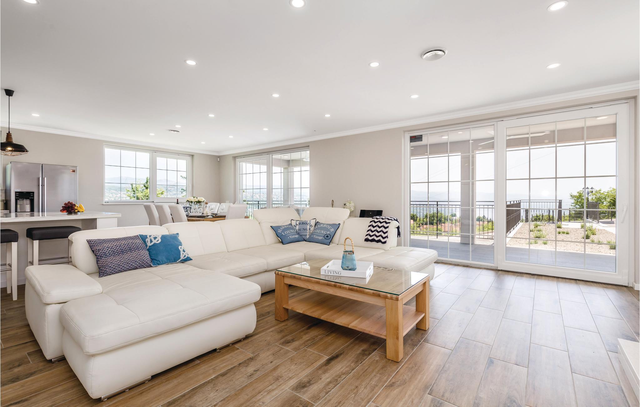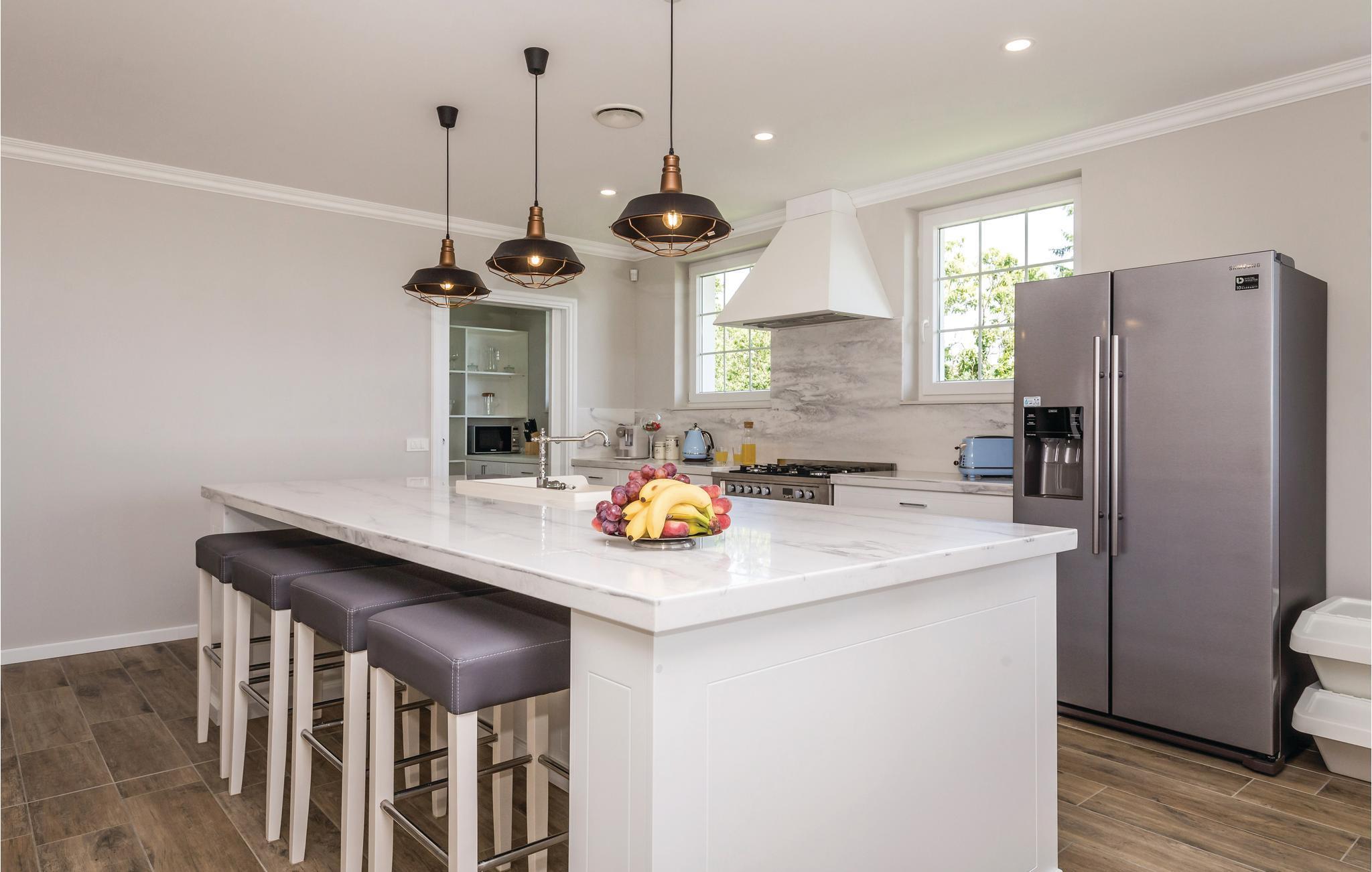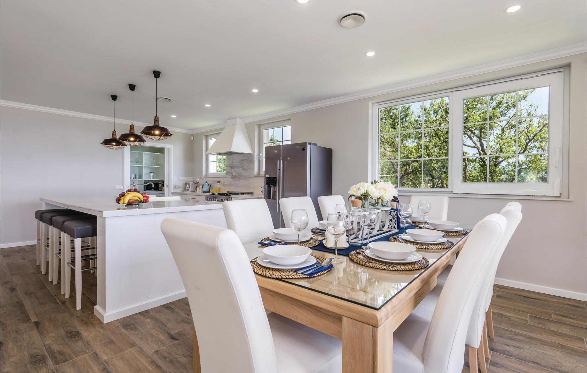 Am Fuße des Berges Ucka und oberhalb der wunderschönen Küstenstadt Opatija befindet sich dieses beeindruckende Ferienhaus. Es liegt am Rande eines Waldes, abseits vom Stadtlärm, im Ort Matulji, wo Sie sich fantastisch erholen können. Das stilvoll eingerichtete Ferienhaus liegt auf einem ca. 3000 m² großen und umzäunten Grundstück. Im Inneren gibt es große Glasflächen, die den Innenraum mit Licht durchfluten und einen direkten Bezug zum natürlichen Außenbereich mit Pool, Liegestühlen und Grill herstellen. Die Wohnfläche verteilt sich über zwei Etagen. Im Erdgeschoss sind Wohnzimmer mit Billard, Schlafzimmer, Bad und Aufenthaltsraum, während Wohnküche, vier Schlafzimmer, zwei Bäder und ein separater Wasch- und Bügelraum im Obergeschoss sind. Aktivurlauber können die Umgebung auf Rad- und Wanderwegen erkunden. In wenigen Autominuten erreichen Sie die Stadt Opatij, in der Sie viele Restaurants, Bars und Strände finden. Die ca. 12 km lange Promenade lädt zu Spaziergängen ein. Parken in der Garage.