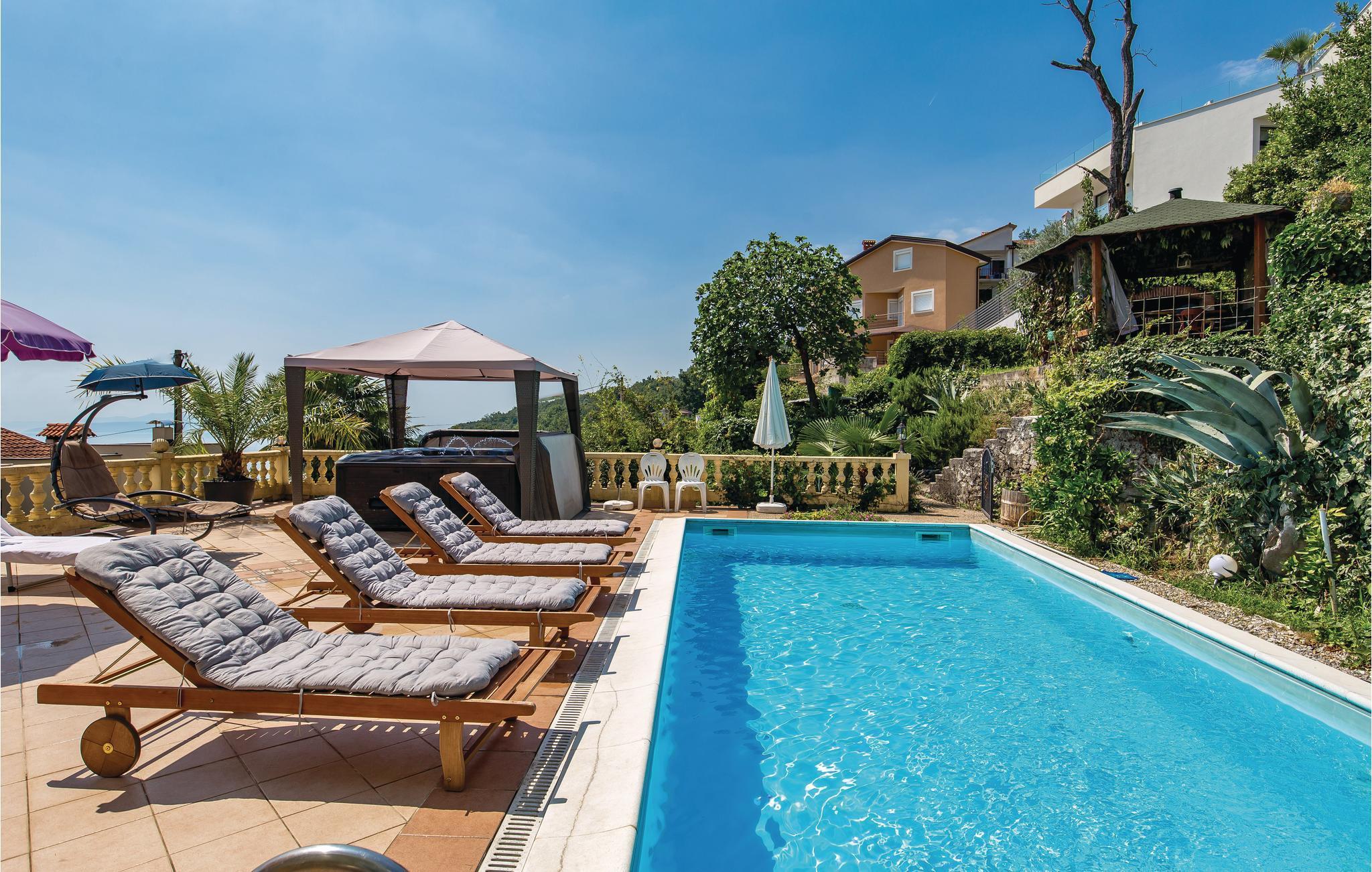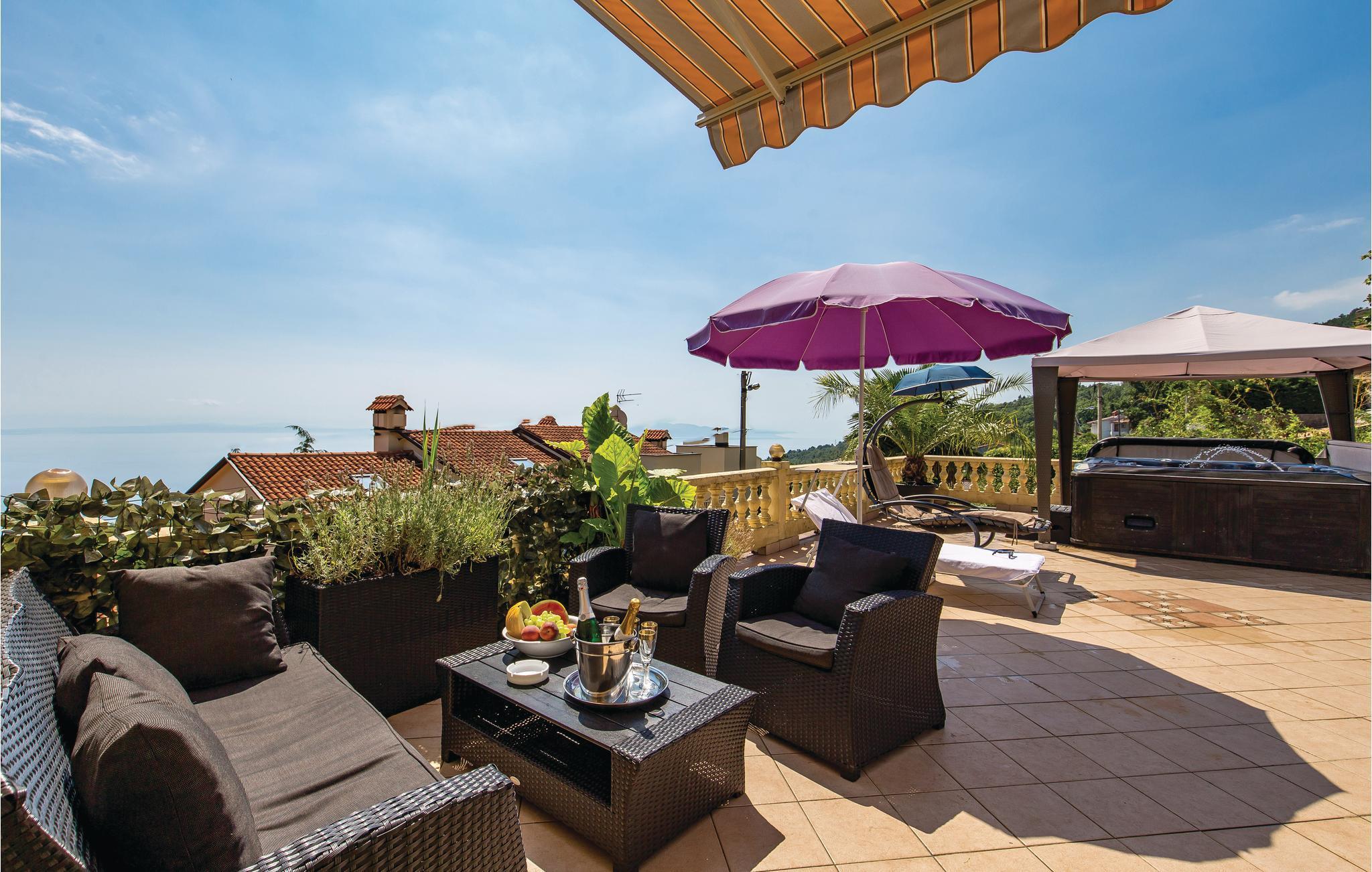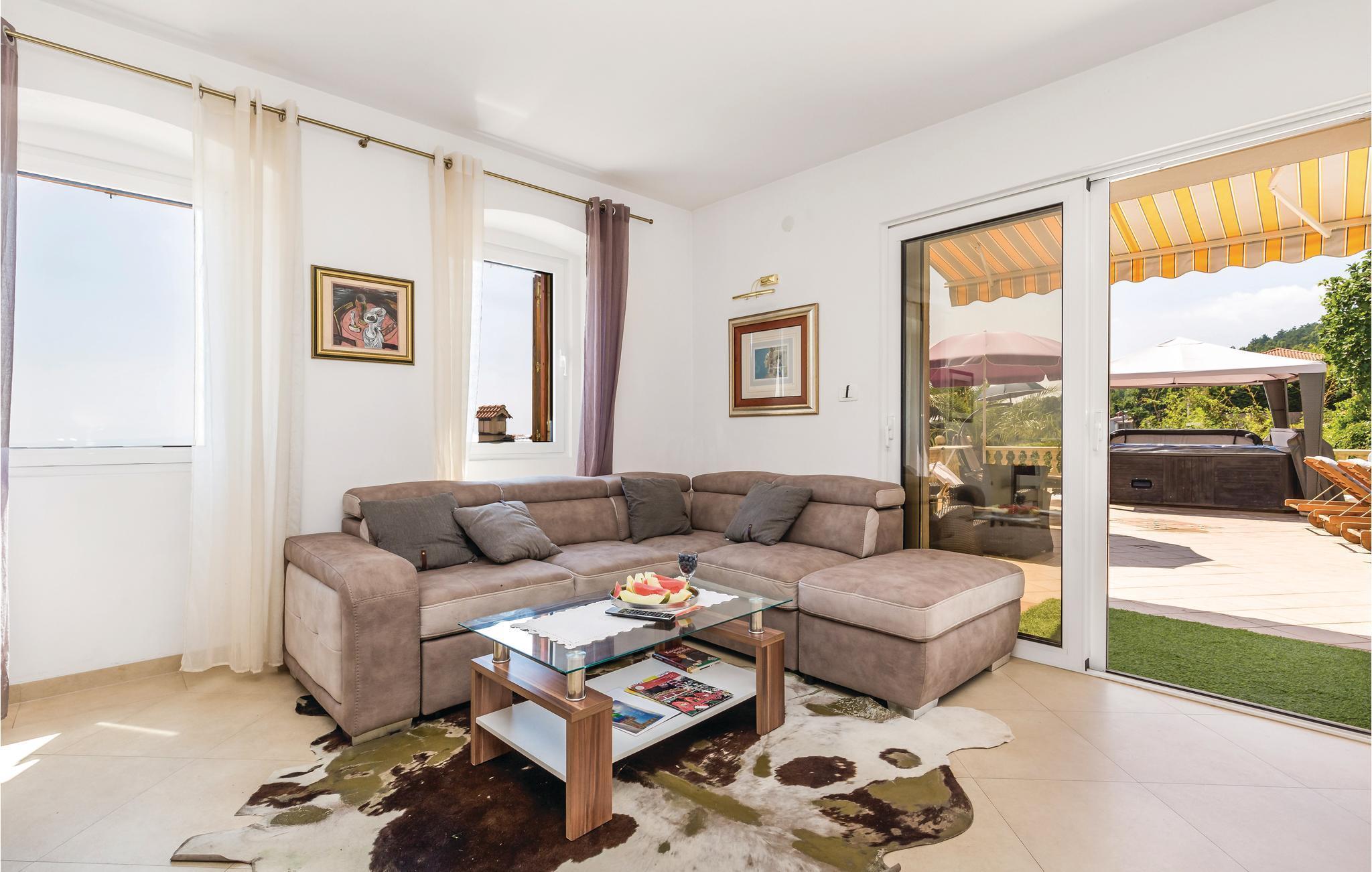 Erleben Sie einen perfekten Urlaub oberhalb der Kvarner Bucht, in der Nähe des Naturparks Ucka, wo sich die kleine Ortschaft Bregi befindet. Das Ferienhaus ist geschmackvoll und komfortabel eingerichtet. Das Erdgeschoß und der erste Stock sind mit einer Außentreppe verbunden. Die minimalste Deckenhöhe in einem Teil des Hauses beträgt 90 cm, was aber den Komfort keineswegs beeinträchtigt, da das Haus sehr geräumig ist. Entspannen Sie in der Sauna, erfrischen Sie sich im Pool und genießen Sie von der Terrasse den Ausblick auf das Blau des Meeres und das Grün der idyllischen Wälder. Verbringen Sie gesellige Stunden in der Gartenlaube mit Grill oder in der rustikalen Taverne mit einem Kamin, einer komplett ausgestatteter Küche und einem Billardtisch. Erleben Sie den Duft des Lavendels und das grüne Farbenspiel der Olivenhaine. Das Grundstück ist schön angelegt und umzäunt, was Ihren Kindern ein unbeschwertes Spielen ermöglicht. Mit dem Auto erreichen Sie schnell die Strandpromenaden und Badestrände, wo Sie sich im kristallklaren Meer erfrischen können. Besuchen Sie kulturelle Veranstaltungen, Konzerte und hervorragende Restaurants in Opatija. Unternehmen Sie romantische Spaziergänge in den märchenhaften Wäldern des Nationalparks Ucka oder andere Ausflüge zu den umliegenden Inseln, den Nationalparks Risnjak und den Plitwitzer Seen, sowie den Ortschaften in Istrien.