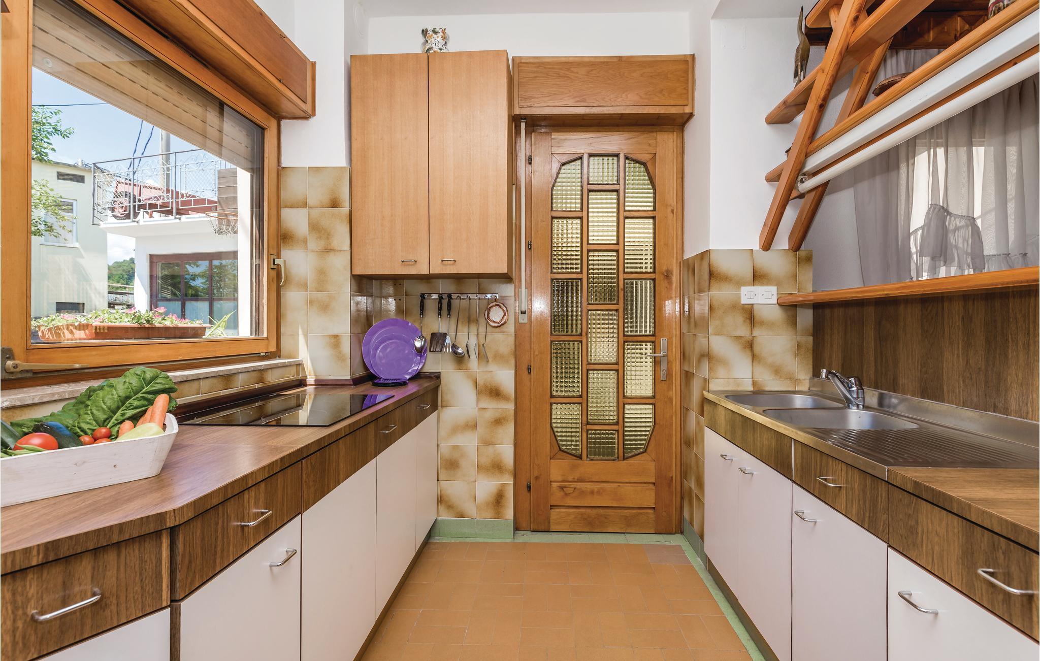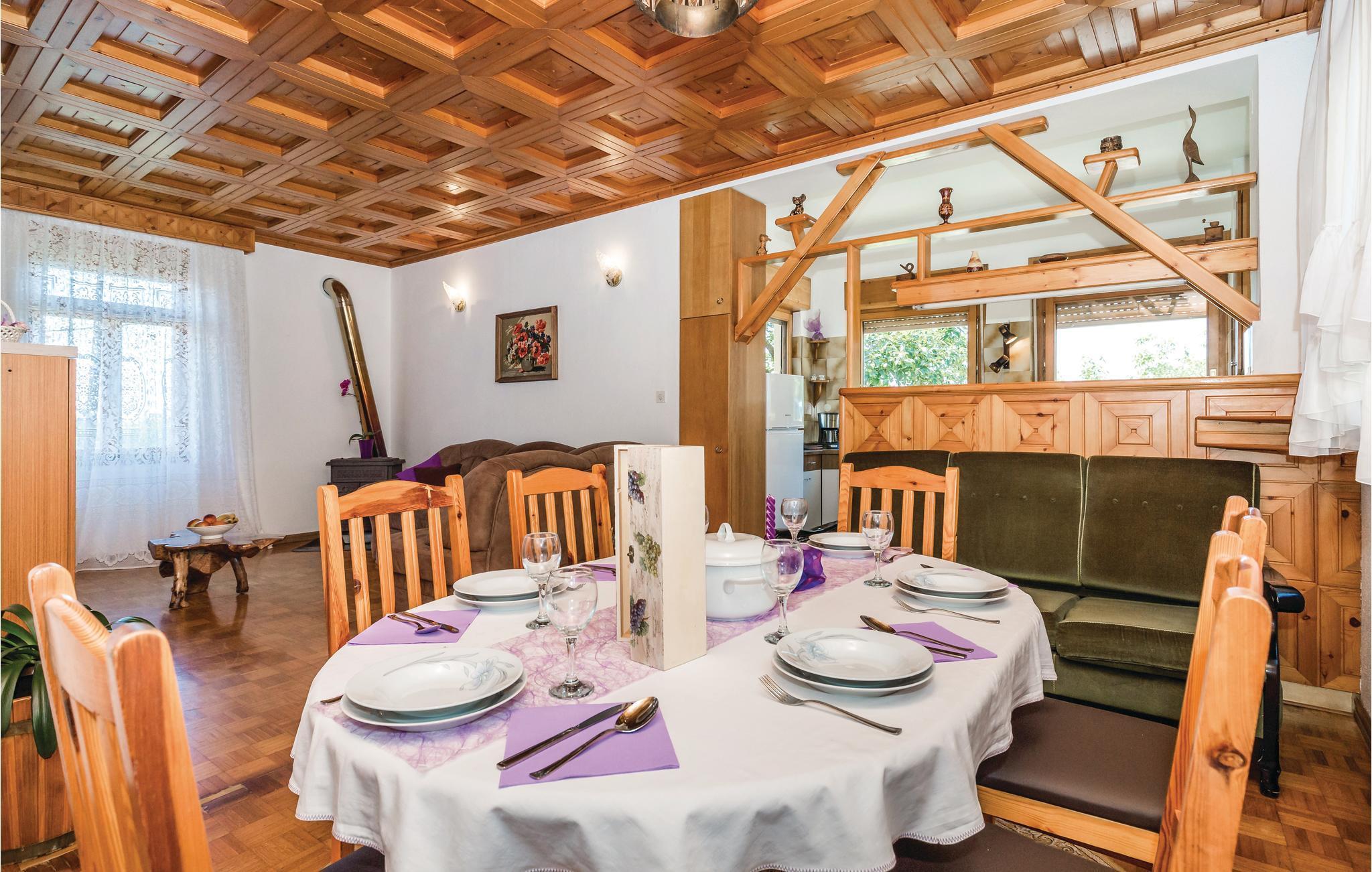 Im Erdgeschoss gelegen, werden Sie in dieser Ferienwohnung von einer Einrichtung, dominiert von Holz, praktischer Raumaufteilung und hellen Wänden, empfangen. Ein traditionelles, rustikales Ambiente wird durch die Holzdecken gegeben. Das Haus liegt in einer grünen Wohngegend mit Villen und zwei Restaurants in nächster Nähe. Gegen Westen geht das Dorf Bregi in eine Waldlandschaft über, der südliche Teil dieses ausgedehnten Naturgebietes wird vom Naturpark Ucka eingenommen. Bregi ist hinter Opatija platziert und von der Stadt durch einen grünen Gürtel und die Straße E751 (200 m Luftlinie vom Haus) getrennt. Sie genießen hier eine Lage abseits von urbanen Einrichtungen und Verkehrslärm, Sie können hier einen ruhigen und entspannenden Urlaub verbringen. Sogar zwei schöne Terrassen haben Sie zur Verfügung: eine vor der Wohnung mit einer schattigen Lage und die andere hinten, die eine Gemeinschaftsterrasse mit Grill ist. Wenn Sie Abwechslung vom Landleben suchen, finden Sie dies in Opatija, wo es zahlreichen Restaurants und Cafés gibt.