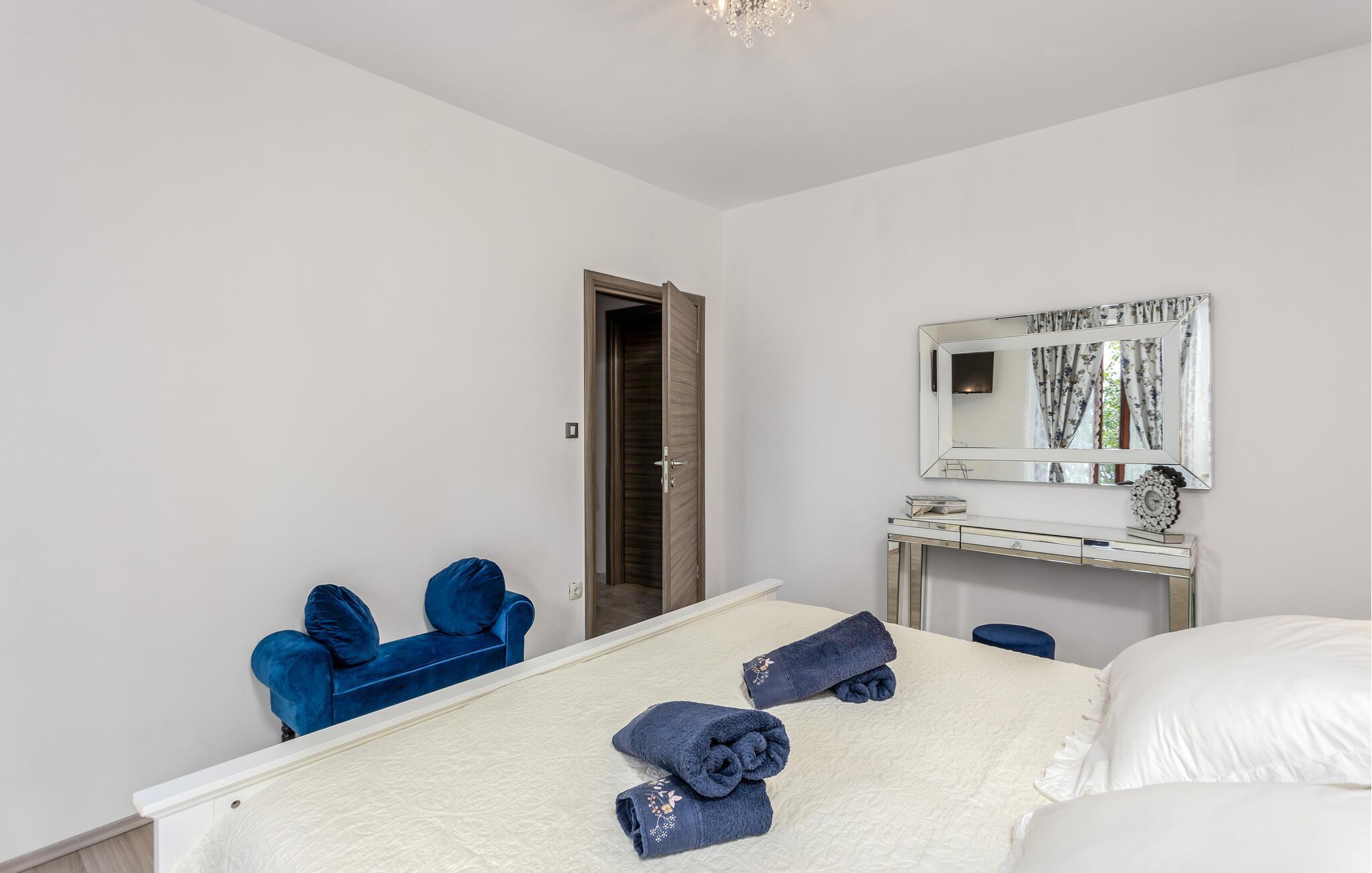 Diese komfortable Ferienwohnung befindet sich im ersten Stock in Bregi. Bregi liegt etwas erhöht über der Ortschaft Opatija, was Ihnen einen herrliches Panorama auf das Meer ermöglicht. Es gibt einen den Außenwhirlpool, der nur Ihnenzur Verfügung steht.