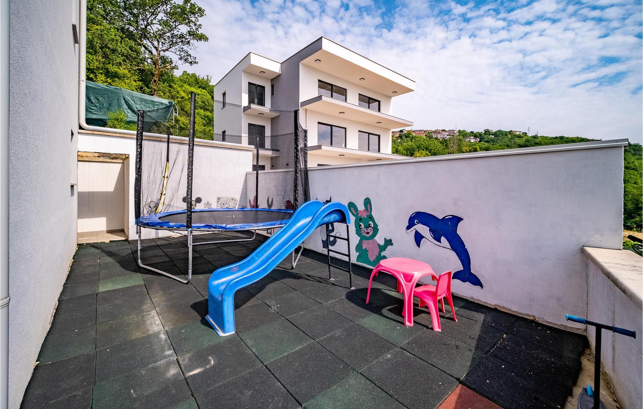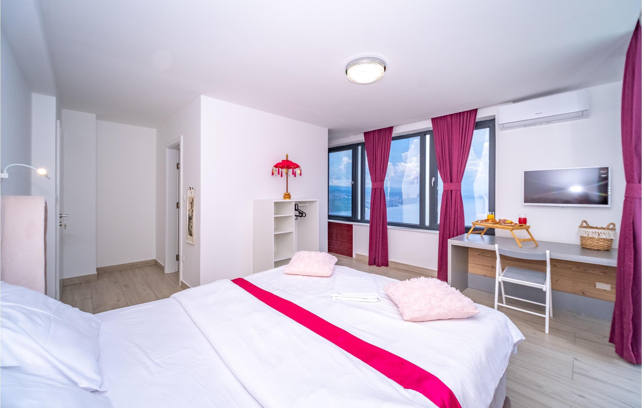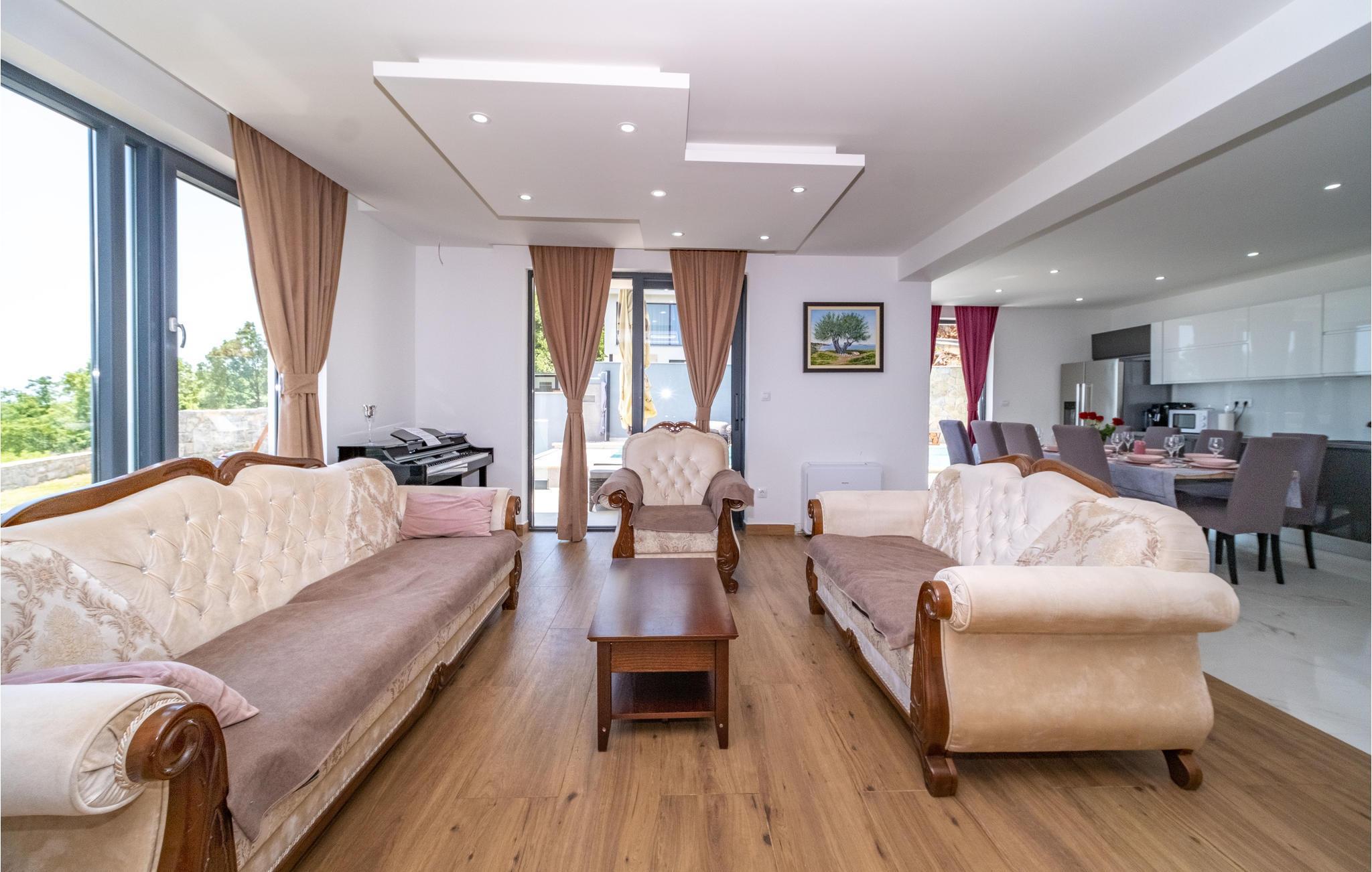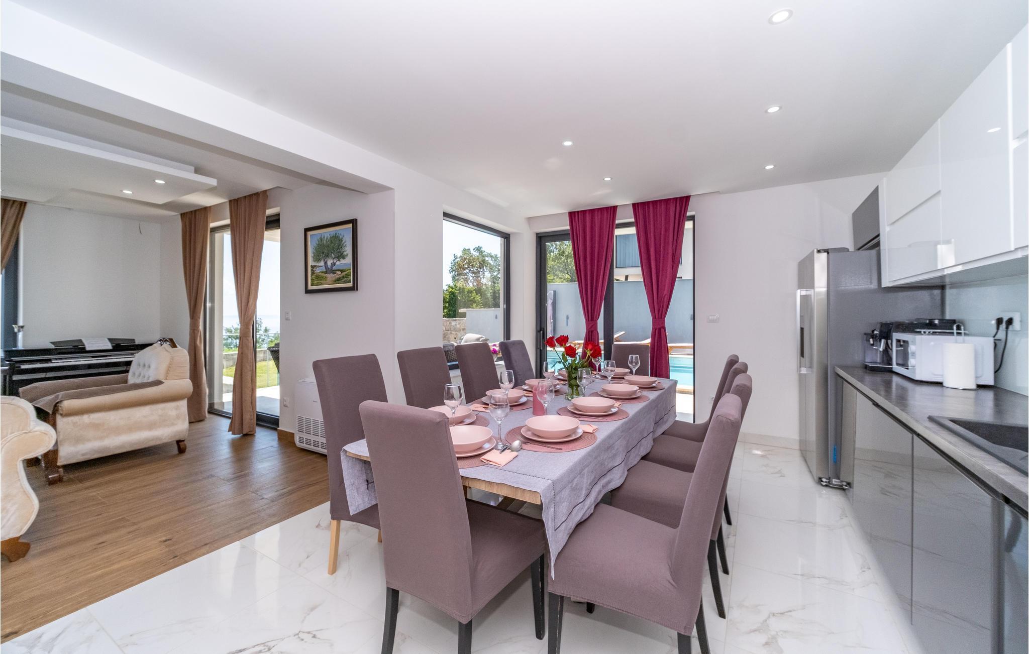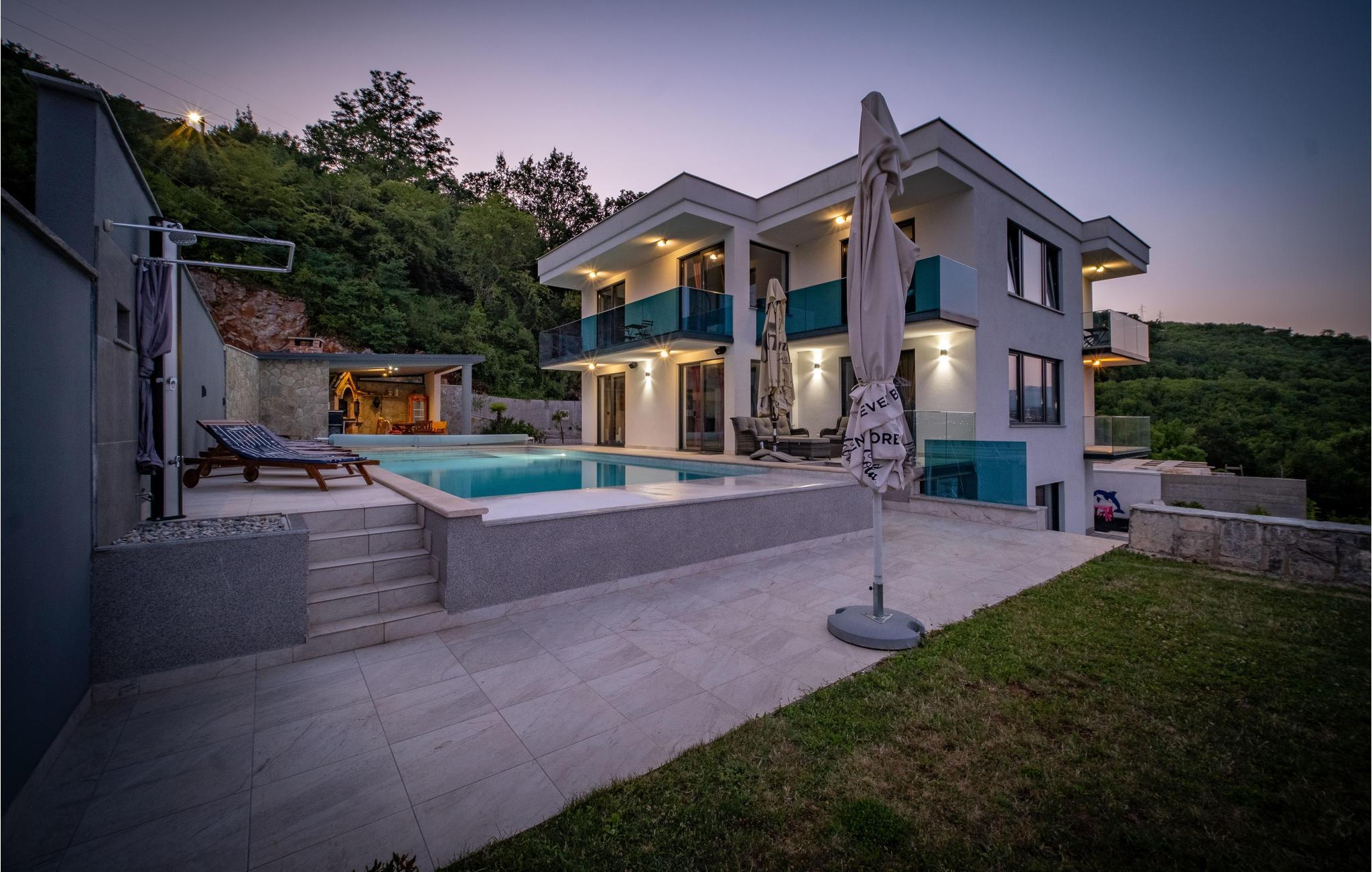 Das Haus ist geräumig, ruhig gelegen, erstreckt sich über 3 Etagen und bietet einen atemberaubenden Blick auf das blaue Meer und die gesamte Kvarner-Bucht und die Inseln Krk und Cres. Alle Schlafzimmer haben Meerblick. Im Hof gibt es einen Minispielplatz für Kinder mit Rutsche und Schaukel, einen großen Pool und eine überdachte Terrasse mit Grill und Feuerstelle und einen Platz zum Grillen. Im Untergeschoss des Hauses befindet sich ein Unterhaltungsbereich mit einer Tischtennisplatte und Tischen und Stühlen für geselliges Beisammensein der ganzen Gesellschaft.