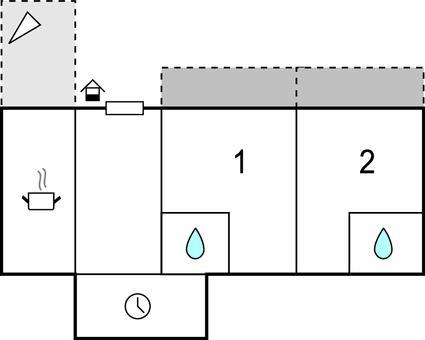 Badezimmer (nr. 2) - WC. Warmes und kaltes Wasser. Dusche
