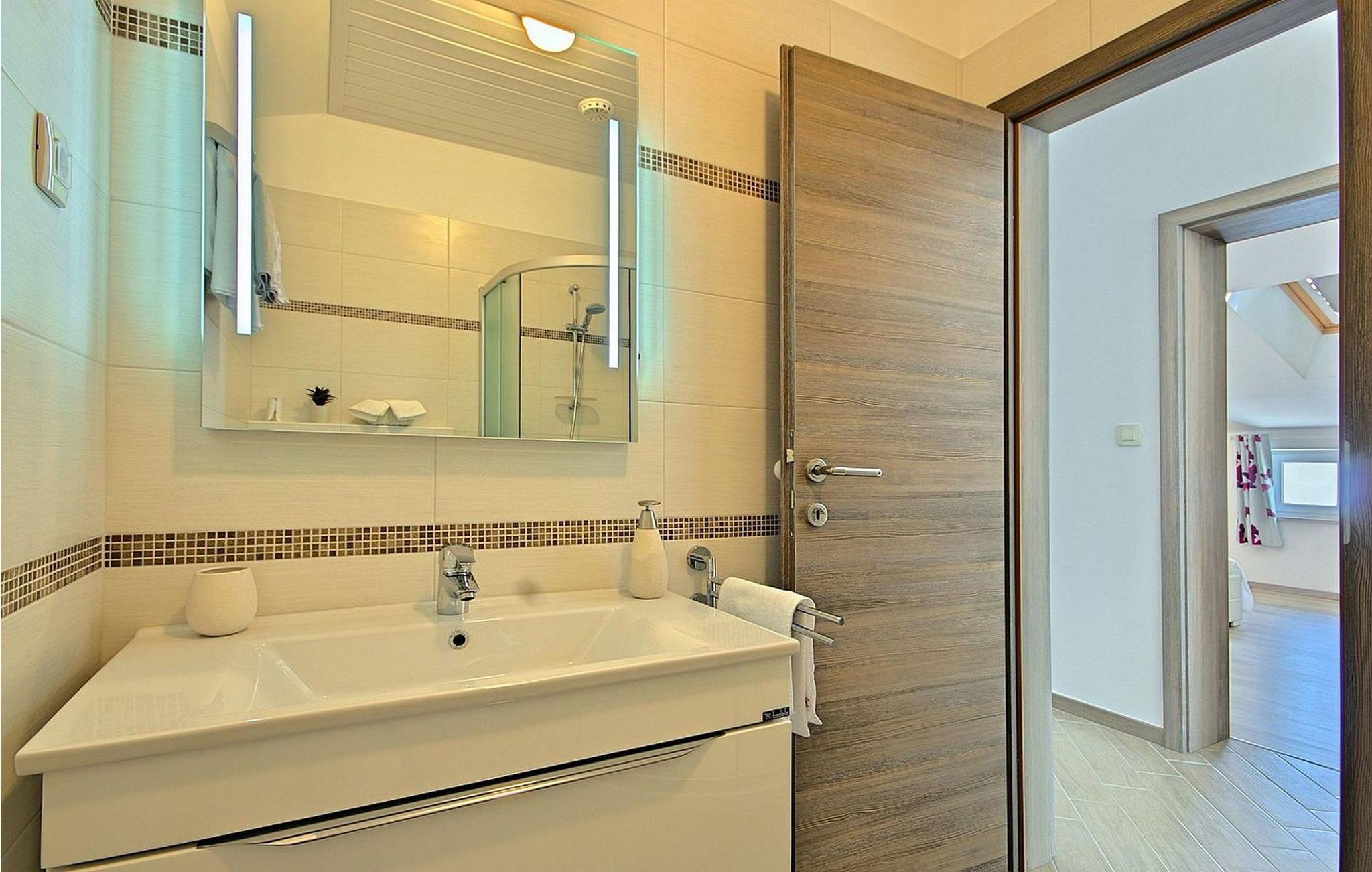 Die Gäste von diesem wunderschönen, modernen Ferienhaus werden von den oberen Stockwerken den außergewöhnlichen Blick auf das Meer und die nebenliegenden Inseln genießen. In der Nähe des Hauses befindet sich der Hafen, ideal für diejenigen die die Inseln Cres oder Losinj besuchen wollen. Der nächste Warenladen und Restaurant, sowie Strand sind im Ort Brsec, nur 2,5 km entfernt.