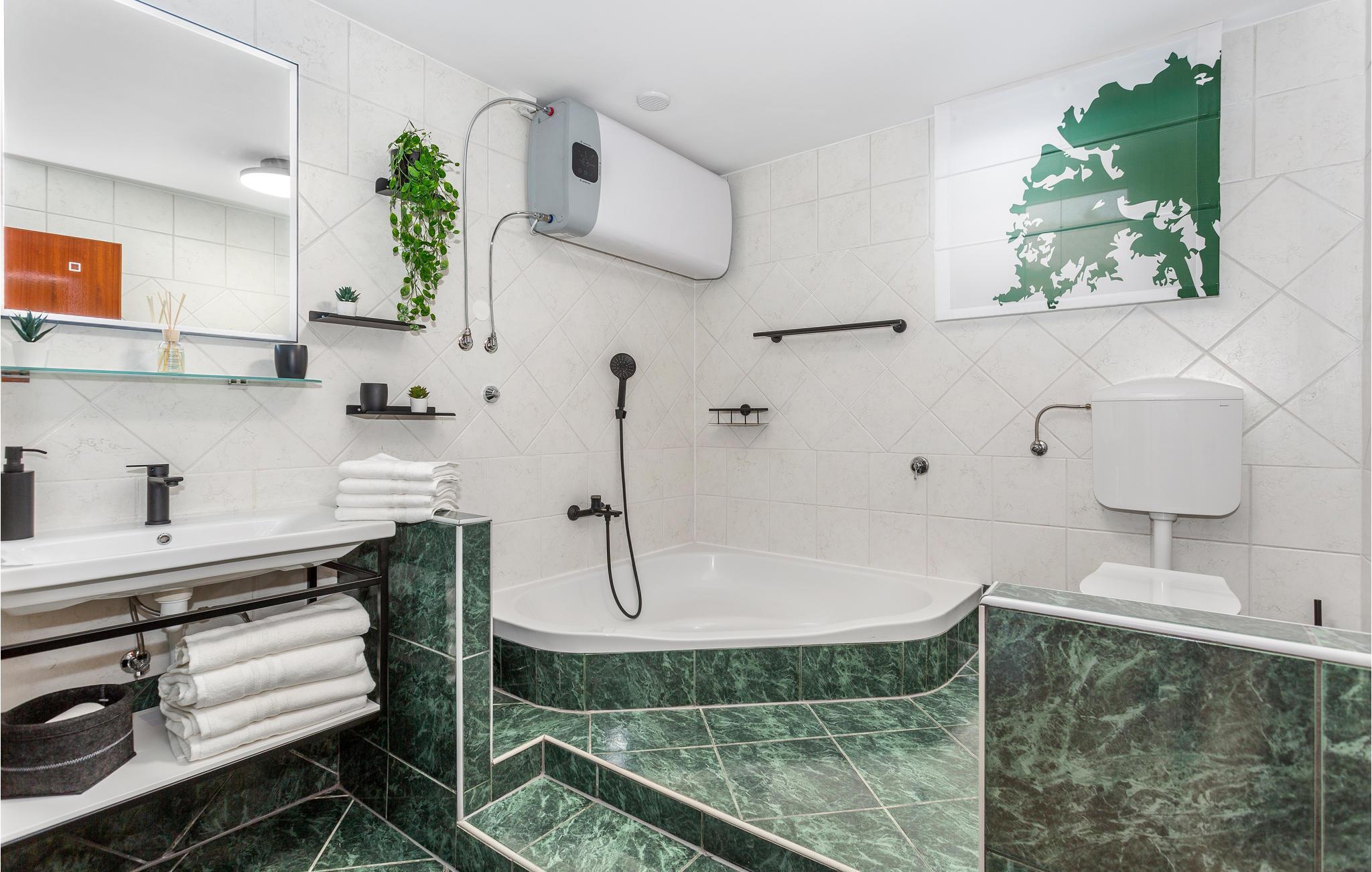 Badezimmer 8m2 (nr. 1) - WC. Warmes und kaltes Wasser. Dusche und Badewanne