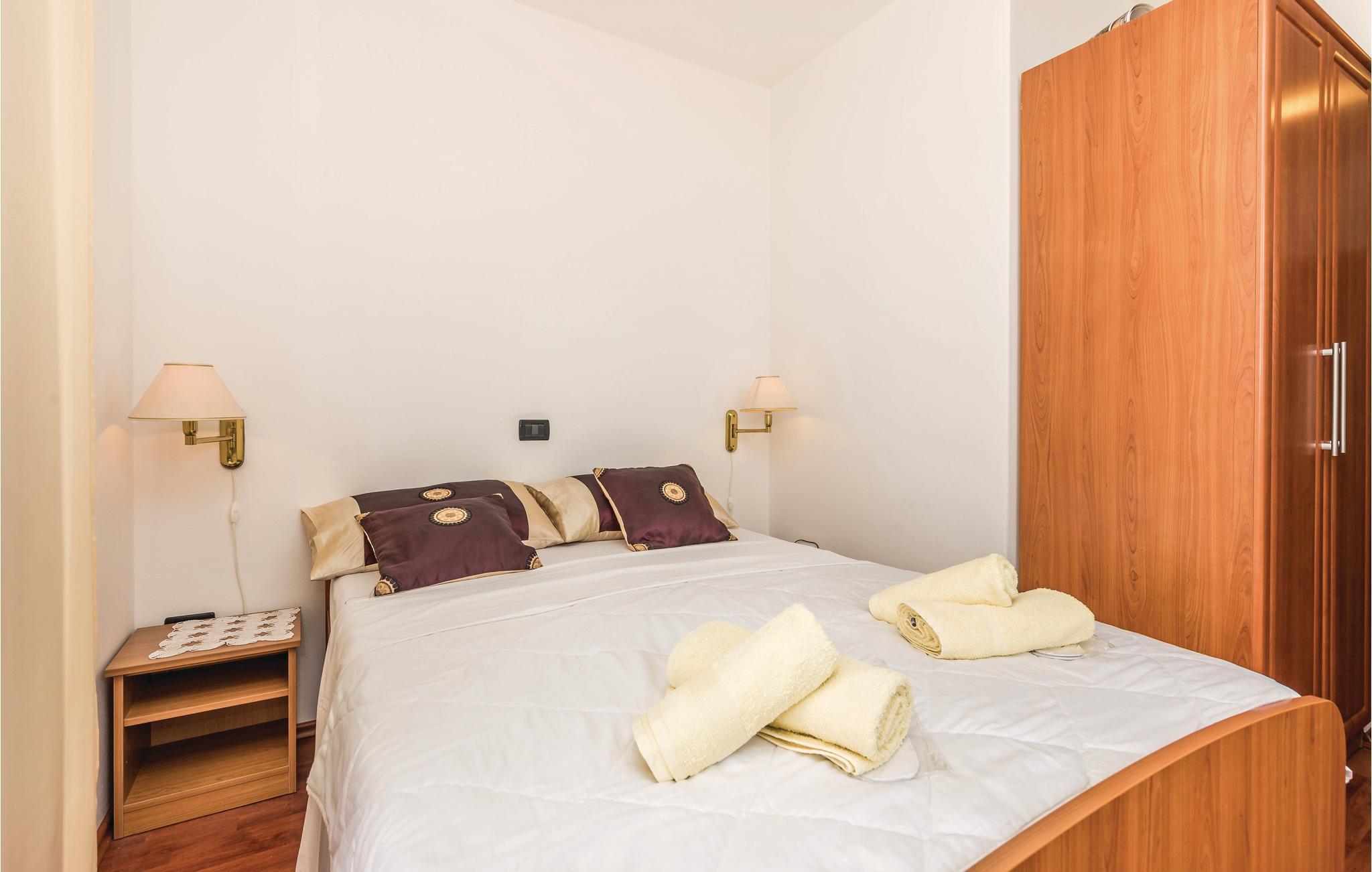 Auf der 1. Etage eines Hauses mit mehreren Ferienapartments befindet sich diese wunderschöne Wohnung mit einem herrlichen Panoramablick auf das Meer. Auf dem gemeinsamen, eingezäunten Grundstück finden Sie eine Abkühlung an heißen Sommertagen im Außenpool. In der Gartenlaube im Grünen können Sie Kaffee trinken oder bei vorheriger Absprache mit dem Hausbesitzer das für Sie zubereitete Frühstück genießen. Der bekannte Strand in Mošcenicka Draga ist in ca. 5 Minuten mit dem Auto zu erreichen. Der freundliche Gastgeber lebt im Haus.