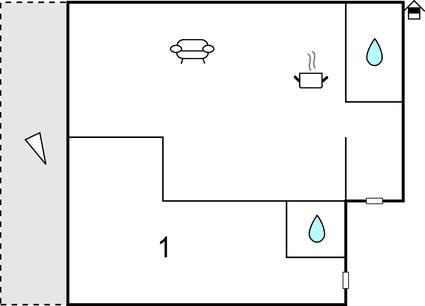 Wohnraum/Küche - 1 Schlafmöglichkeit. (Einzelbett(en)).