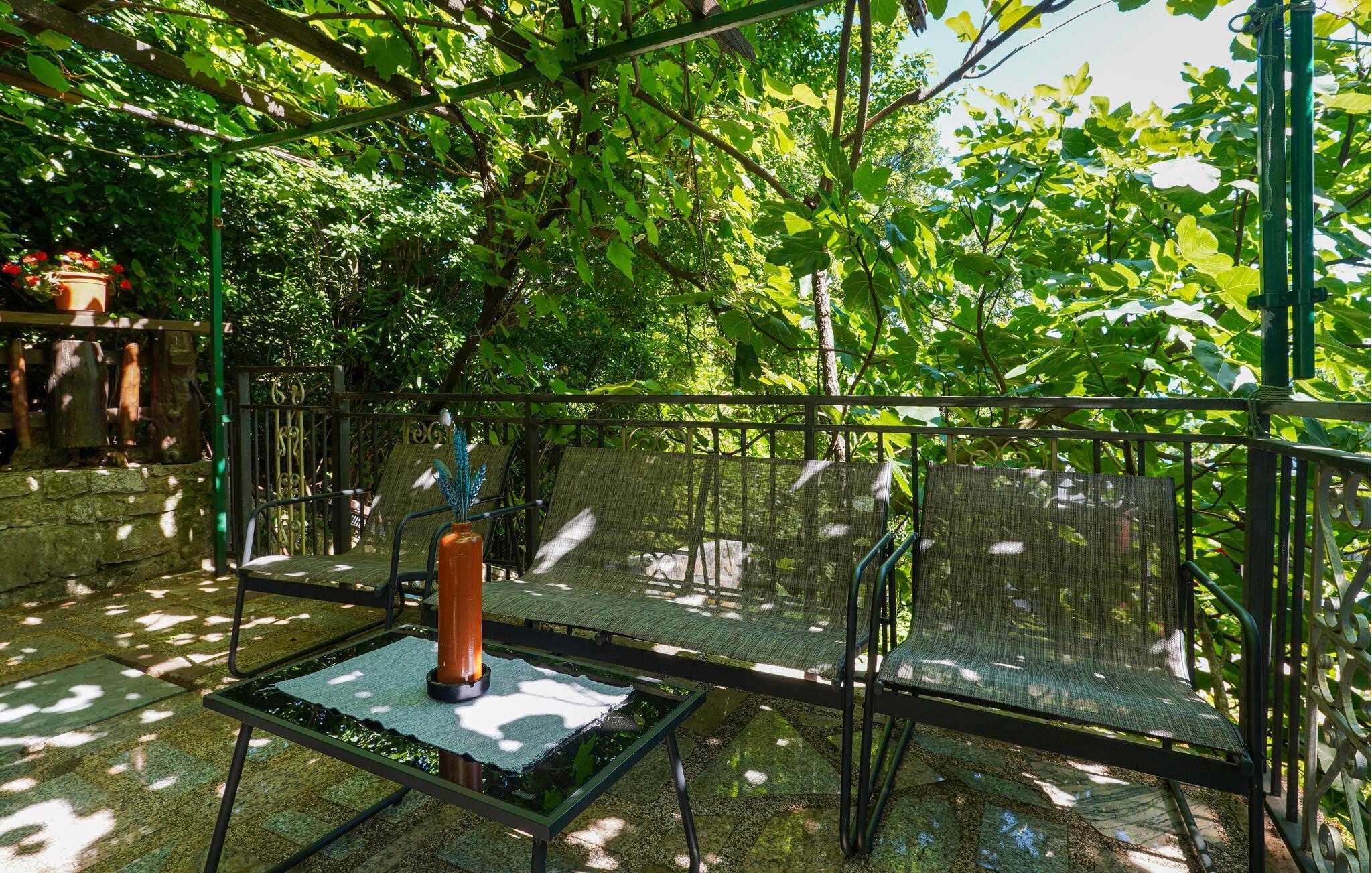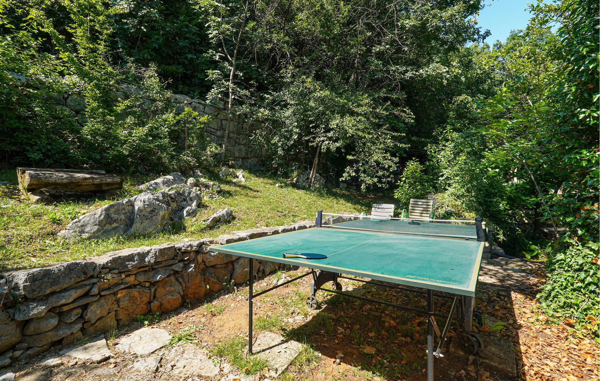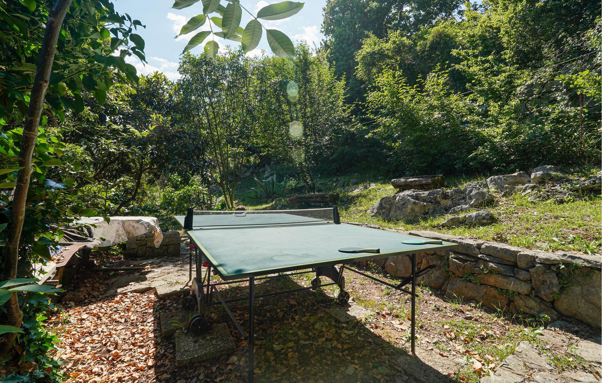 Der lauschige Außenbereich bietet gemütliche, schattige Plätze zum Speisen und Entspannen. Spielen Sie eine Runde Tischtennis, gönnen Sie sich ein Glas Wein auf der Terrasse oder vertiefen Sie sich an Ihrem persönlichen Lieblingsplatz in ein Buch, für das Sie im Alltag keine Zeit finden.