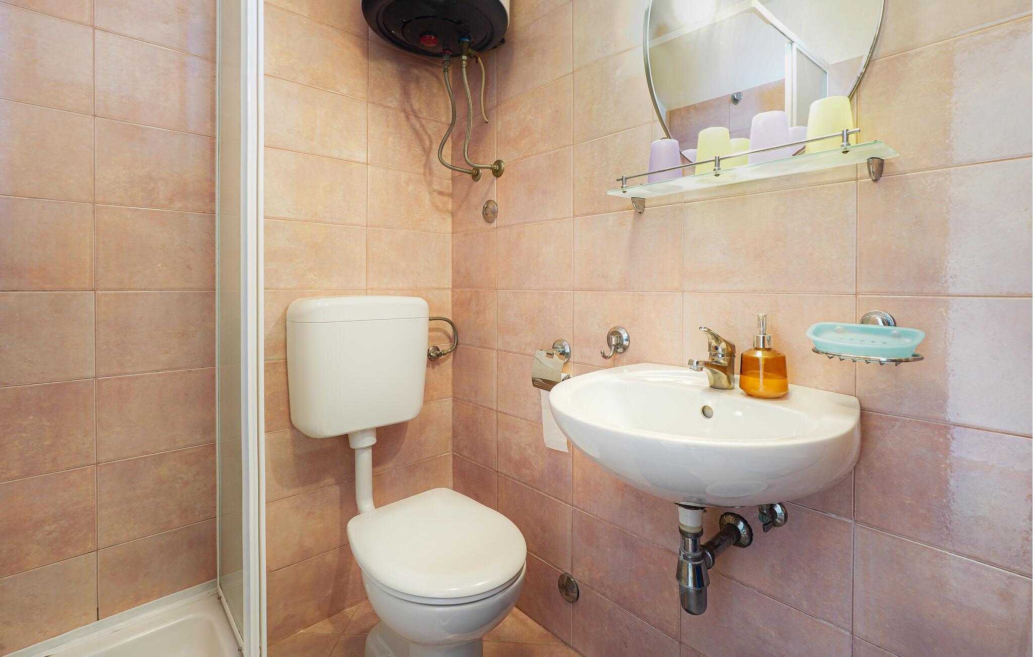 Badezimmer 5m2 (nr. 1) - WC. Warmes und kaltes Wasser. Dusche