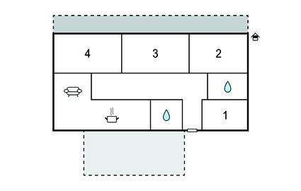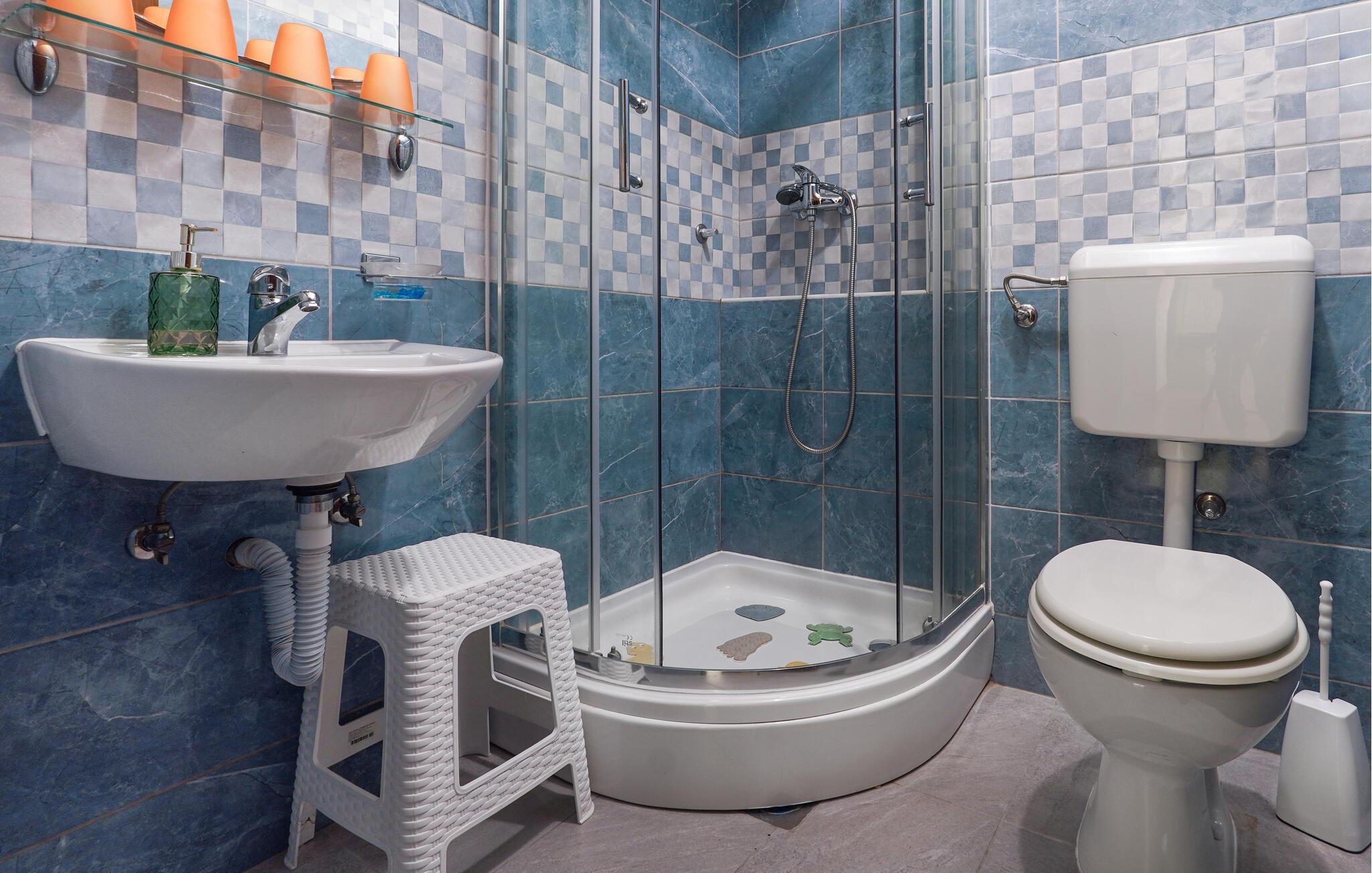 Badezimmer 4m2 (nr. 1) - WC. Warmes und kaltes Wasser. Dusche