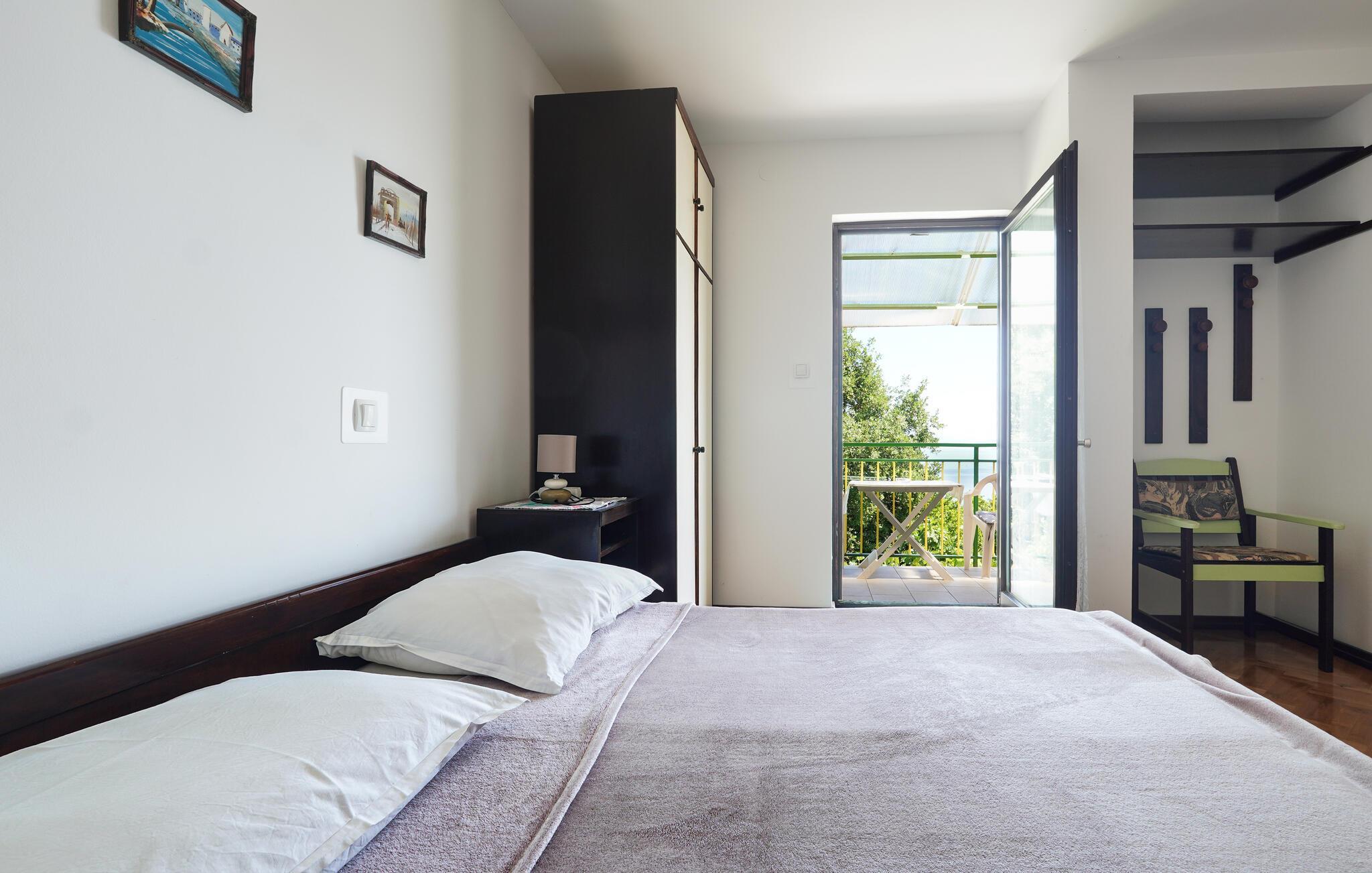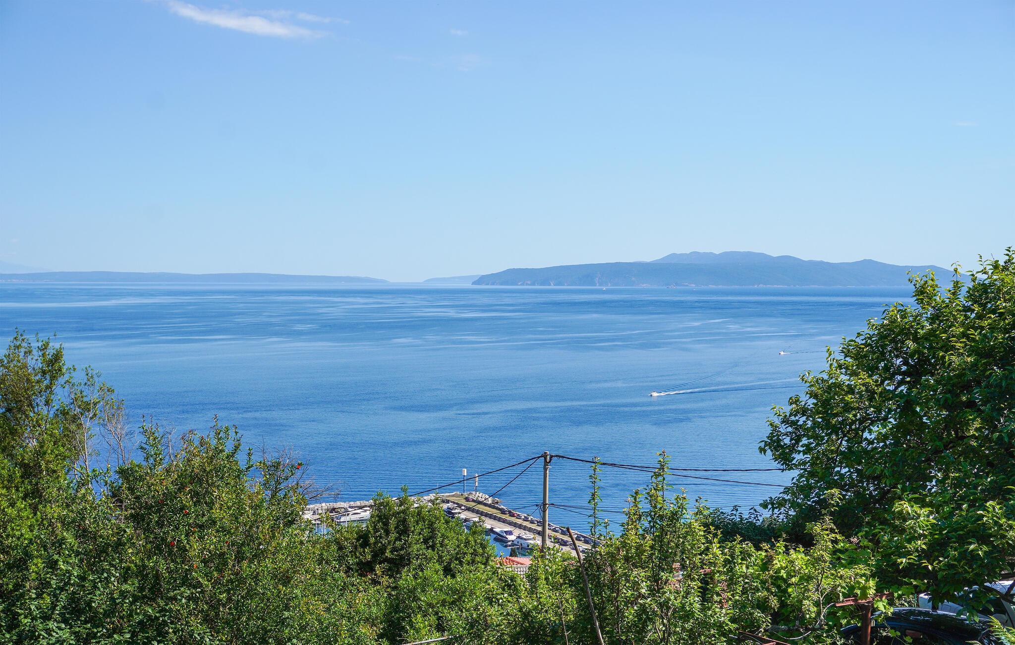 Genießen Sie in dieser großen Ferienwohnung einen zauberhaften Blick aufs Meer.