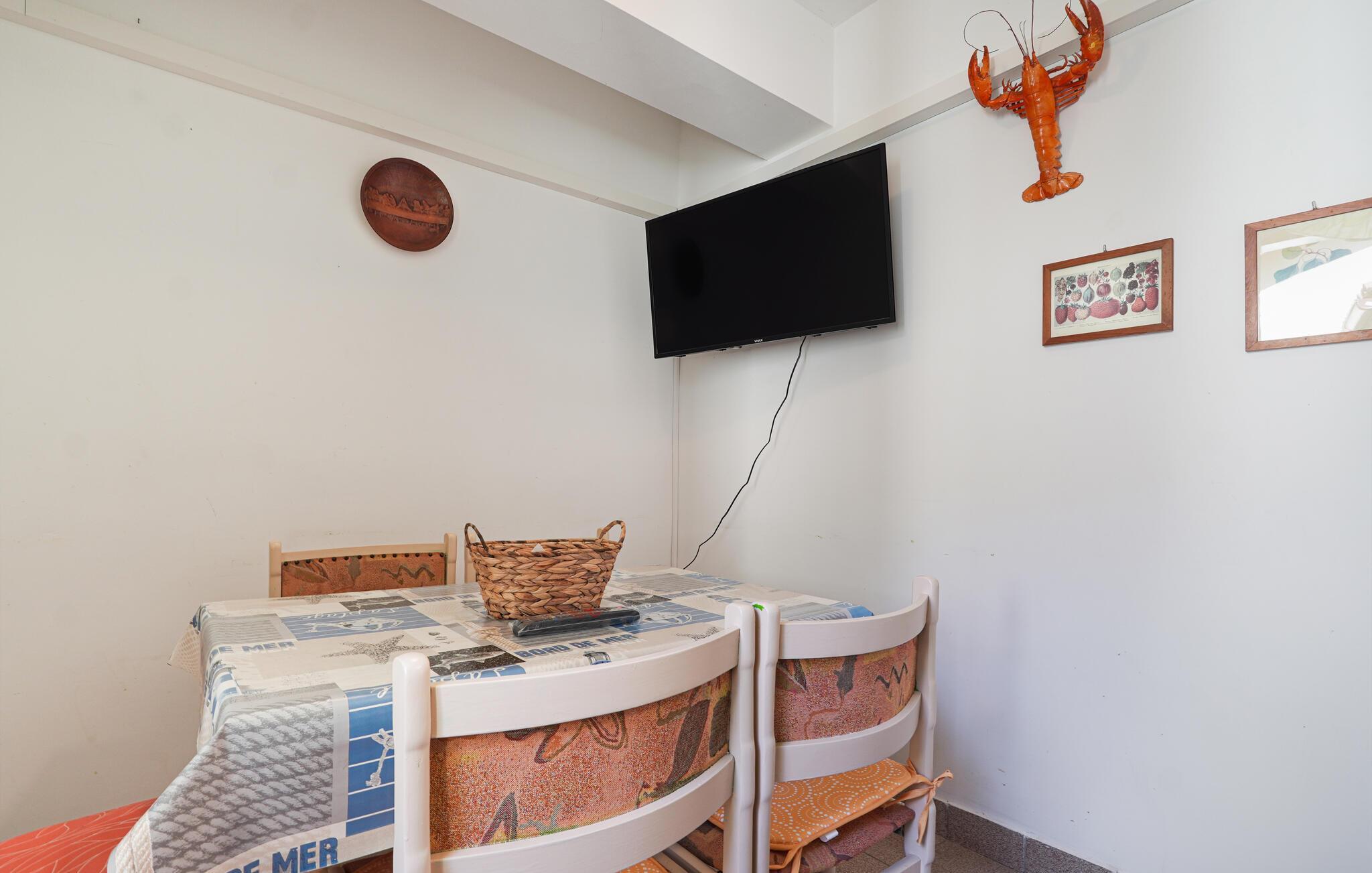 Willkommen in dieser geräumigen Ferienwohnung, die Sie mit einer wunderschönen Aussicht und viel Platz für gesellige Tage mit Freunden oder der Familie verwöhnt. Zaubern Sie gemeinsam leckere Gerichte aus regionalen Produkten und planen Sie Ihre Unternehmungen am einladenden Esstisch, an dem Sie abends einen spannenden Film streamen können.