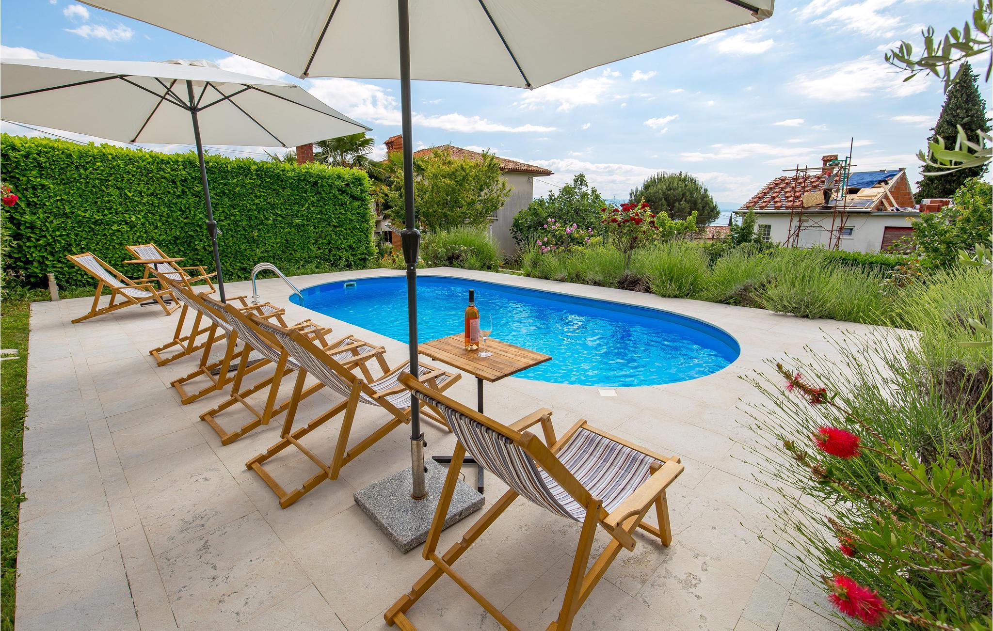 Geräumige Ferienwohnung in Ika an der berühmten Riviera von Opatija. Es befindet sich im ersten Stock eines Familienhauses in einem großen Gemeinschaftsgarten, in dem sich auch CKO318 und CKO324 befinden, mit denen Sie sich neben dem Garten ein Schwimmbad teilen. Ein wunderschön angelegter Garten mit vielen Obstbäumen bietet perfekte Ruhe und Komfort. Der Balkon bietet einen schönen Blick auf Rijeka und die Kvarner Bucht. In der Nähe befinden sich berühmte Touristenzentren wie Opatija und Lovran. Wir empfehlen auch einen Besuch in einer der örtlichen Tavernen oder Restaurants, in denen Sie lokale Spezialitäten und Weine probieren können. Ika hat den Charme eines alten Fischerdorfes. Es liegt an den Hängen von Ucka. Sport- und Erholungsbegeisterte finden hier eine breite Palette an sportlichen Aktivitäten, von Schwimmen, Tauchen und Angeln bis hin zu Radfahren und Wandern. Die Lungomare-Promenade, die auch durch Ika führt, erstreckt sich von Opatija bis nach Lovran. Eine besondere Attraktion des Ortes ist ein Angelabend, an dem Sie die Lebensweise eines typischen Küstenortes spüren, den Fischern helfen können, ein Netz zu stricken und den frischen Fang probieren können, der von lokalen Köchen zubereitet wird. Heute ist Ika auch das akademische Zentrum der gesamten Riviera, da es die international anerkannte Fakultät für Tourismus und Hotelmanagement beherbergt, an der Hunderte von Studenten aus allen Teilen Kroatiens und dem Ausland ausgebildet werden. Für alle Natur- und Wanderliebhaber empfehlen wir den Berg Ucka, von wo aus man bei schönem Wetter einen unvergesslichen Blick auf die Kvarner Bucht hat.
