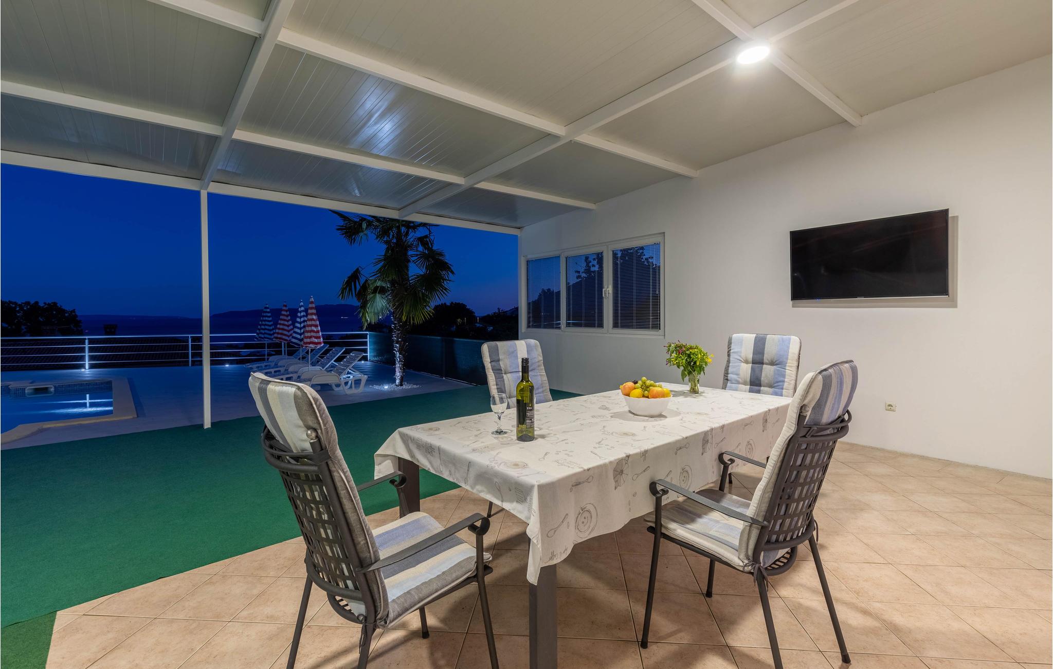 Das Grundstück ist größtenteils privat mit einer großen überdachten Terrasse und einem Sonnendeck am Pool. Vom Haus und von der großen Terrasse genießen Sie einen wunderschönen Panoramablick auf das Meer und die Inseln Cres und Krk. Sie werden die meiste Zeit damit verbringen, die Natur im Swimmingpool unter der Sonne zu genießen.