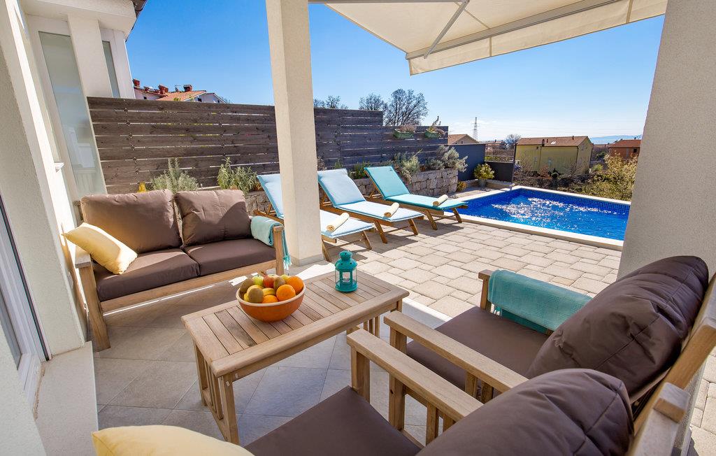 Das Ferienhaus befindet sich in der Gegend von Kastav, oberhalb der Riviera Opatija. Das wunderschön eingerichtete Interieur bietet bequem Platz für fünf Personen.