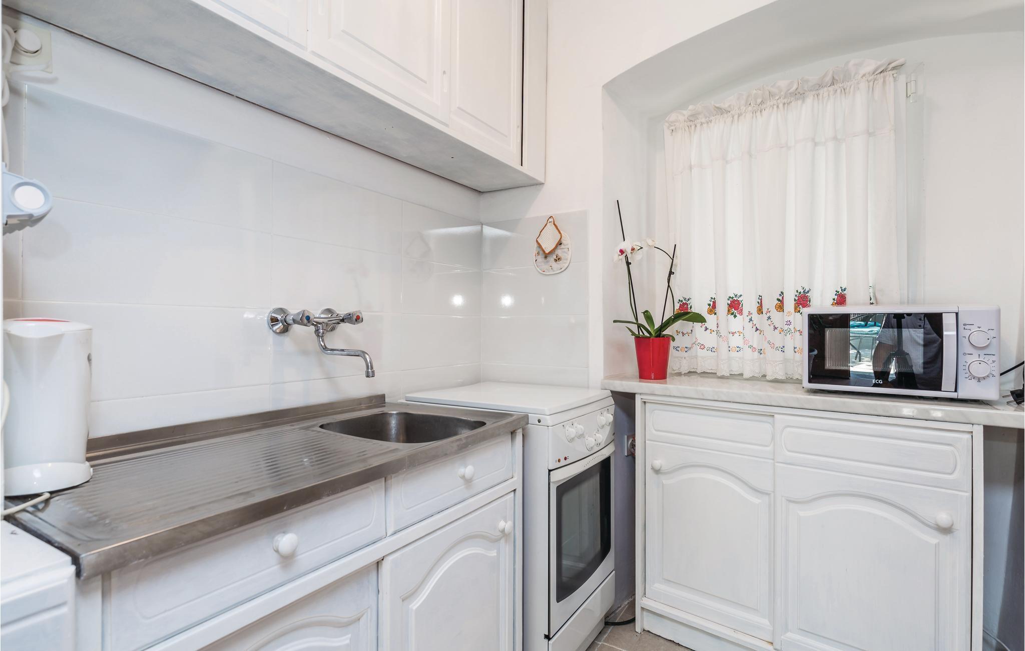 Im Zentrum des historischen Städtchens Kastav liegt diese traditionell eingerichtete und gut ausgestattete Ferienwohnung. Sie erstreckt sich über zwei Etagen und von der Terrasse bietet sich eine Aussicht auf den alten Platz Crekvina. Der Platz dient oft als Bühne für verschiedene Veranstaltungen, wie Konzerte. Die Altstadt von Kastav ist aufgrund ihres außergewöhnlichen kulturellen und historischen Erbes ein beliebtes Touristenziel. Restaurants, Souvenirläden und Kunstgalerien befinden sich in unmittelbarer Nähe. Der nahe gelegene Ort Matulji, auch Tor der Opatija Riviera genannt, ist bekannt für seine Glockentradition, die auf der UNESCO-Liste des immateriellen Erbes steht. In den örtlichen Tavernen können Sie „jarbola“ probieren, einen Wein mit einem bestimmten Geschmack, der aus der einheimischen Rebsorte gewonnen wird. Fans eines aktiven Urlaubs können sich auf zahlreiche Rad- und Wanderwege freuen, die sie in die umliegenden Wälder führen. Eine der interessanten Möglichkeiten, das schöne natürliche und historische Erbe der Region Kastav zu erkunden, ist das Reiten. Wir empfehlen auf jeden Fall einen Tagesausflug zum nahe gelegenen Berg und zum Naturpark Ucka, dessen höchster Gipfel Vojak einen fantastischen Panoramablick auf Kvarner und das Inland Istriens bietet. Genießen Sie gepflegte Wander- und Radwege, Lehrpfade und Promenaden, von denen die Slap-Promenade und der Vela Draga-Lehrpfad die bekanntesten sind. Sie können verschiedene sportliche Aktivitäten wie Wandern, Freeclimbing, Mountainbiken und Freiflug genießen. Besuchen Sie unbedingt Opatija, das Zentrum kultureller Veranstaltungen, zu denen im Sommer zahlreiche Konzerte und Festivals gehören.
