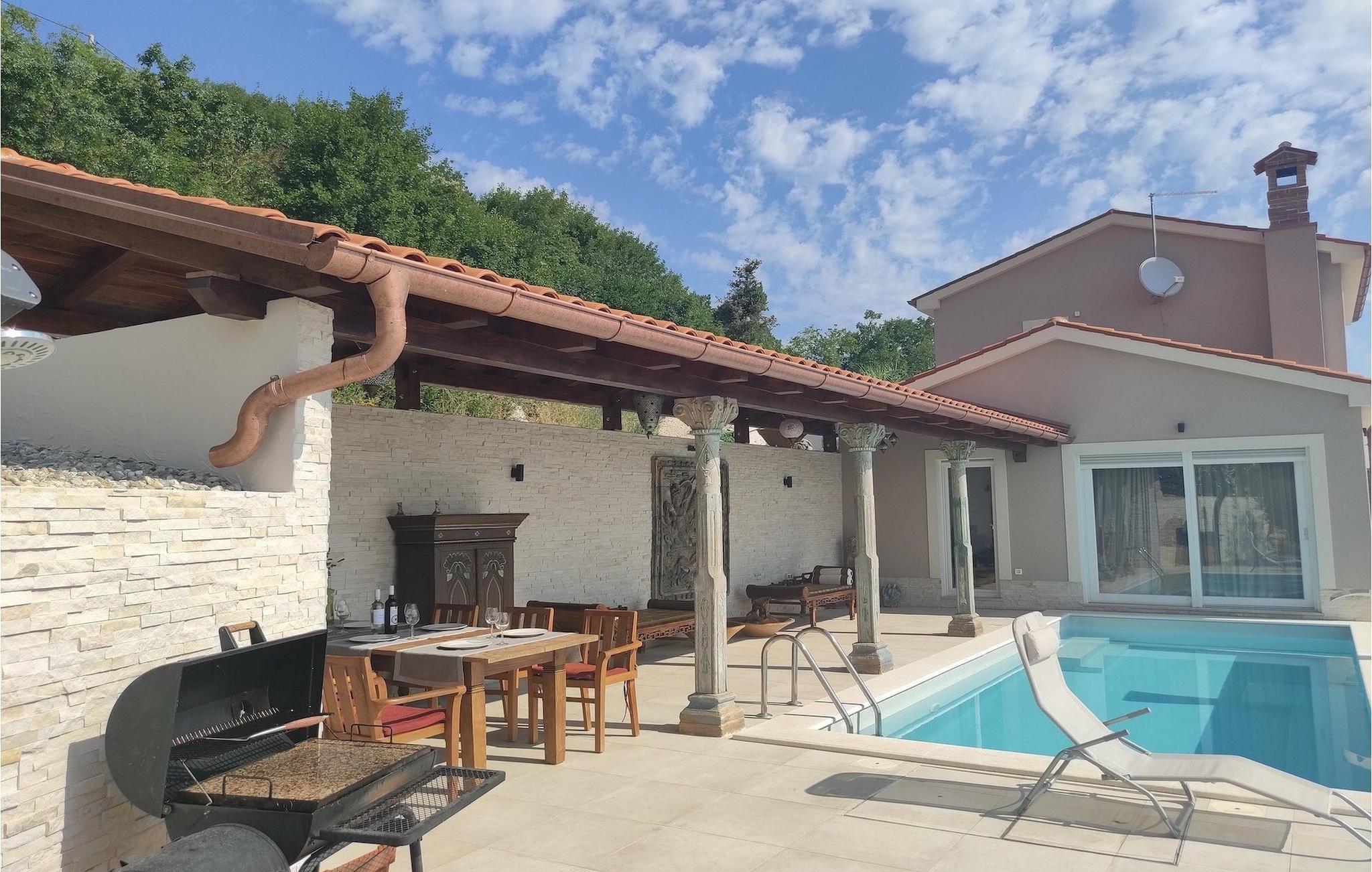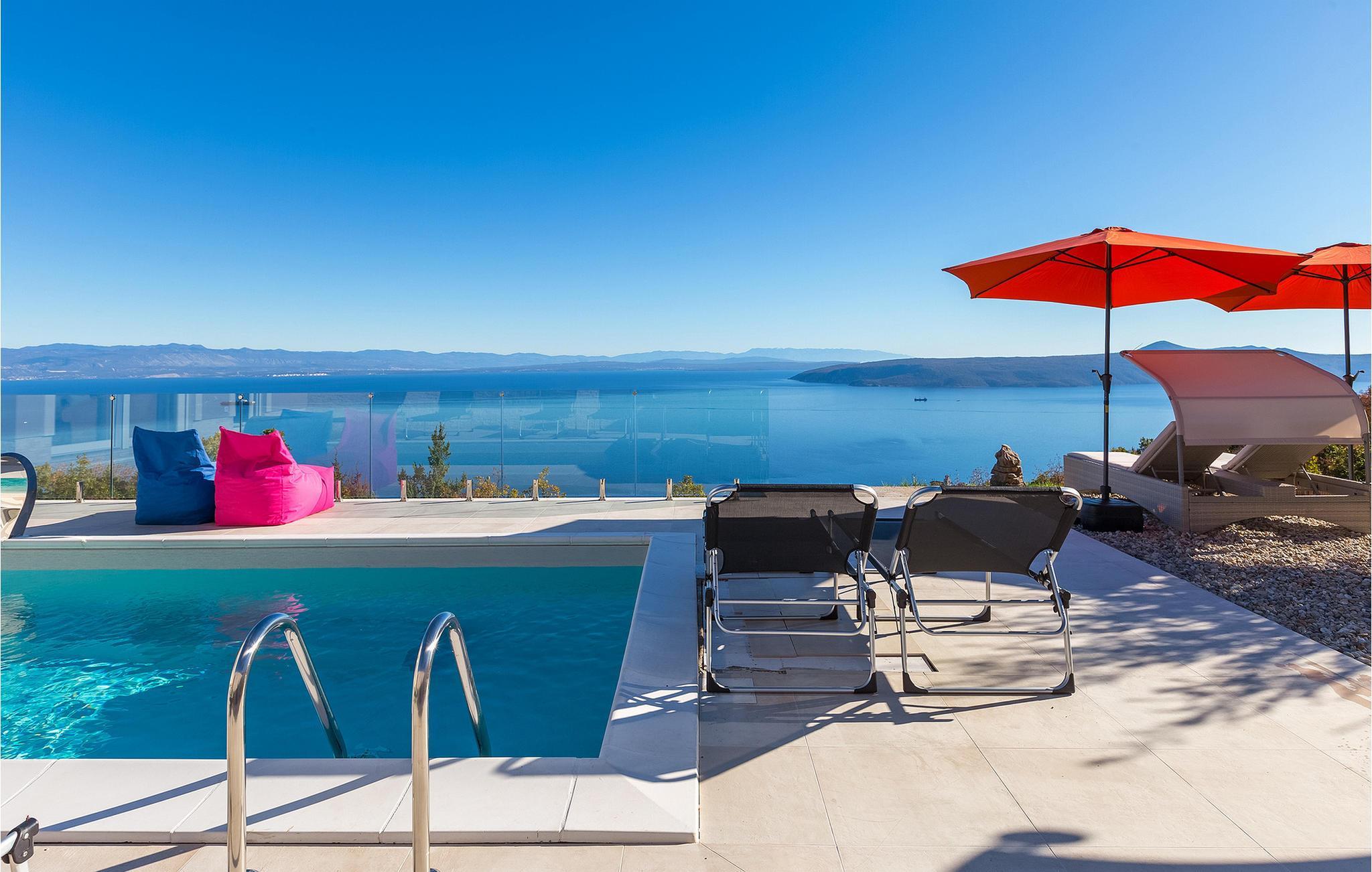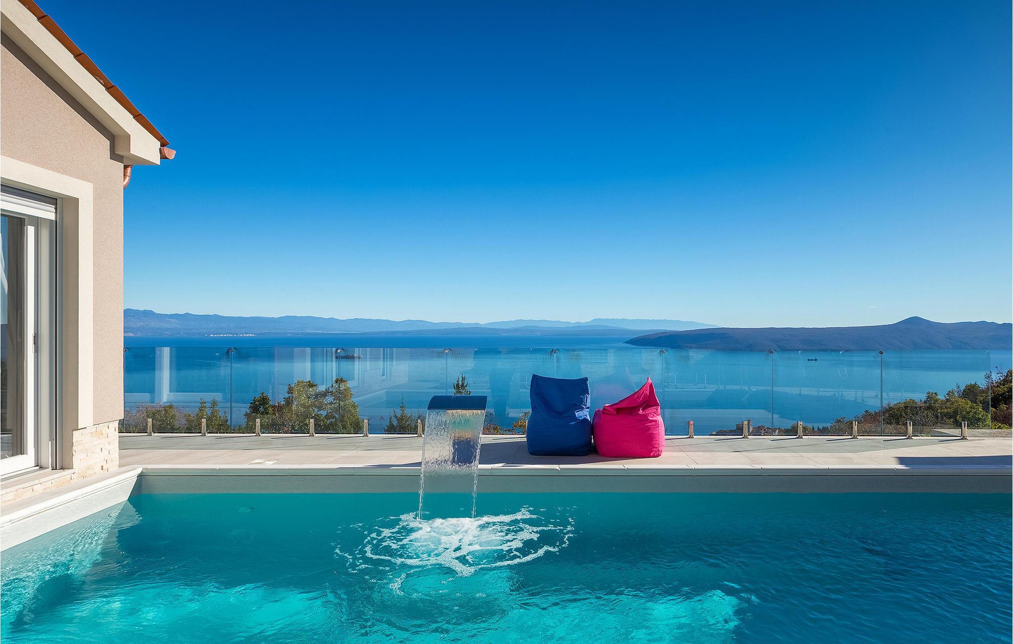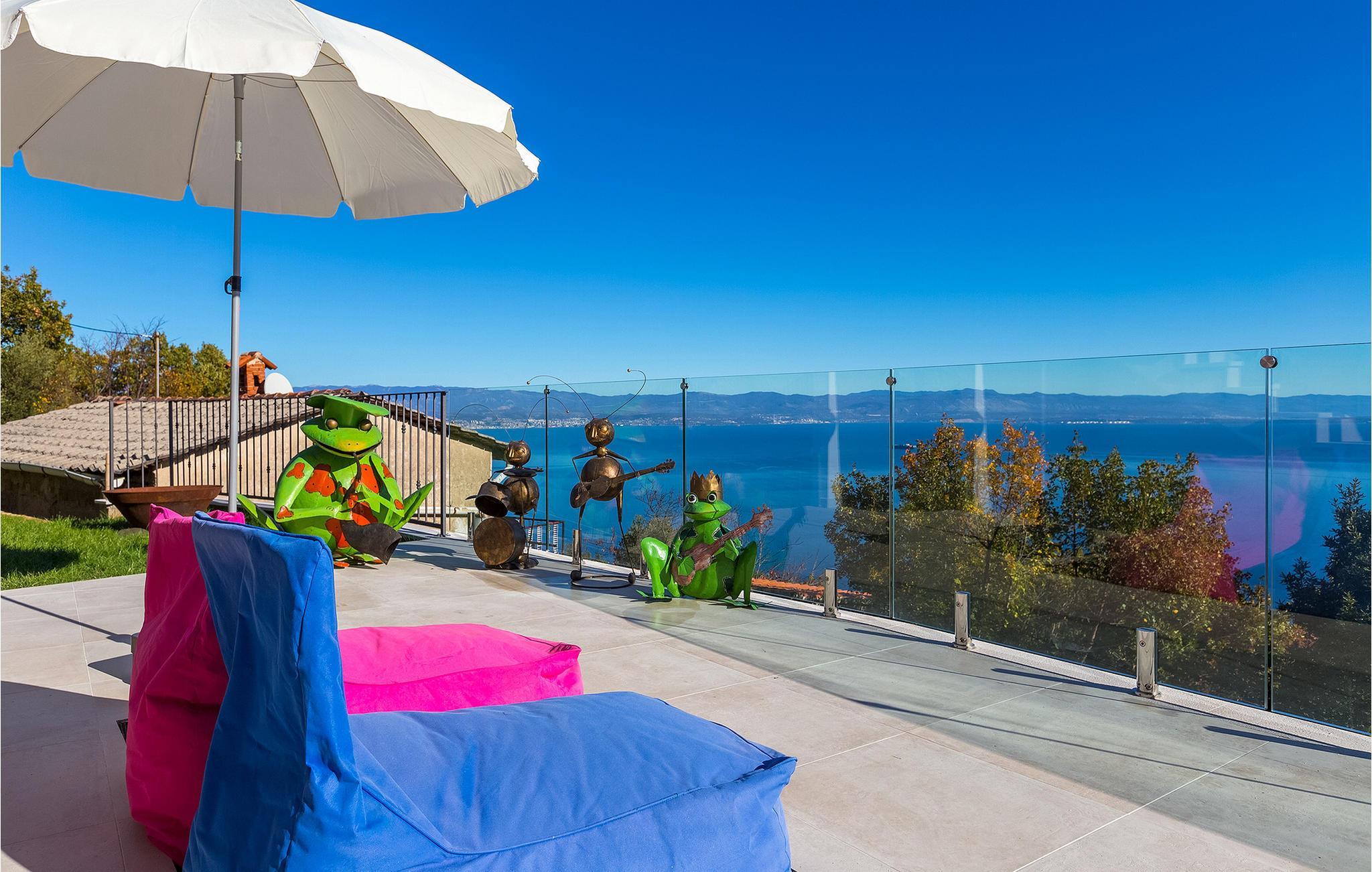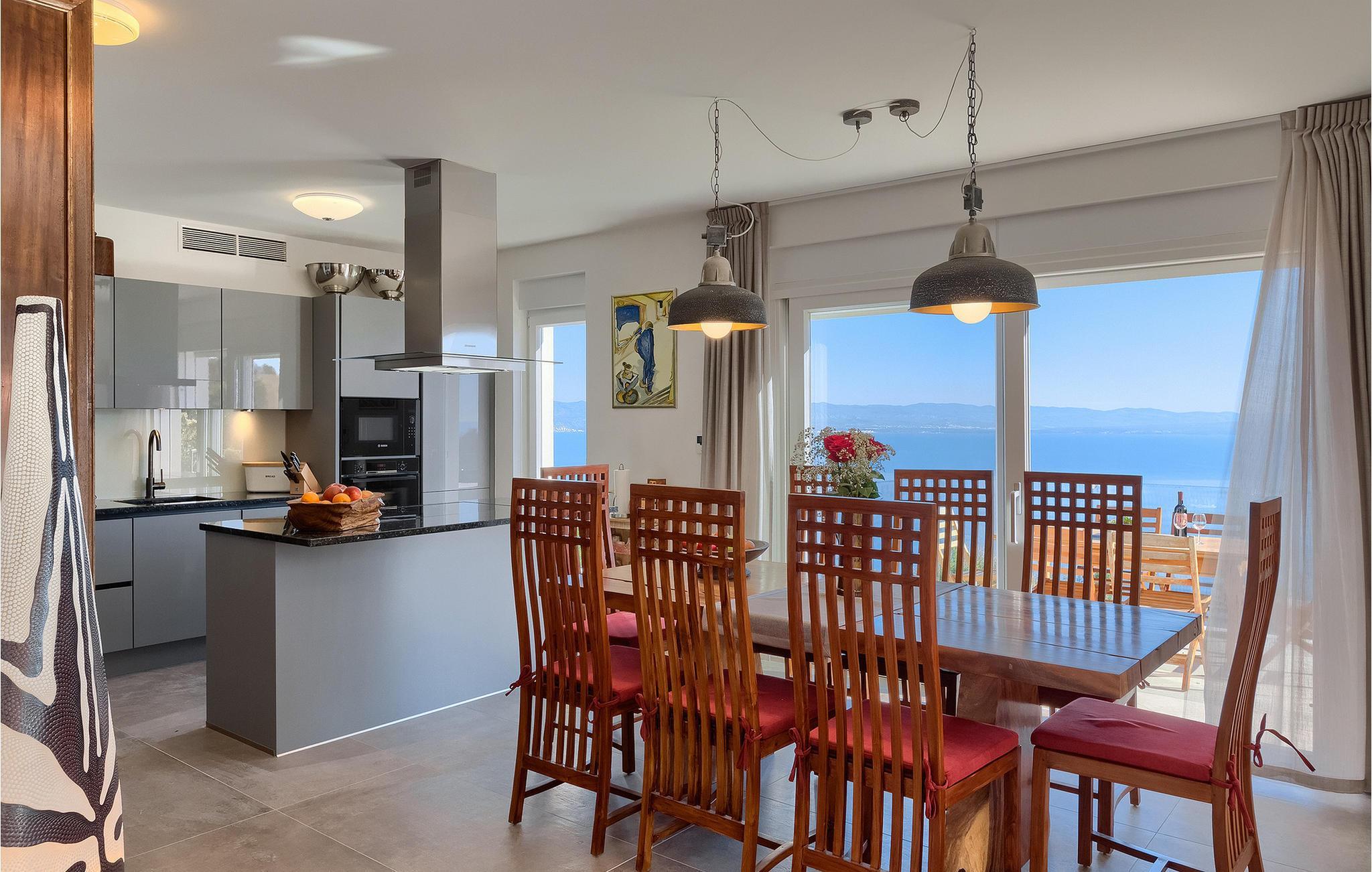 Im Wohnzimmer finden Sie ein gemütliches Sofa von welchem sich ein herrlicher Meerblick bietet, ideal für Filmabende mit Familie oder Freunden, einen kleinen Tisch und einen großen Fernseher. Die Terrassentür im Wohnzimmer bietet einen atemberaubenden Blick auf den Pool und die wunderschöne Landschaft. Im ersten Stock befinden sich 2 Schlafzimmer mit en-suite Badezimmern. Ein Zimmer hat Zugang zum Balkon. Im Außenbereich der Villa auf der Terrasse befindet sich ein Tisch mit 10 Stühlen, an dem Sie eine köstliche Mahlzeit servieren können, die auf dem verfügbaren Holzkohlegrill zubereitet wurde. Es gibt auch Gartenmöbel, wo Sie nach einem langen Tag voller Freude bei einem kalten Getränk entspannen können. Erfrischen Sie sich im Pool an der Terrasse oder entspannen Sie auf den Sonnenliegen. Das Sonnenbaden auf den Sonnenliegen rundet Ihren Tag ab. Die Villa Niazi ist ideal für einen schönen Urlaub mit Familie oder Freunden und wird Sie mit ihrer ruhigen und schönen Umgebung begeistern.Die Villa Niazi befindet sich in dem kleinen Dorf Moscenicka Draga, nicht weit von Opatija entfernt. Einst ein kleines Fischerdorf, heute ein beliebtes Touristenziel.