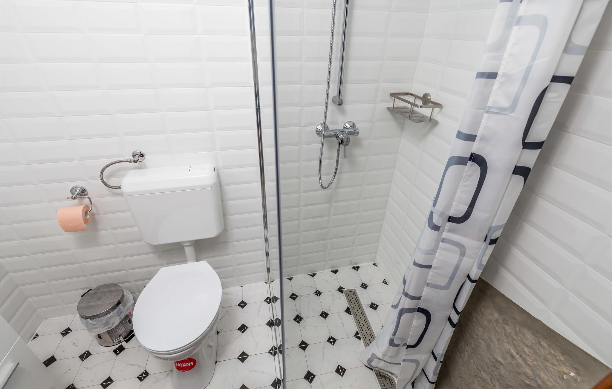 Badezimmer (nr. 2) - WC. Warmes und kaltes Wasser. Dusche