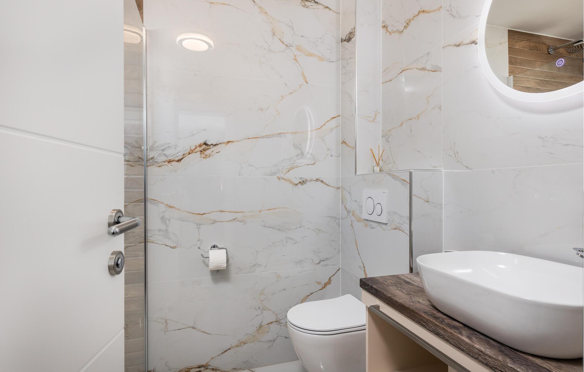 Badezimmer 5m2 (nr. 2) - WC. Warmes und kaltes Wasser. Dusche
