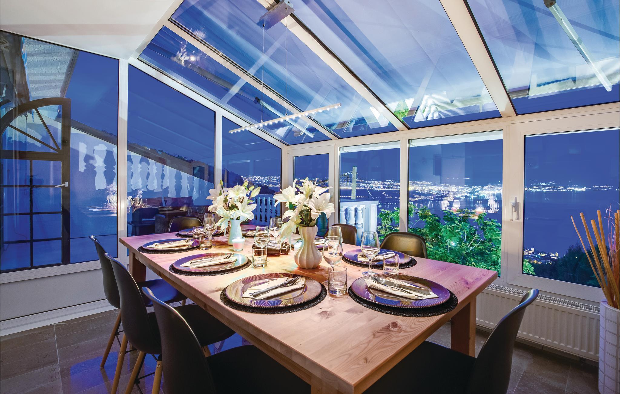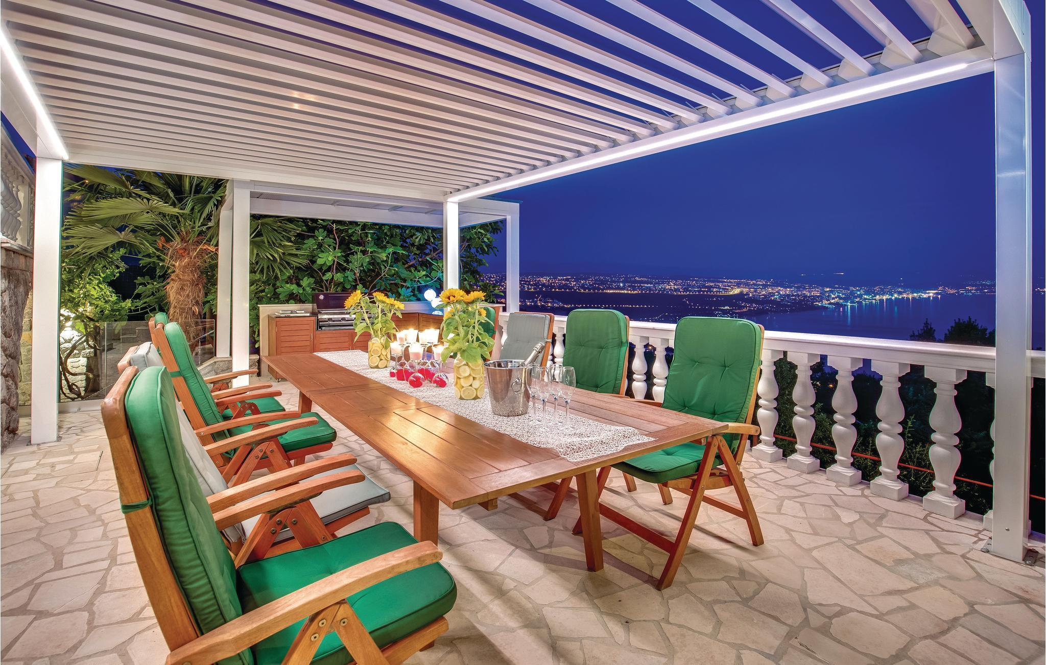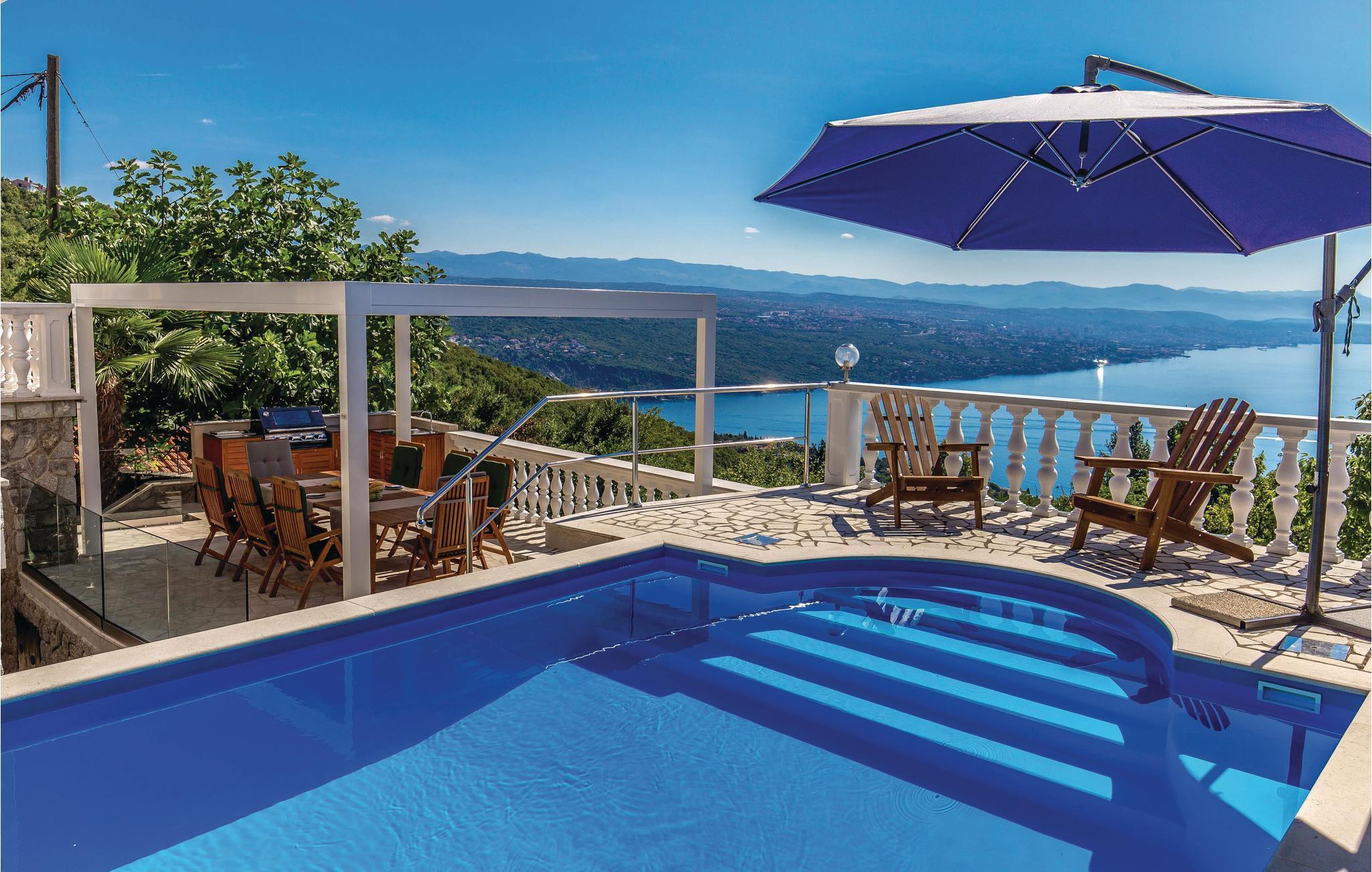 Genießen Sie den atemberaubenden Ausblick auf die Kvarner Bucht von diesem Ferienhaus. Es liegt ruhig und auf einem gepflegten und umzäunten Grundstück. Sie machen in der Nähe von Opatija auf einem terrassierten Terrain Urlaub. Die letzten ca. 30 m der Zufahrt sind nicht asphaltiert. Erleben Sie einen angenehmen Urlaub in dieser Unterkunft, die aus drei separaten Wohneinheiten besteht und teils mit Außentreppen verbunden sind. Die größte Einheit, die sich über drei Etagen erstreckt, ist mit Innentreppen verbunden. Die niedrigste Deckenhöhe beträgt 170 cm. Die vielen Terrassen bieten jedem eine Ecke für sich. Mit dem Auto erreichen Sie auch schnell die ersten Strände. Besuchen Sie Opatija, das mit viel Unterhaltung und gastronomischen Einrichtungen lockt.