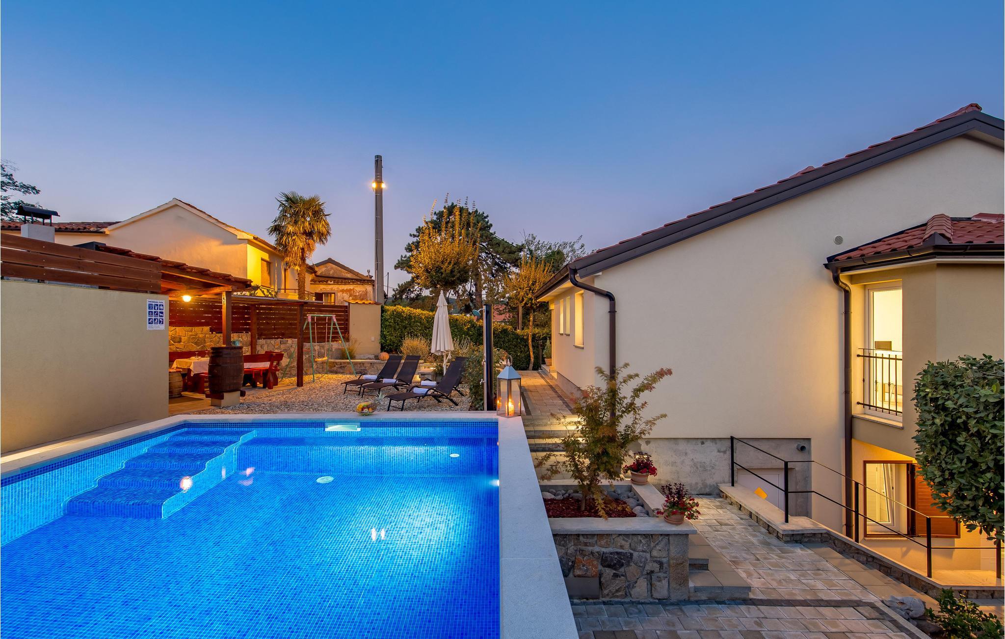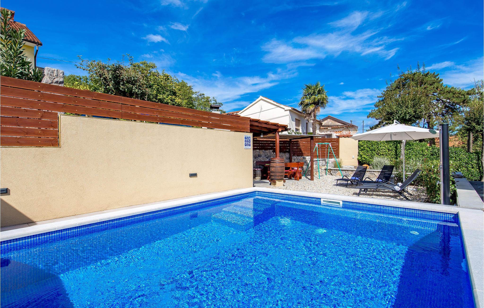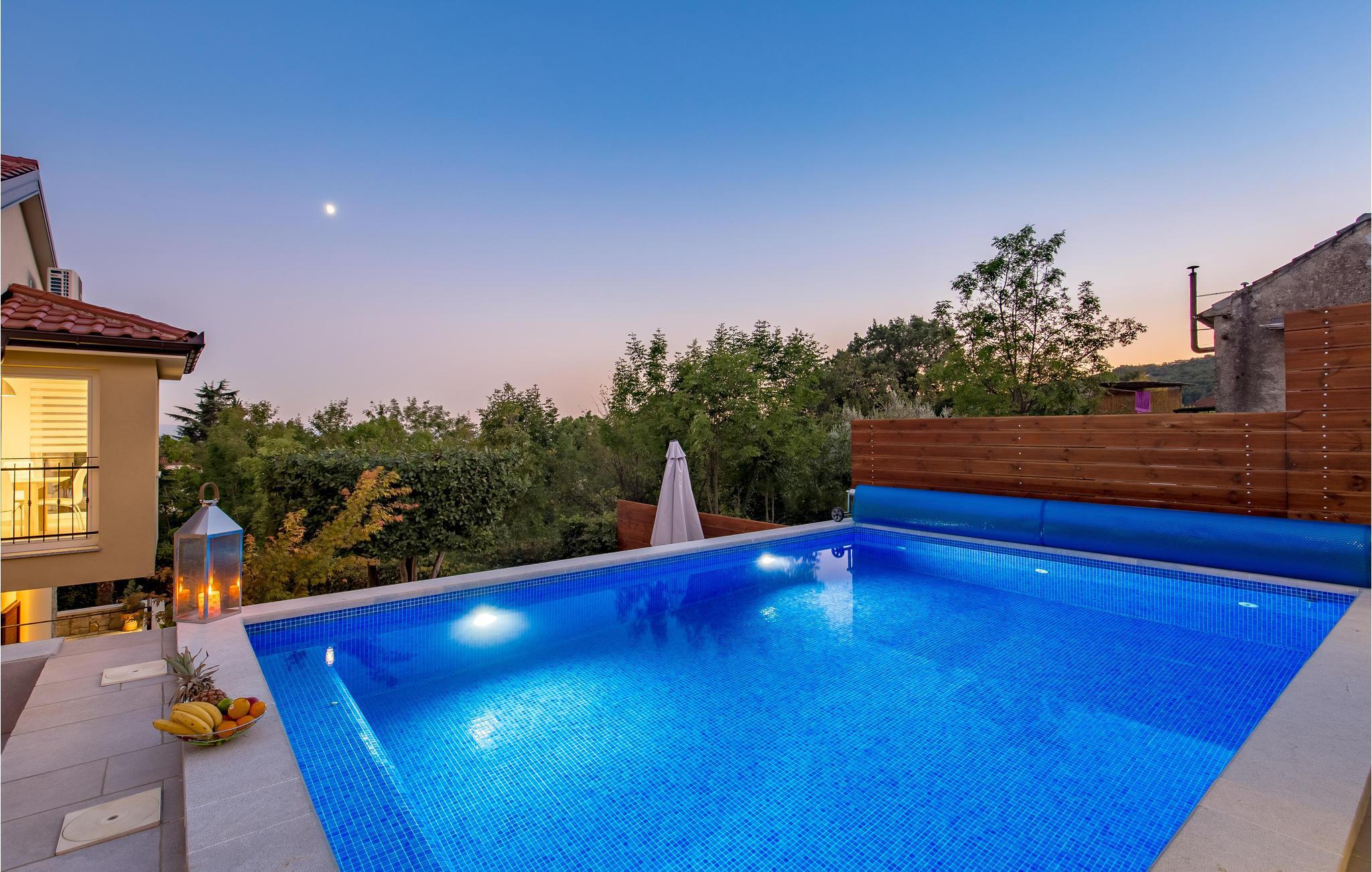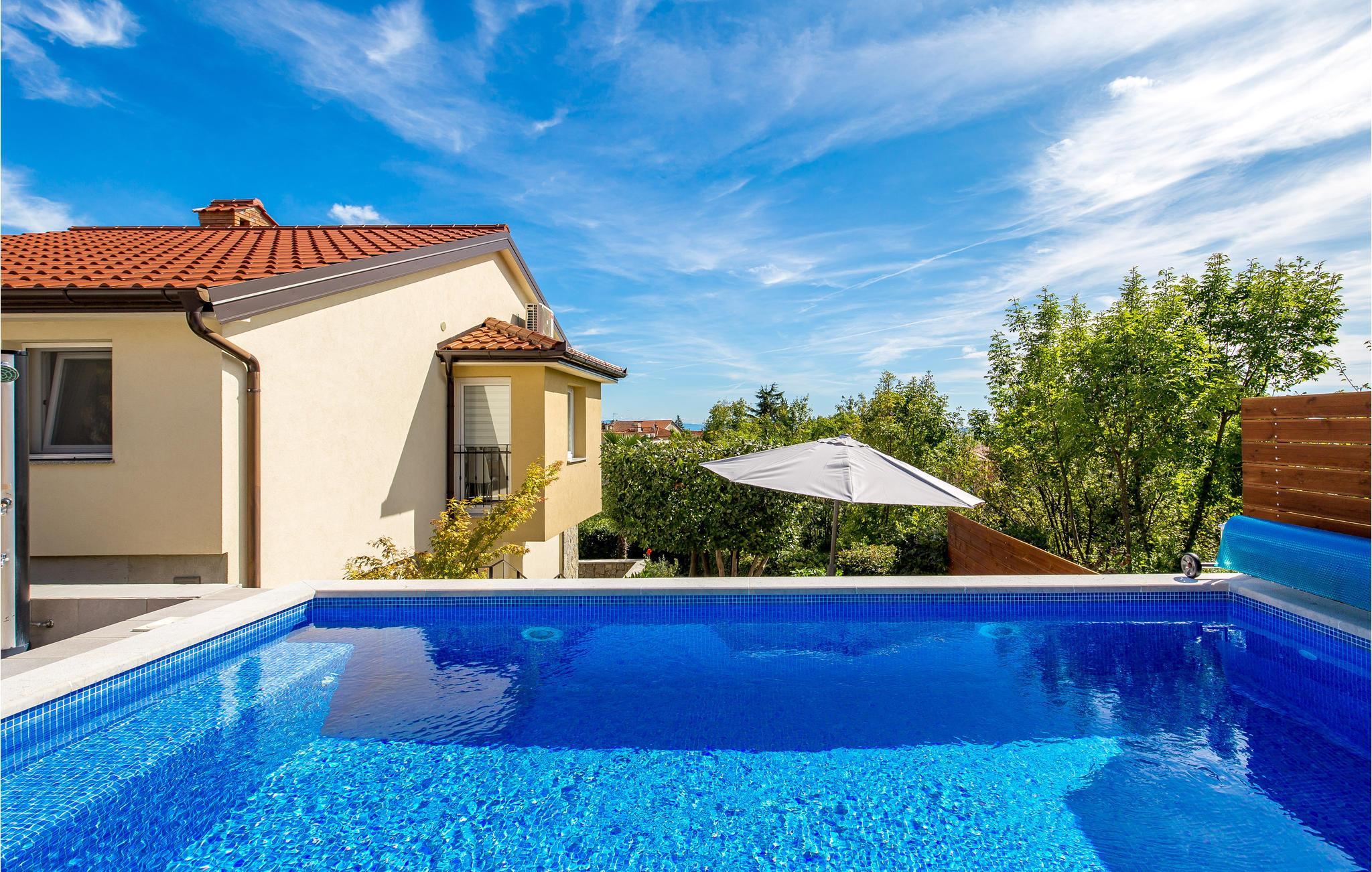 In dem kleinen Ort Matulji, nicht weit von Opatija, ist dieses schöne und moderne Ferienhaus mit Außentreppe ideal für den Urlaub. Im Erdgeschoss gibt es ein kleineres Apartment mit eigenem Wohnbereich, Küche, Schlafzimmer und Bad, während zusätzlich ein geräumiges Wohnzimmer mit Küche, drei Schlafzimmer und zwei Badezimmer auf der oberen Etage zu finden sind. Somit ist das Haus interessant für zwei Familien oder Freunde, die ihren Urlaub zusammen verbringen, aber immer noch die eigenen Wohn- und Schlafbereiche beibehalten möchten. Auf dem Grundstück befindet sich eine schöne Grillterrasse, die sich für geselliges Zusammensitzen eignet sowie ein Pool, der ideal ist für eine angenehme Erfrischung an heißen Sommertagen. Neben dem Haus befindet sich ein Olivenhain mit einer Wiese, wo Ihre Kinder sorglos spielen können. Opatija selbst bietet sowohl in den Sommermonaten, als auch während des ganzen Jahres eine Fülle von Unterhaltungsmöglichkeiten. Verpassen Sie auch nicht das reiche gastronomische und önologische Angebot in einer Reihe von großartigen Restaurants zu genießen. Lieben Sie die aktive Erholung in der Natur? Dafür empfehlen wird den Naturpark Ucka mit seinen zahlreichen Wald- und Radwegen.