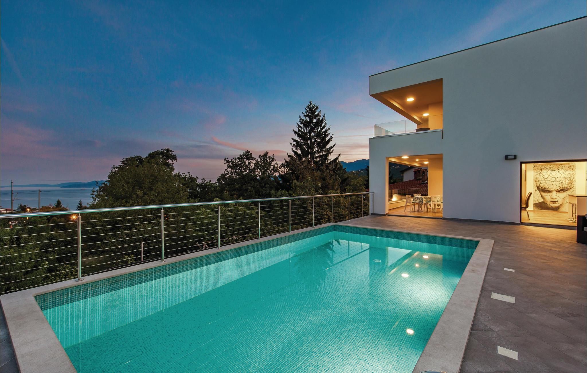 Verbringen Sie Ihren Urlaub mit Familie oder Freunden in diesem schönen Ferienhaus mit Pool, das Sie mit seiner modernen Einrichtung überzeugen wird Die zwei Etagen sind durch Innentreppen miteinander verbunden. In einem separaten Teil des Erdgeschosses führt eine Außentreppe zu der rustikal eingerichteten „Konoba“, die sich ideal für geselliges Zusammensitzen eignet und wie der Pool von Mitte Mai bis Mitte Oktober verfügbar ist. Zu Ihrer Verfügung stehen vier schöne Terrassen zum Entspannen und Genießen des wunderschönen Sonnenuntergangs bei einem guten Glas Wein. Wenn Sie sommerliches Treiben und schöne Strände wünschen, empfehlen wir Ihnen, Opatija zu besuchen, das für seine Architektur und seine schönen Parks berühmt ist. Für alle Naturliebhaber gibt es den Naturpark Ucka mit zahlreichen Wander- und Radwegen.