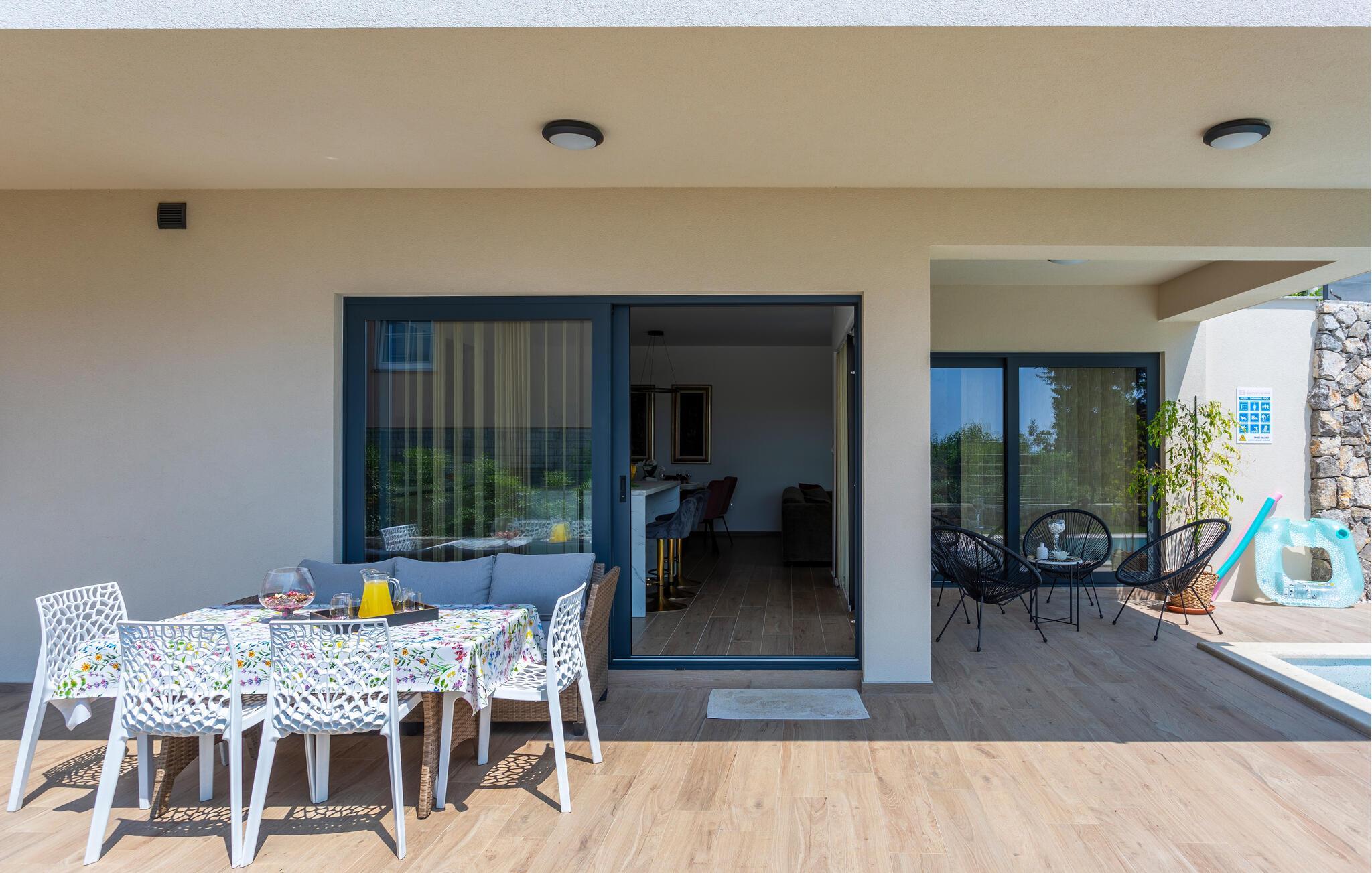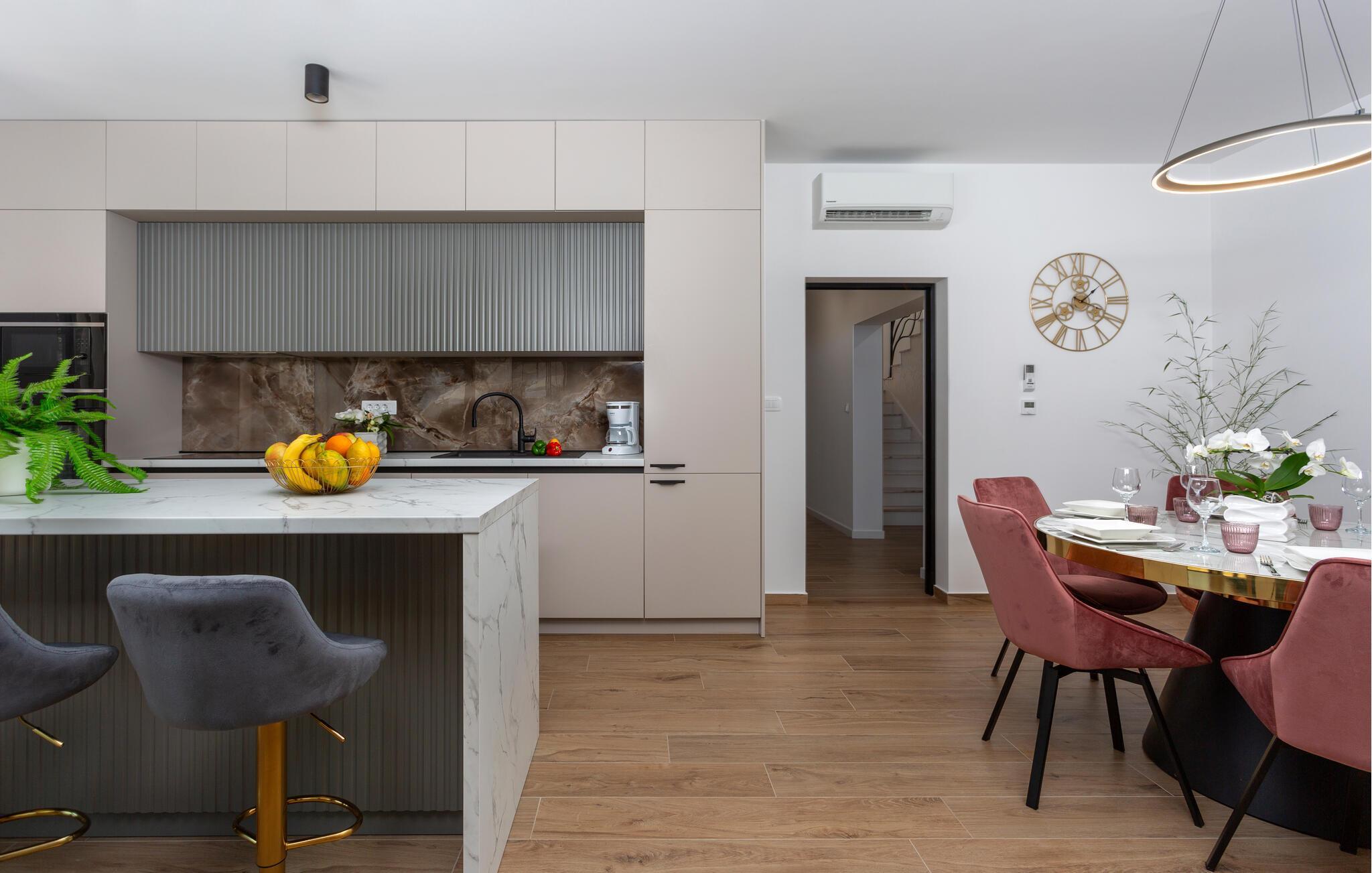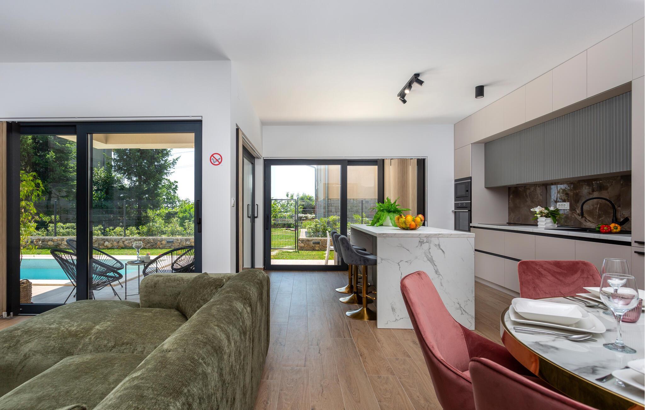 Das komfortable und geräumige Haus empfängt Sie in Matulji oberhalb von Opatija. Machen Sie es sich in den hellen Räumen mit Ihren Lieben gemütlich. Die Einrichtung ist geschmackvoll und modern und verleiht dem Inneren des Ferienhauses sein wohnliches Ambiente. Suchen Sie eine der vielen behaglich eingerichteten Räume zum Entspannen auf, bevor Sie in den ansprechenden Gemeinschaftsbereichen wieder zu den anderen stoßen und gemeinsam kochen, essen und entspannen.