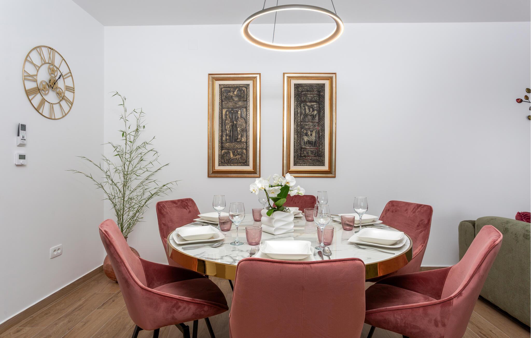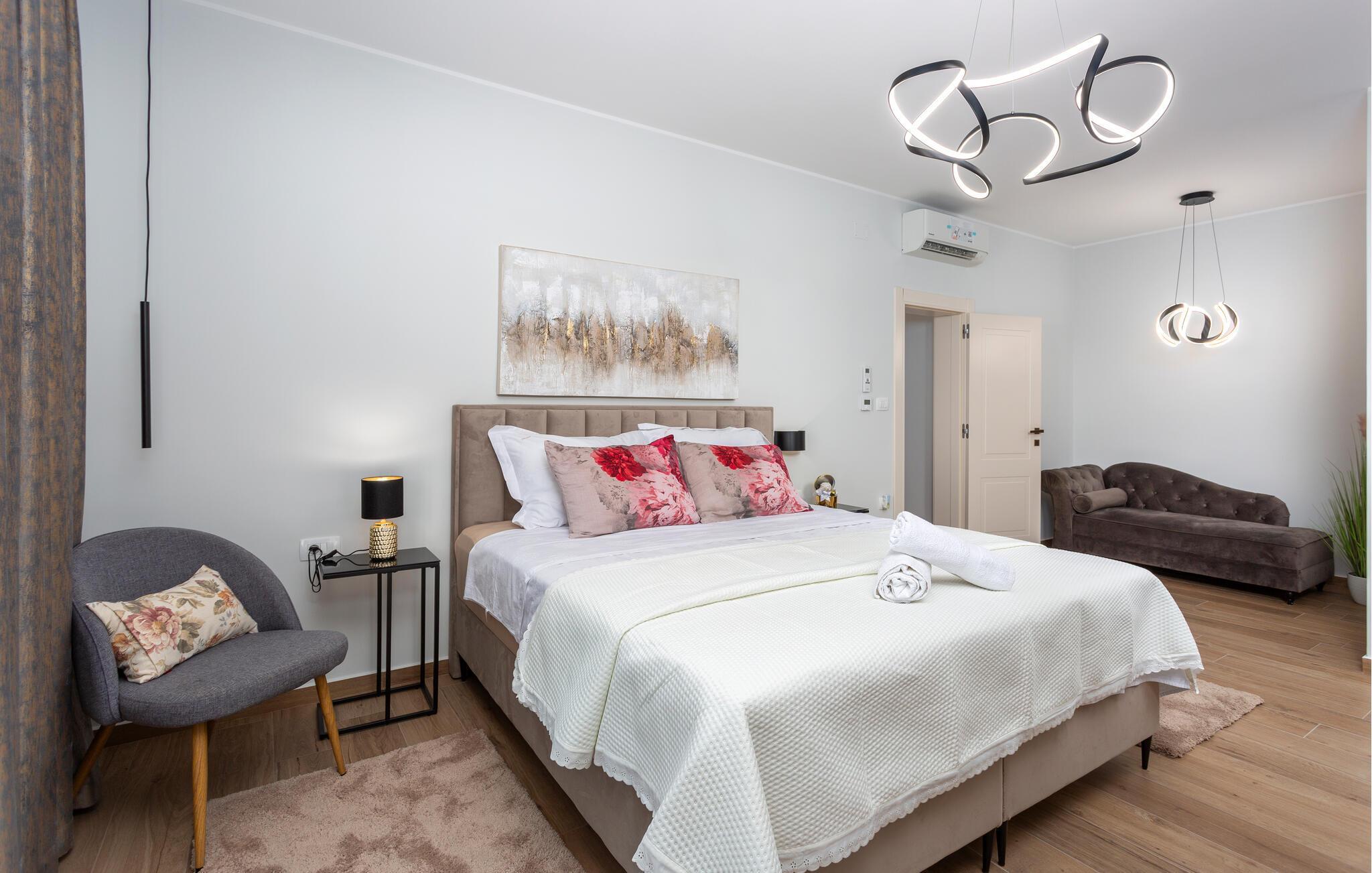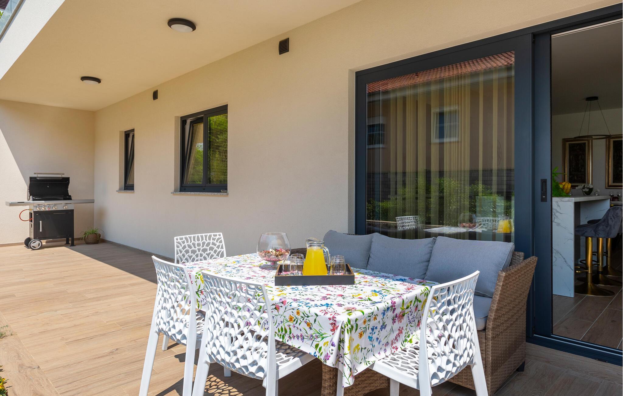 Das komfortable und geräumige Haus empfängt Sie in Matulji oberhalb von Opatija. Machen Sie es sich in den hellen Räumen mit Ihren Lieben gemütlich. Die Einrichtung ist geschmackvoll und modern und verleiht dem Inneren des Ferienhauses sein wohnliches Ambiente. Suchen Sie eine der vielen behaglich eingerichteten Räume zum Entspannen auf, bevor Sie in den ansprechenden Gemeinschaftsbereichen wieder zu den anderen stoßen und gemeinsam kochen, essen und entspannen.