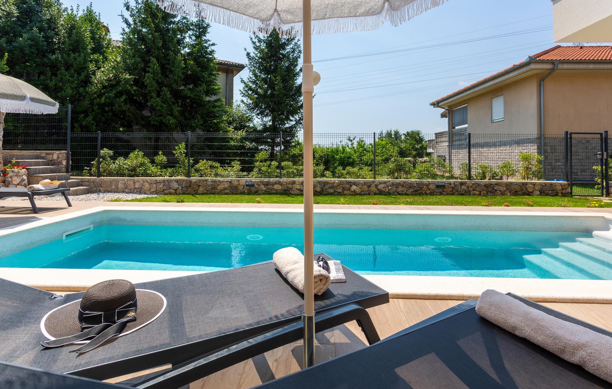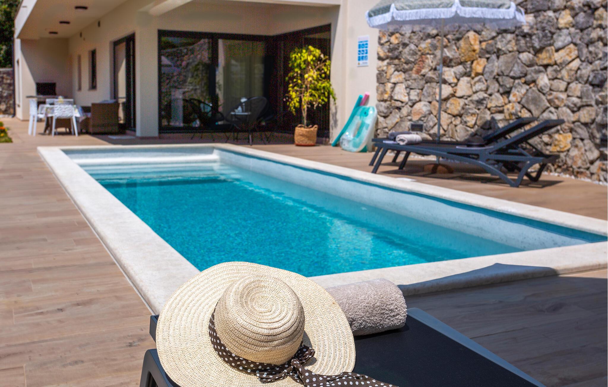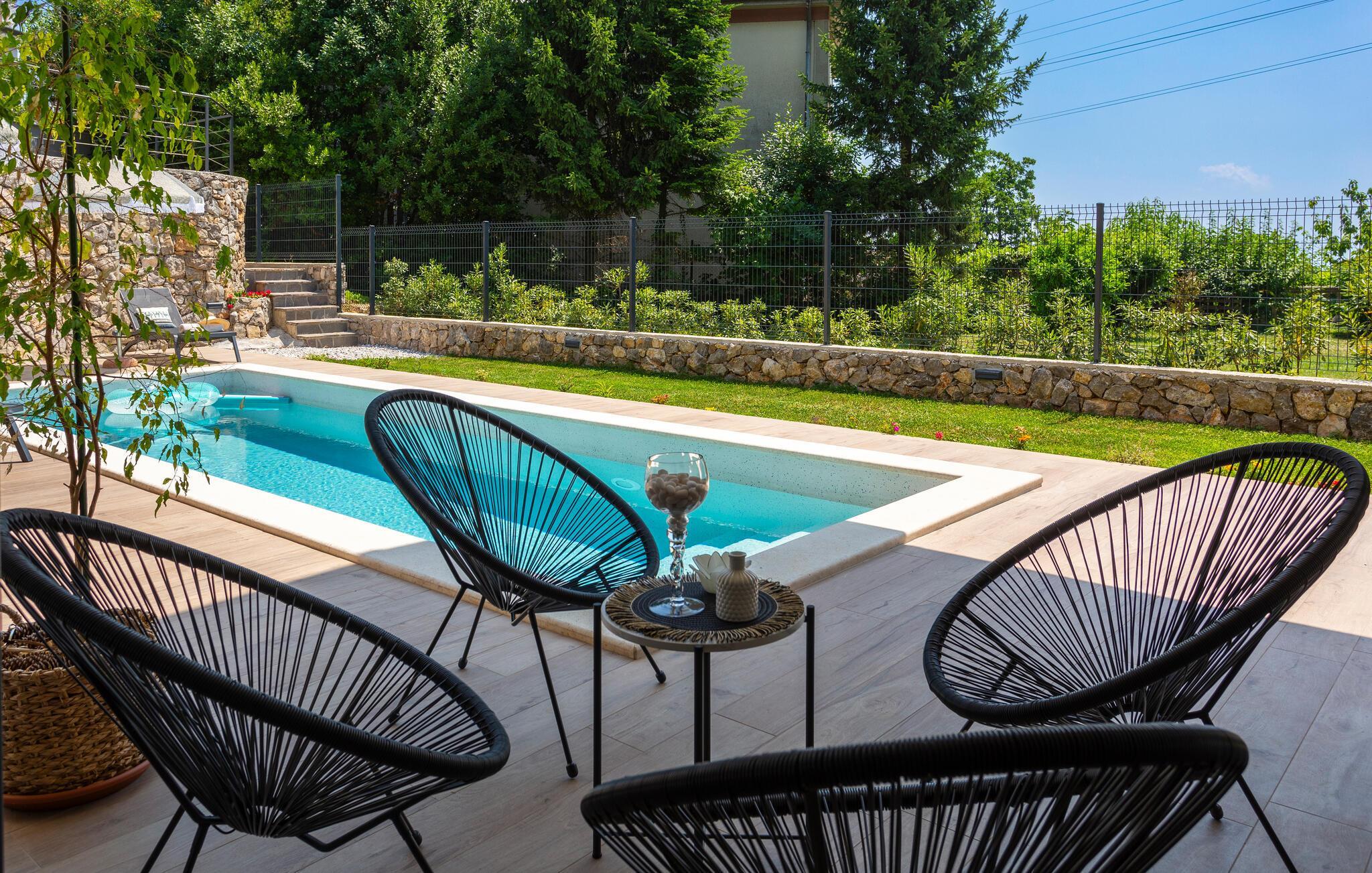 Freuen Sie sich auf einen erholsamen Urlaub in diesem einladenden Ferienhaus mit privatem Pool.