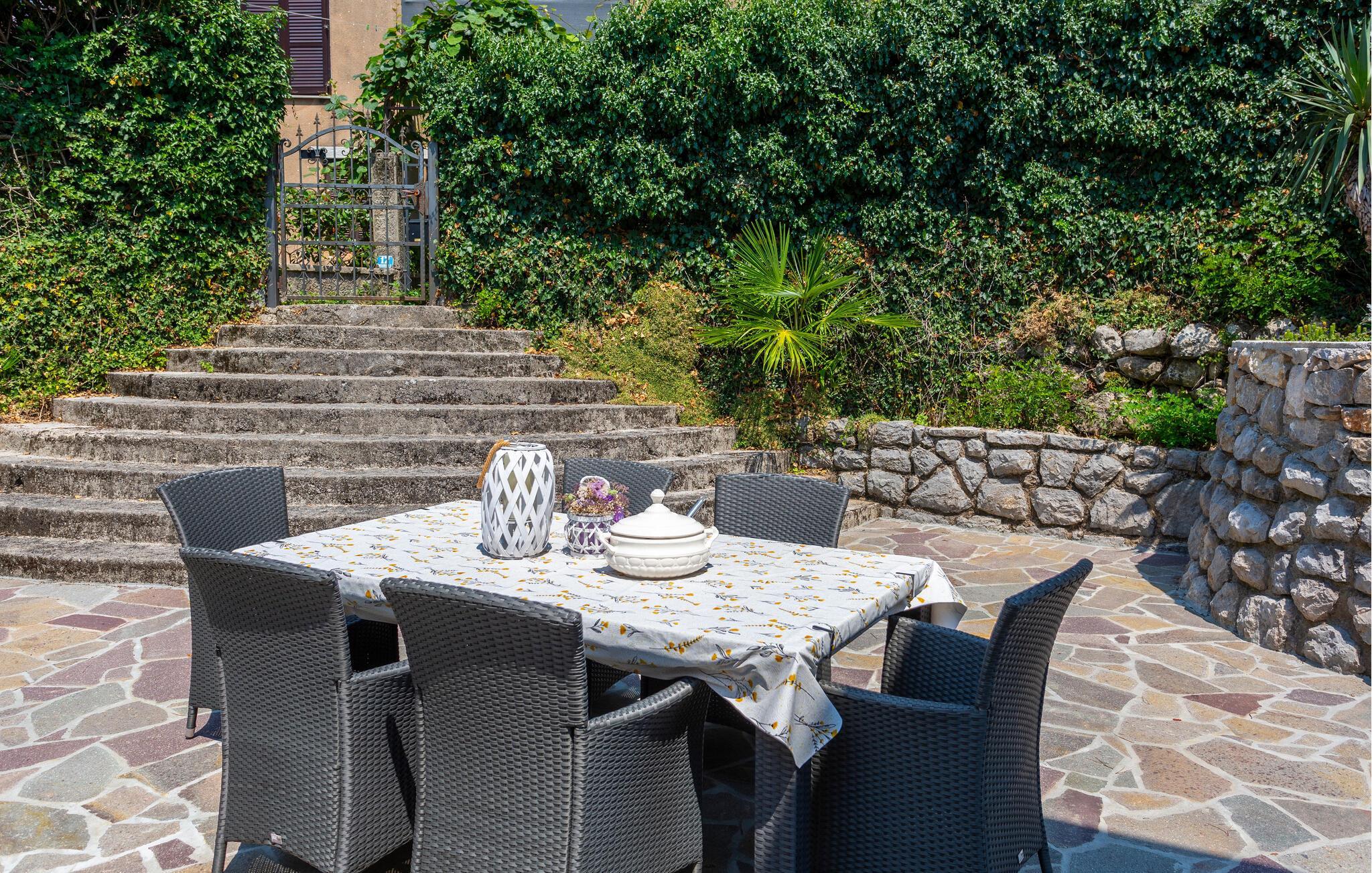 Das Meer befindet sich nur eine kurze Autofahrt vom Ferienhaus entfernt. Flanieren Sie in Opatija auf der Küstenpromenade, die sich von Voloski bis Lovran erstreckt, und bestaunen Sie die eleganten Villen aus der Zeit des österreichischen Adels, hier finden Sie auch das Wahrzeichen der Stadt, eine Statue namens Mädchen mit der Möwe. Eine erholsame Pause mit Meerblick bietet sich im Park Angiolina an.