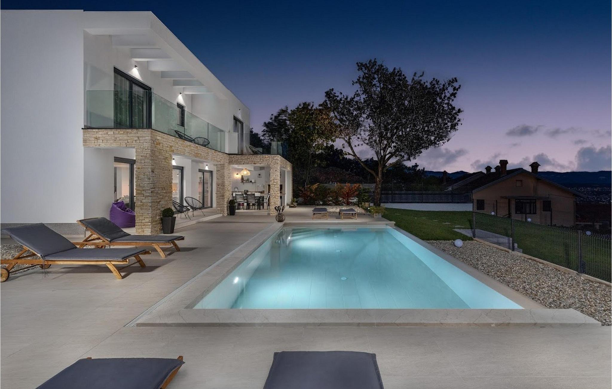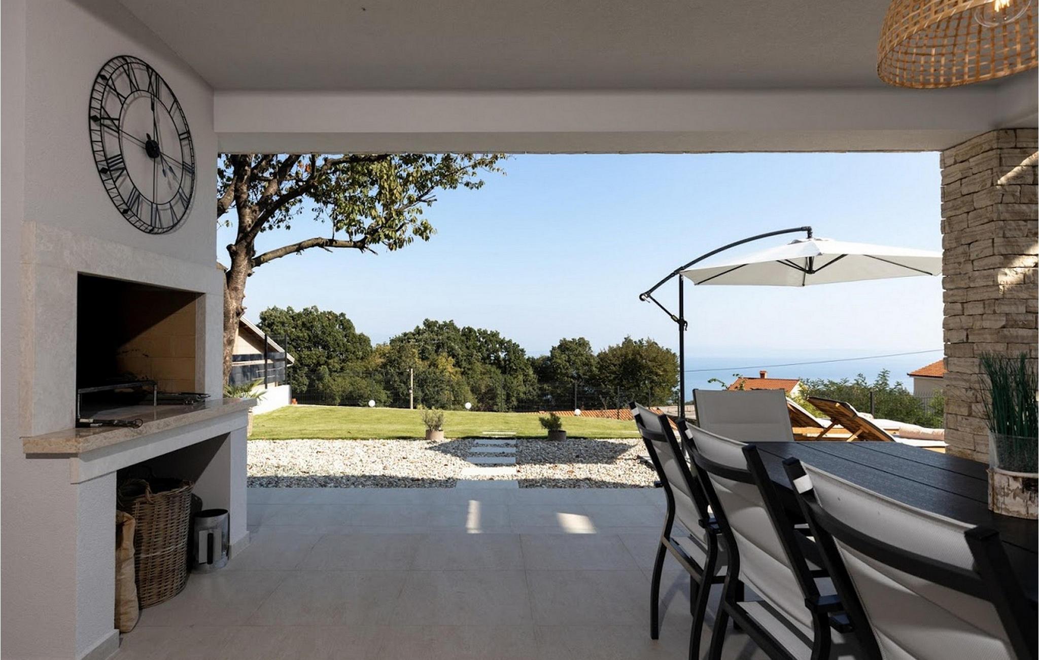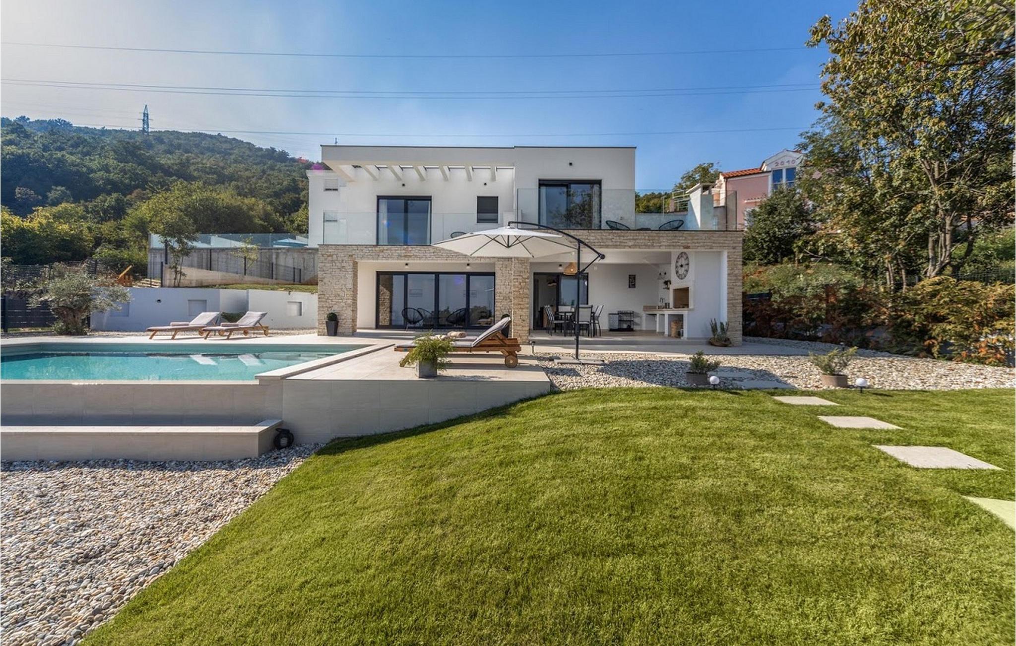 Die schöne moderne Villa Askim Prestige befindet sich in Kvarner, in der kleinen Stadt Matulji, die drei Kilometer von Opatija entfernt ist. In Matulji erleben Sie die friedliche Kvarner-Atmosphäre, die ideal für einen Familienurlaub ist. In der Nähe liegt das schöne Opatija, das über ein großes gastronomisches und touristisches Angebot verfügt, und eine wunderschöne Riva, die reich an Architektur und historischen Sehenswürdigkeiten ist. Im ersten Stock der Villa Askim Prestige befinden sich drei Schlafzimmer (Doppelbetten) mit eigenem Bad mit Dusche, zwei davon verfügen über einen Balkon mit herrlichem Blick auf die blaue Adria. Das Erdgeschoss verfügt über eine separate Toilette, ein Schlafzimmer mit eigenem Bad, eine moderne, funktionale Küche mit Esszimmer mit 8 Sitzplätzen und einer Bar mit 3 Sitzplätzen sowie ein gemütliches Wohnzimmer. Alle Räume in der Villa sind klimatisiert. Im Hof befindet sich ein beheizter Swimmingpool (4 x 8 x 1,55 m), um den sich 6 Sonnenliegen und 2 LayZ-Taschen befinden, ideal zum Faulenzen und Genießen der Sonne. Es gibt einen Holzkohlegrill im Freien, auf dem Sie verschiedene Spezialitäten zubereiten und diese im Speisesaal im Freien servieren können. Der Hof ist eingezäunt (Zaun von 1,10 m bis 1,70 m) und Sie haben absolute Privatsphäre. Im Hof befinden sich 3 Parkplätze. Die Villa verfügt über eine finnische und eine integrierte Infrarotsauna mit Blick auf das Meer. In der Nähe der Villa Askim Prestige befinden sich der Kiesstrand Tomaševac und der Betonstrand Lido, der zu den schönsten Stränden an der Küste von Opatija zählt. Sie können die Natur rund um die Villa auch genießen, indem Sie auf den Radwegen radeln oder durch die wunderschönen Wälder spazieren. Die Ankunft in der Villa Askim Prestige garantiert Ihrer Familie einen idealen Urlaub! Haustiere sind in dieser Unterkunft nach Ermessen des Eigentümers oder gegen eine Gebühr gestattet. Bitte beachten Sie, dass diese Unterkunft keine Jugendgruppen oder Junggesellenabschiede akzeptiert. Eine Jugendgruppe in dieser Unterkunft besteht aus Personen unter 30 Jahren. Buchen Sie diese Unterkunft nicht, wenn Sie eine Jugendgruppe oder ein Junggesellenabschied sind, da Ihre Buchung nach der Buchung abgelehnt wird, was auch bei der Ankunft in der Unterkunft oder während Ihres Aufenthalts der Fall sein kann, und Sie keine Rückerstattung erhalten.