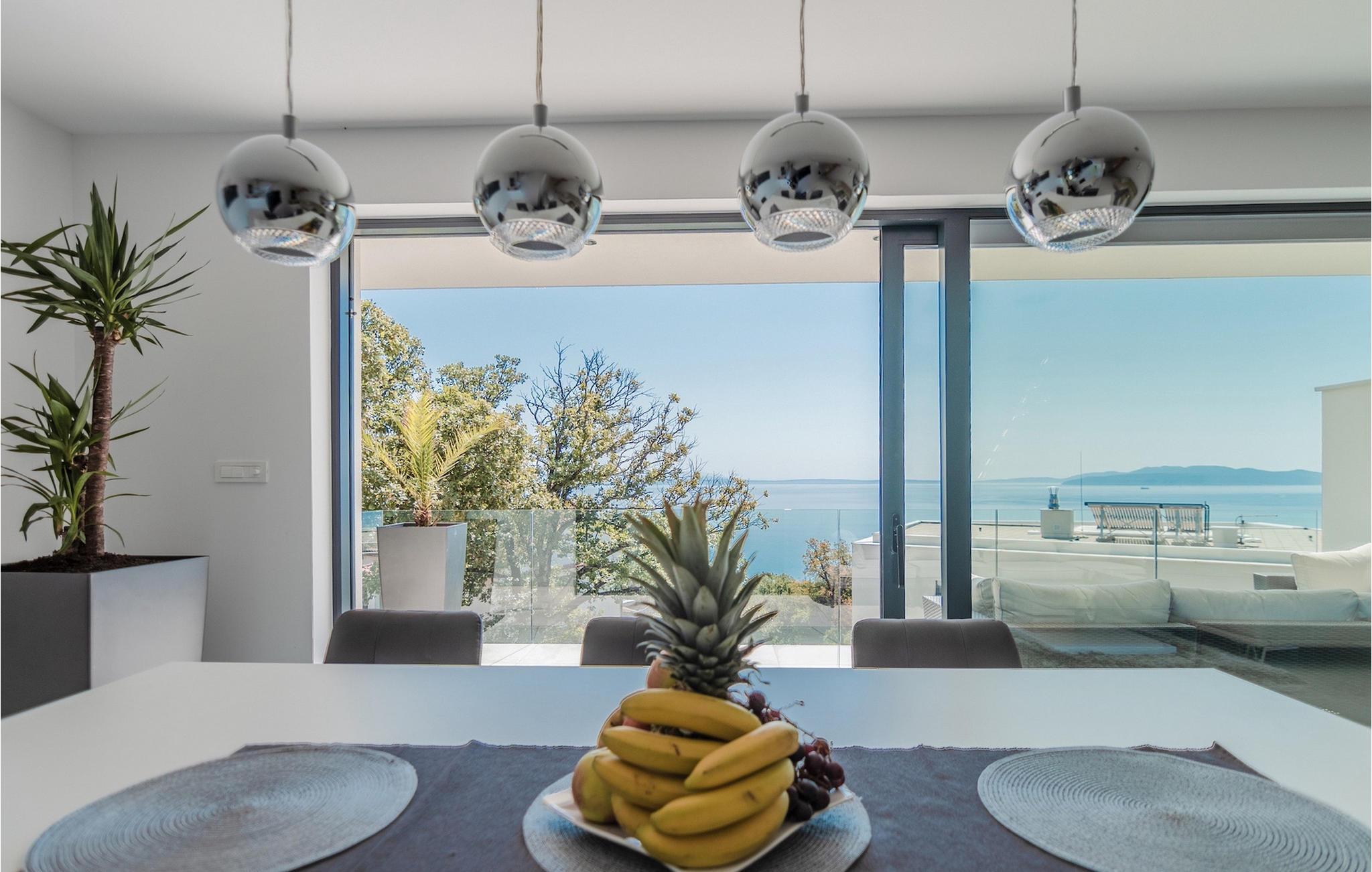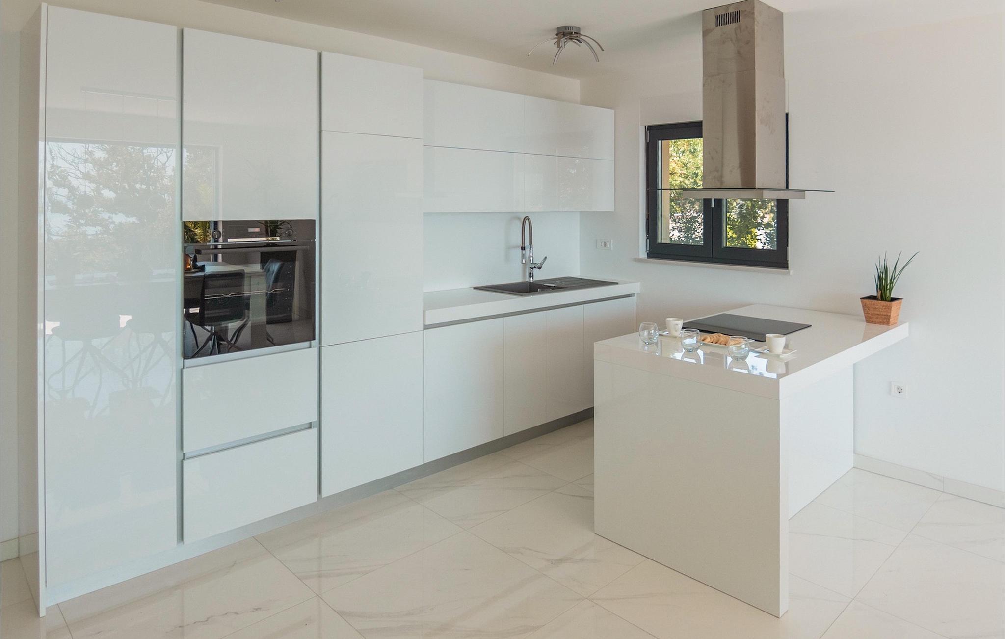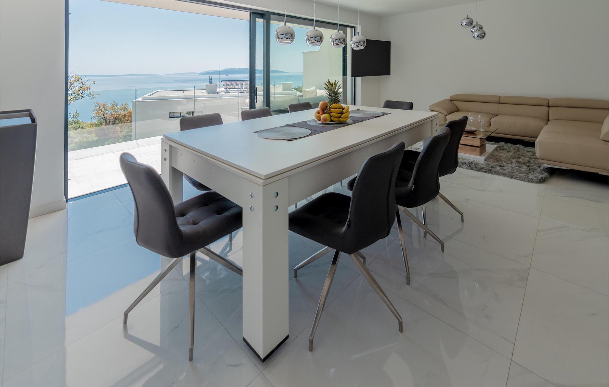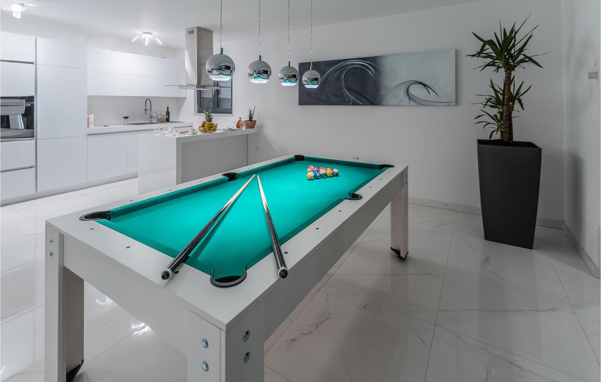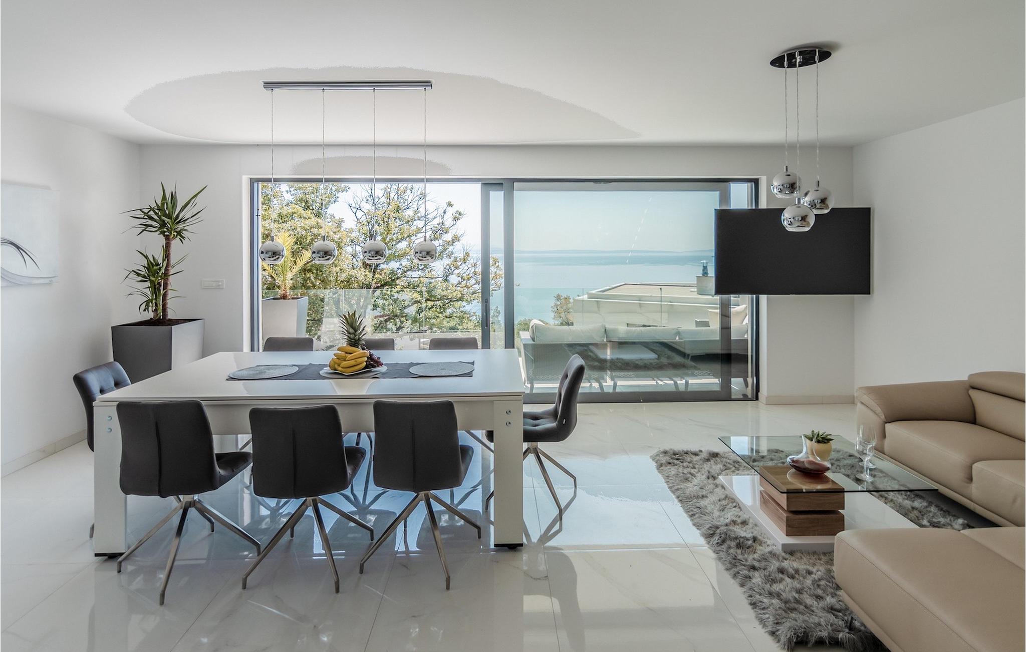 Die Villa ist in drei Ebenen unterteilt. Im Erdgeschoss befinden sich zwei Doppelbettzimmer mit jeweils eigenem Bad mit Dusche, TV und Klimaanlage. Im ersten Stock befinden sich ein moderner Wohn- und Essbereich mit Küche und ein Badezimmer. Der Esstisch lässt sich leicht zu einem Billardtisch umwandeln. Auf derselben Etage gibt es ein Extrazimmer für zwei Kinder mehr auf Anfrage. Die imposante Holztreppe führt zu einem weiteren Schlafzimmer mit Doppelbett im zweiten Stock. Das Zimmer verfügt über eigenes Badezimmer, TV und Klimaanlage. Auf jeder Etage dieser Villa steht Ihnen jeweils eine Terrasse zur Verfügung, auf der Sie mit Familie und Freunden die Sonne oder den Sternenhimmel genießen können. Den Pool auf dem Dach der Villa, der zum Schwimmen über den Wolken der Kvarner Bucht einlädt, werden Sie nur ungern verlassen.