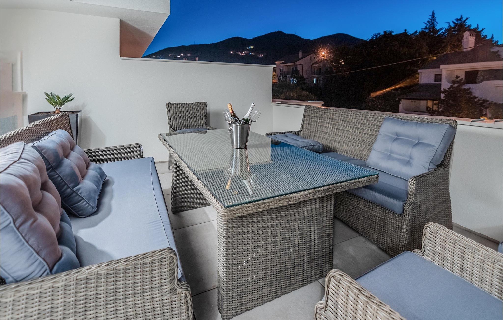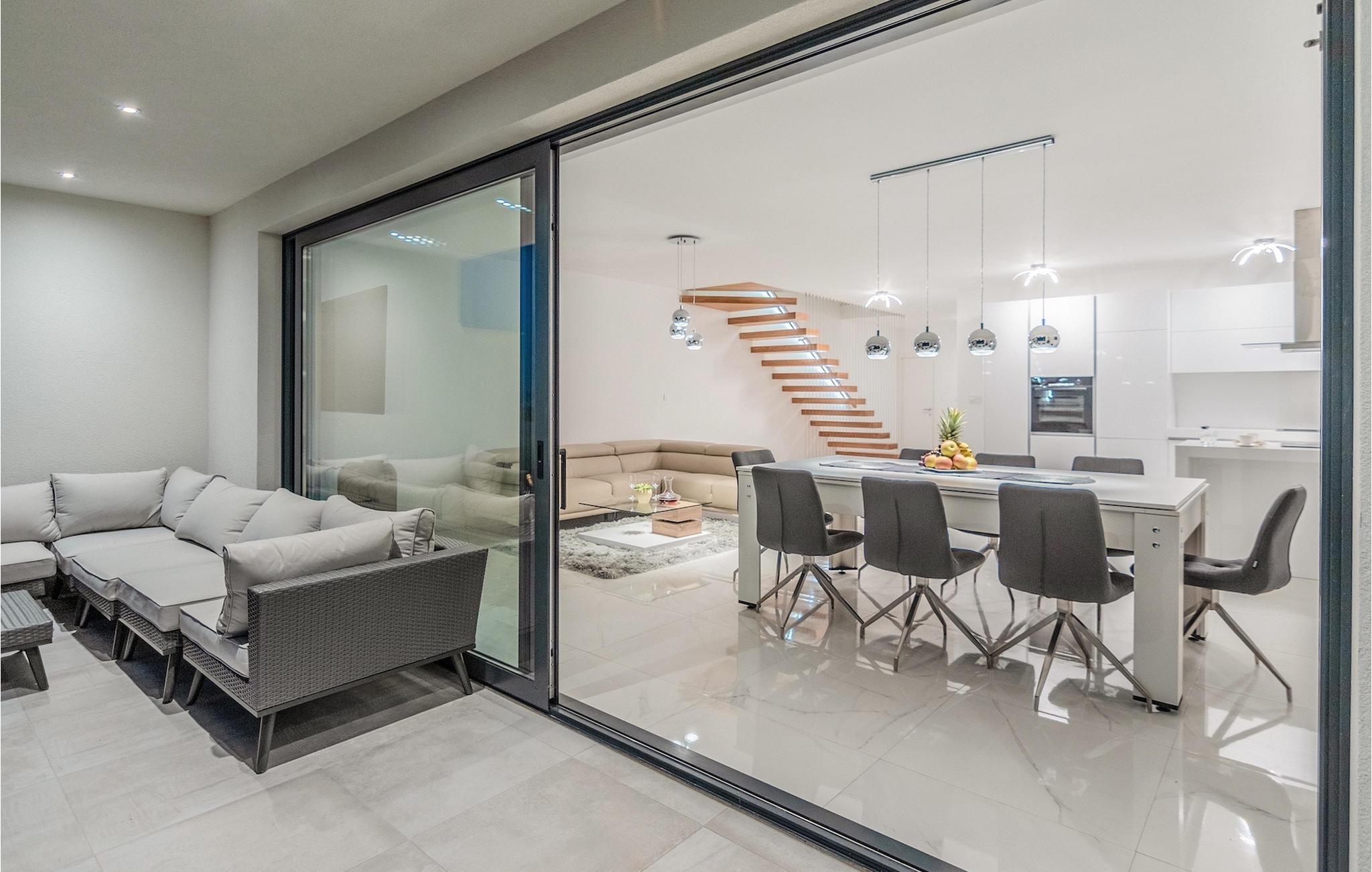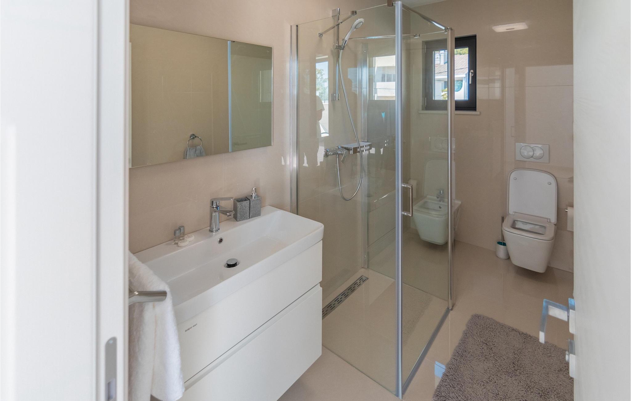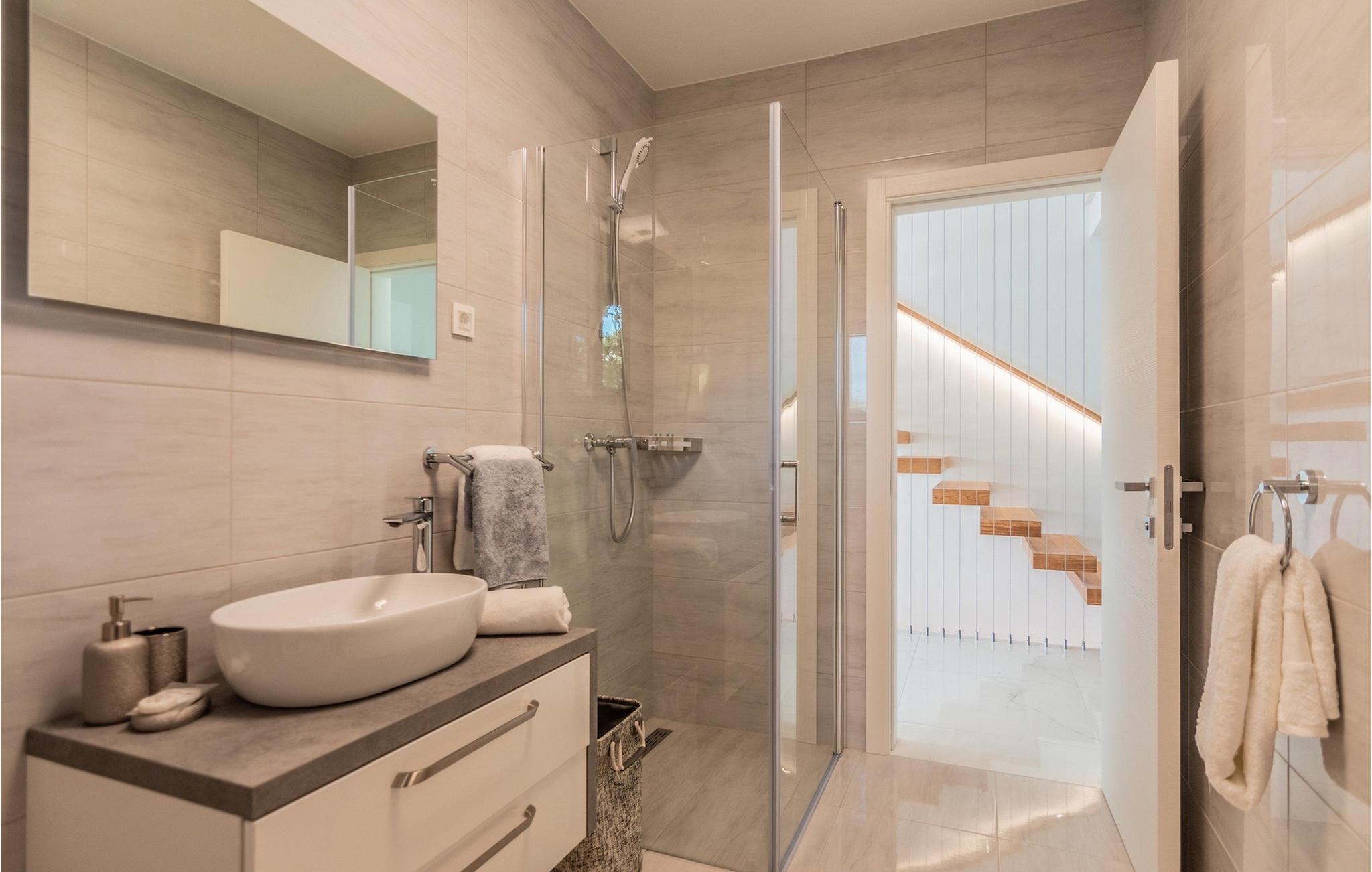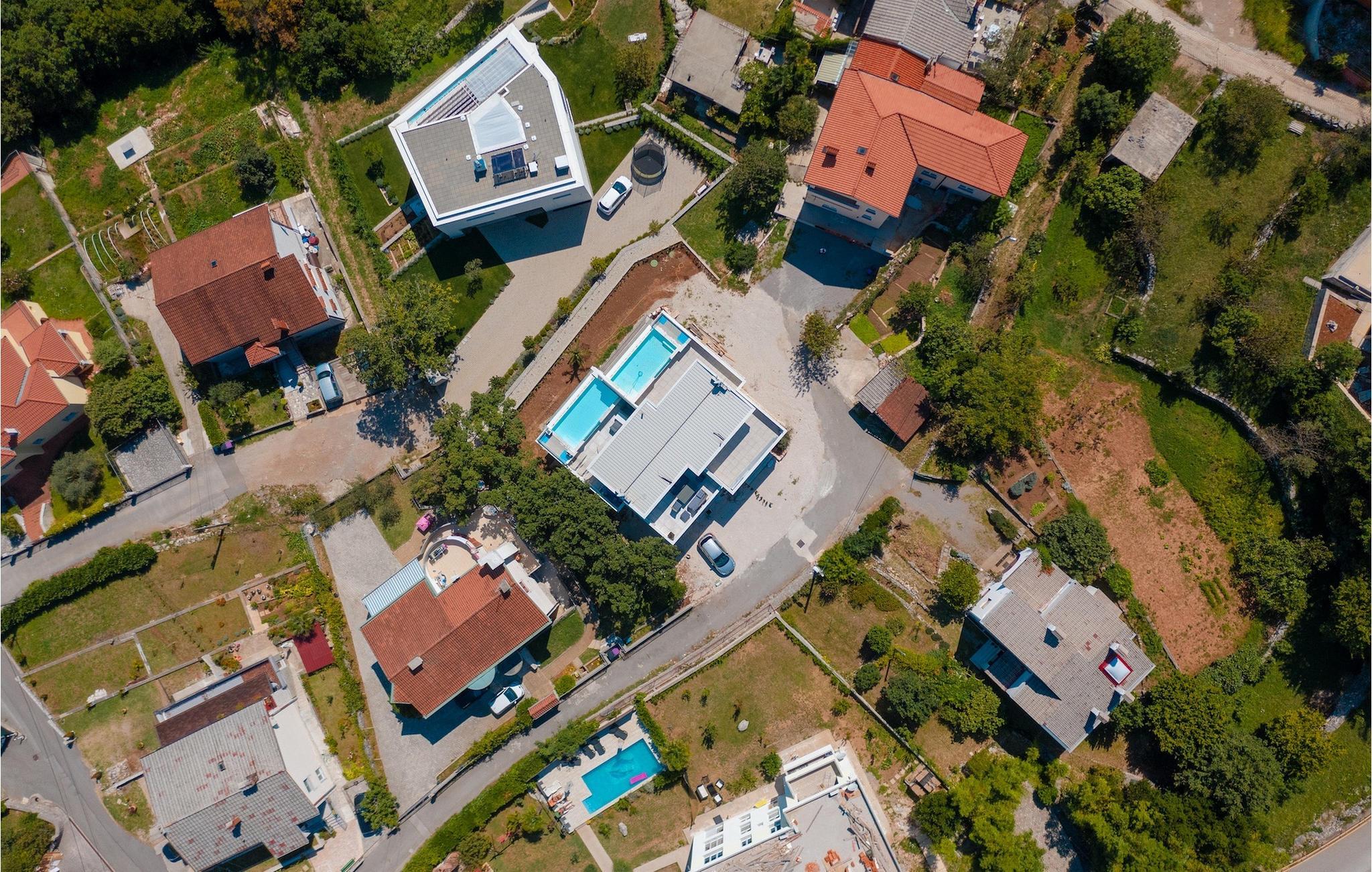 Die Villa ist in drei Ebenen unterteilt. Im Erdgeschoss befinden sich zwei Doppelbettzimmer mit jeweils eigenem Bad mit Dusche, TV und Klimaanlage. Im ersten Stock befinden sich ein moderner Wohn- und Essbereich mit Küche und ein Badezimmer. Der Esstisch lässt sich leicht zu einem Billardtisch umwandeln. Auf derselben Etage gibt es ein Extrazimmer für zwei Kinder mehr auf Anfrage. Die imposante Holztreppe führt zu einem weiteren Schlafzimmer mit Doppelbett im zweiten Stock. Das Zimmer verfügt über eigenes Badezimmer, TV und Klimaanlage. Auf jeder Etage dieser Villa steht Ihnen jeweils eine Terrasse zur Verfügung, auf der Sie mit Familie und Freunden die Sonne oder den Sternenhimmel genießen können. Den Pool auf dem Dach der Villa, der zum Schwimmen über den Wolken der Kvarner Bucht einlädt, werden Sie nur ungern verlassen.