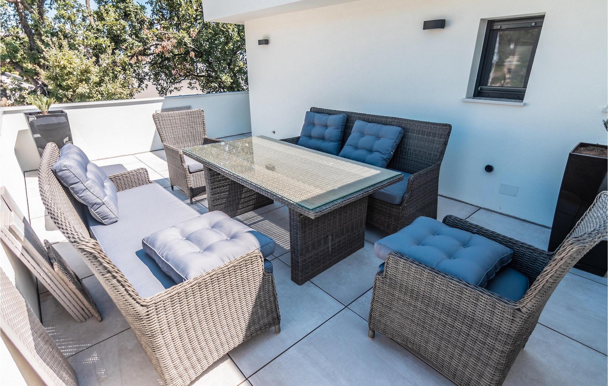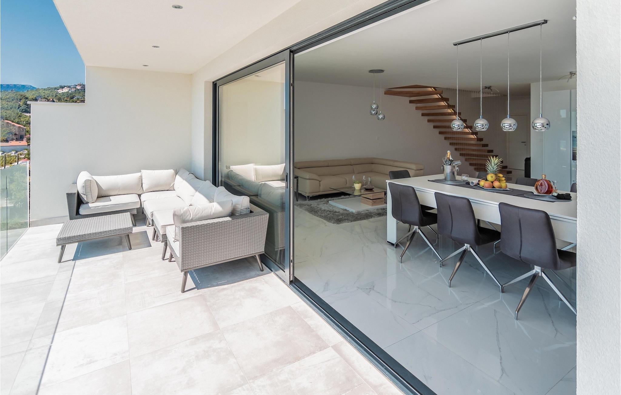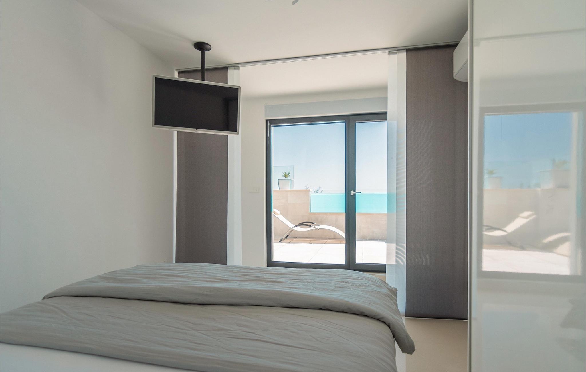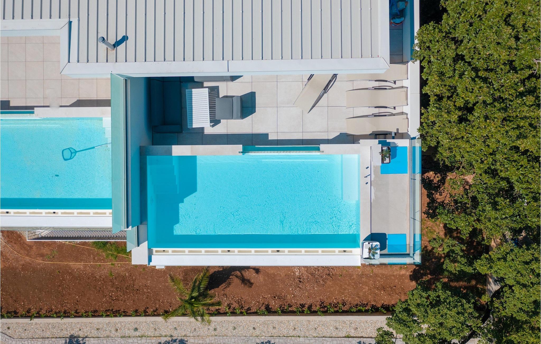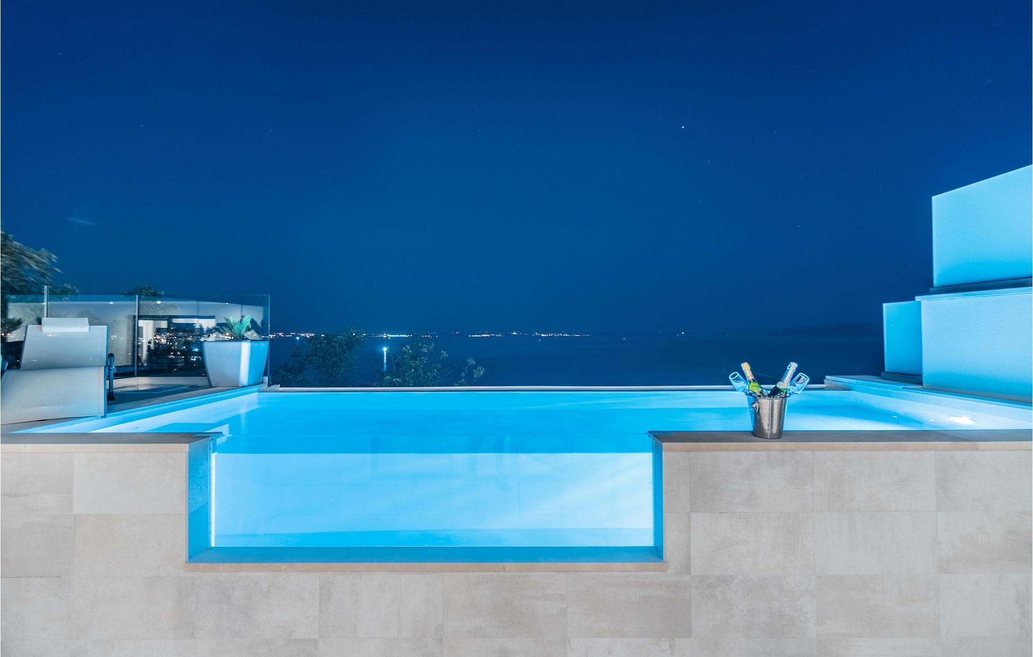 Die Villa ist in drei Ebenen unterteilt. Im Erdgeschoss befinden sich zwei Doppelbettzimmer mit jeweils eigenem Bad mit Dusche, TV und Klimaanlage. Im ersten Stock befinden sich ein moderner Wohn- und Essbereich mit Küche und ein Badezimmer. Der Esstisch lässt sich leicht zu einem Billardtisch umwandeln. Auf derselben Etage gibt es ein Extrazimmer für zwei Kinder mehr auf Anfrage. Die imposante Holztreppe führt zu einem weiteren Schlafzimmer mit Doppelbett im zweiten Stock. Das Zimmer verfügt über eigenes Badezimmer, TV und Klimaanlage. Auf jeder Etage dieser Villa steht Ihnen jeweils eine Terrasse zur Verfügung, auf der Sie mit Familie und Freunden die Sonne oder den Sternenhimmel genießen können. Den Pool auf dem Dach der Villa, der zum Schwimmen über den Wolken der Kvarner Bucht einlädt, werden Sie nur ungern verlassen.