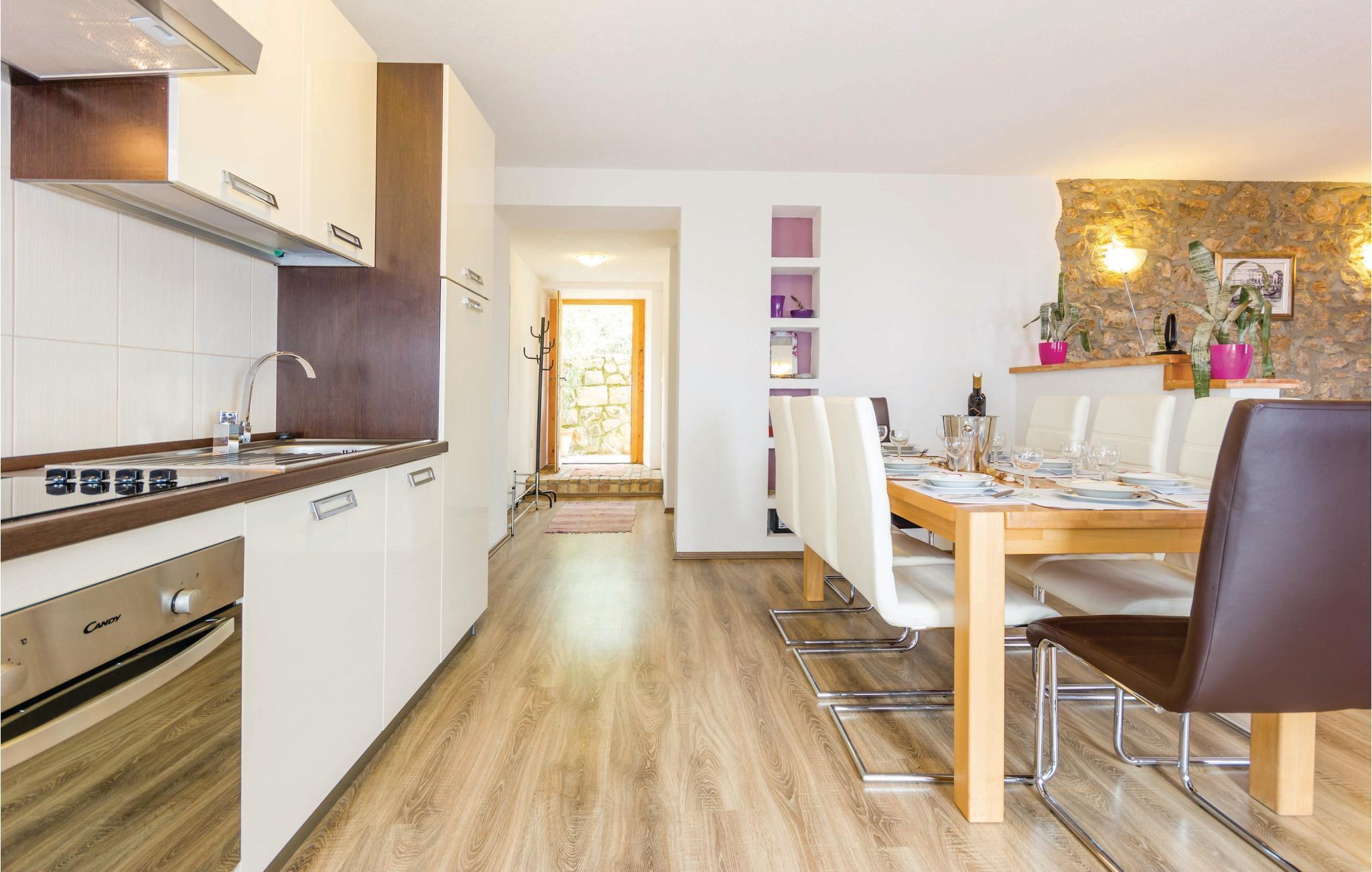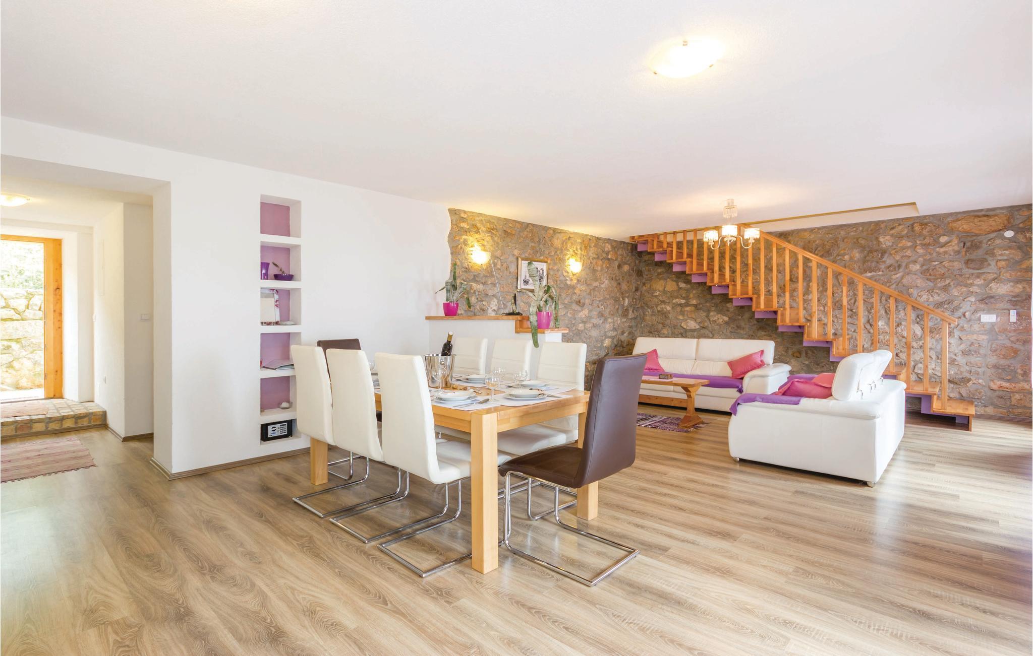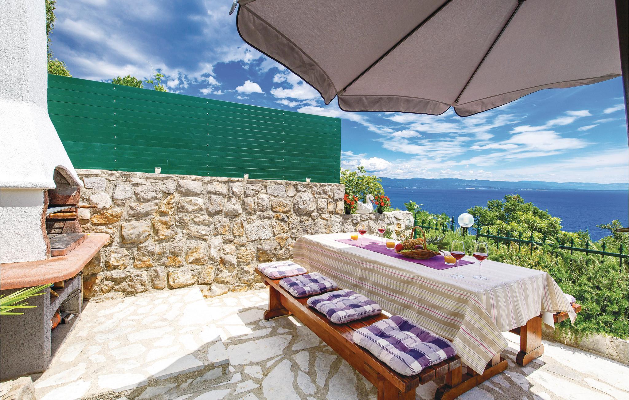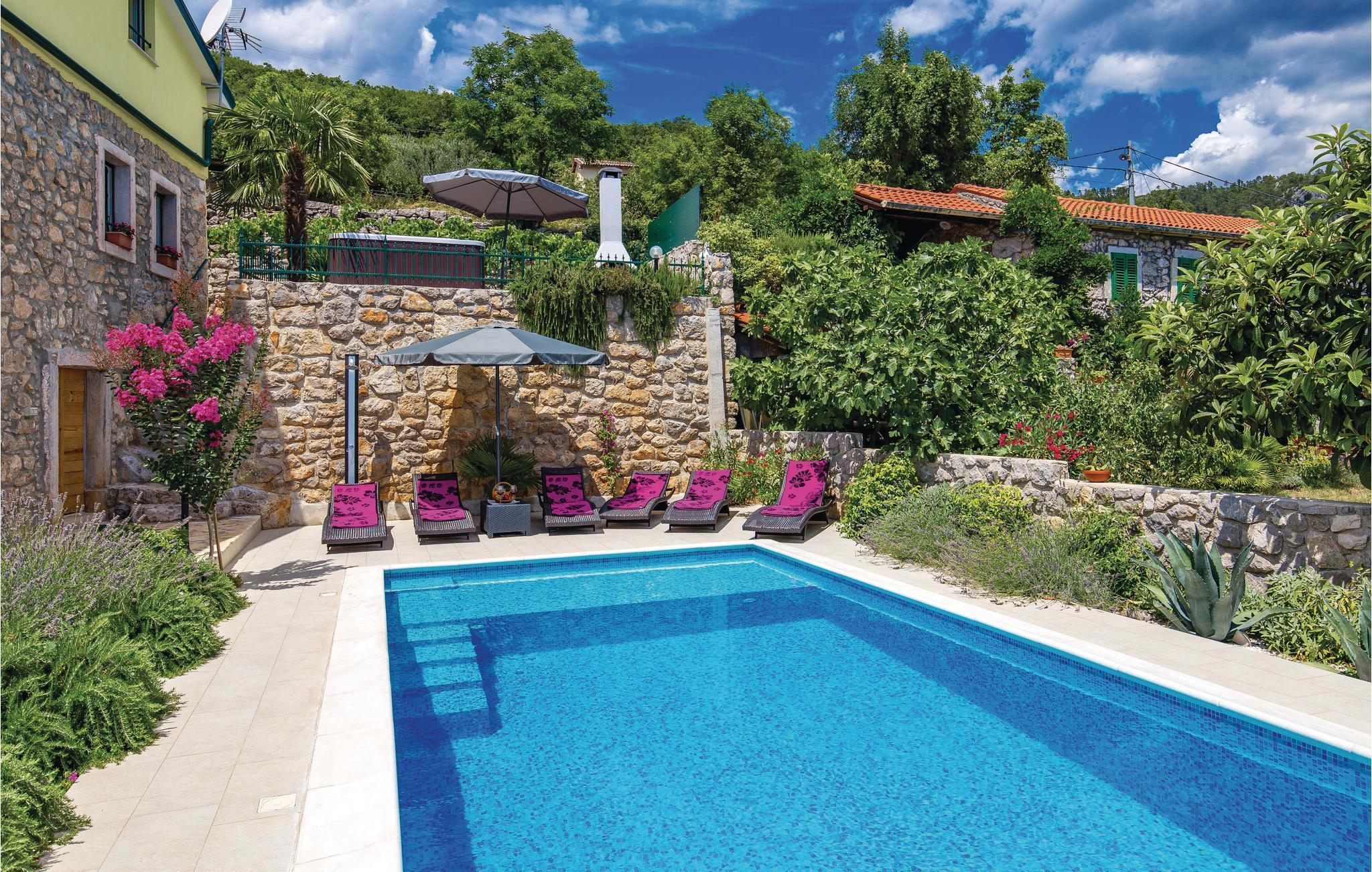 Diese authentische Steinhausdoppelhälfte wurde im Jahr 1856 erbaut, 2012 komplett renoviert und neu eingerichtet. Sie liegt ruhig, umgeben von viel Grün und bietet einen wunderschönen Blick auf das Meer und die Kvarner Bucht. Der erste Stock verfügt über ein großes Wohnzimmer und die Küche, während die Schlafzimmer im Stockwerk darüber sind, d.h. im Dachgeschoss mit einer niedrigsten Deckenhöhe von ca. 30 cm. Im Erdgeschoss erwartet Sie ein Fitness- und Freizeitraum, der mit der ersten Etage über eine Aussentreppe verbunden ist. Erfrischung bietet der Pool, dessen Besonderheit ist, dass er sowohl ein tiefes Becken (25m2), sowie ein Kinderbecken (5m2) hat. Sie brauchen nicht weiter als bis zum nächsten Strand, Medveja, zu fahren, da es dort viele Freizeitangebote gibt, die außer einem erfrischenden Bad noch Unterhaltung und Spaß bieten. Der Strand ist ideal für alle Altersgruppen. Abends können Sie in Opatija durch die Straßen bummeln. Wir empfehlen Ihnen auch, Fischspezialitäten in einem der vielen Restaurants zu kosten, die ein reiches, gastronomisches Angebot haben. Das Haus ist ideal für den gemeinsamen Urlaub von mehreren Familien oder Freunden. Der Vermieter wohnt etwas weiter weg.