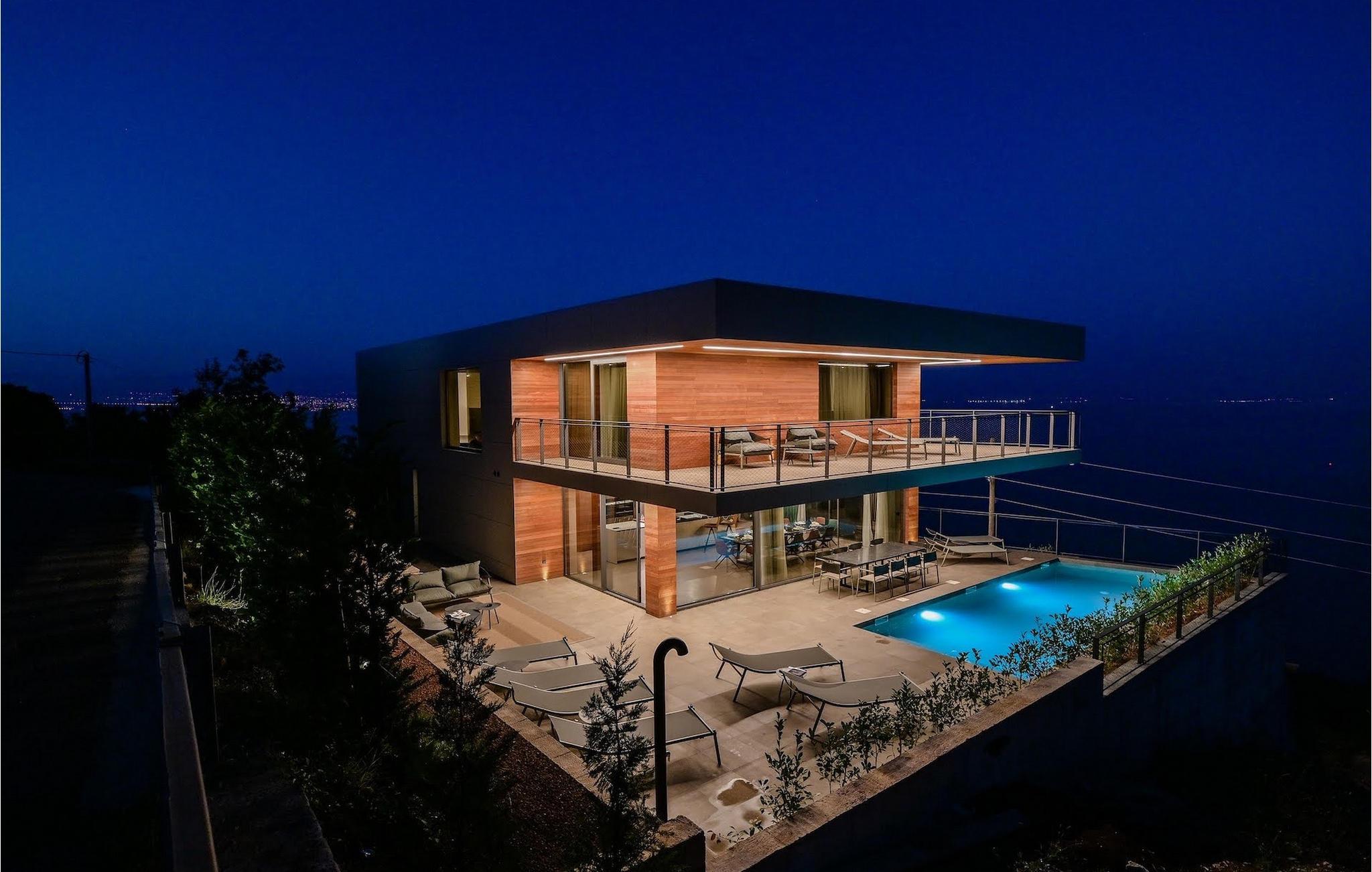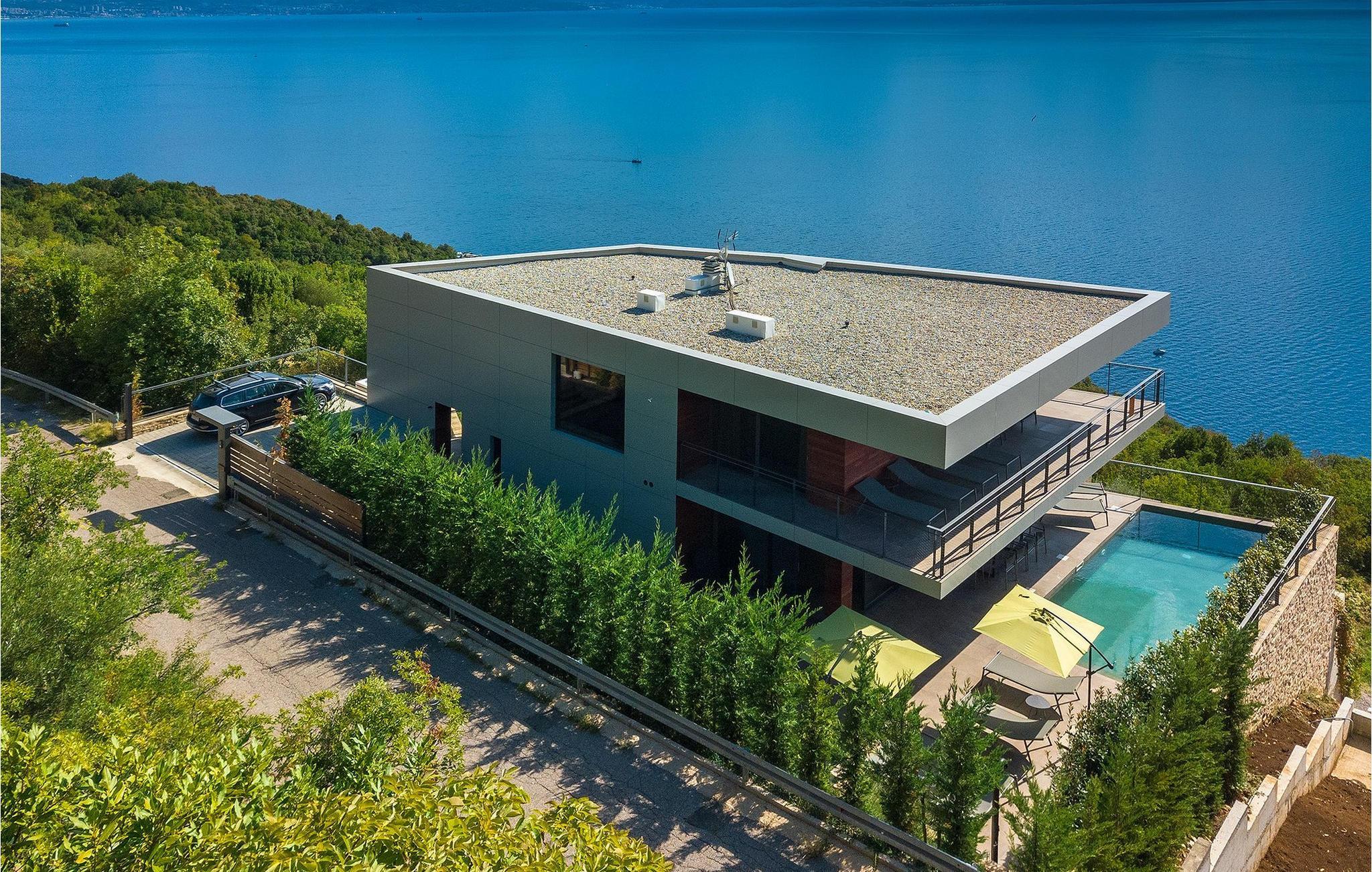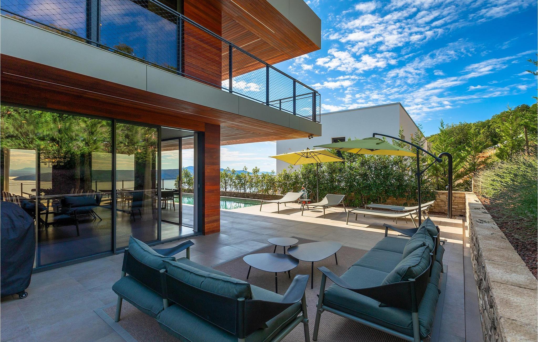 Die Luxusvilla Vista Hills bietet Ihnen einen unvergesslichen Urlaub mit königlicher Behandlung und Komfort. Die Villa verfügt über einen atemberaubenden Ausblick auf die Kvarner-Bucht und ist darauf ausgelegt, Ihren Aufenthalt mit Ruhe und in positiver Atmosphäre zu beeindrucken. Die Villa hat fünf Schlafzimmer für zehn Gäste, mit der Möglichkeit, bis zu zwei weitere Gäste auf Zustellbetten unterzubringen. Jedes Schlafzimmer ist klimatisiert und verfügt über ein eigenes Bad, einen Fernseher und Zugang zum Balkon. Im ersten Stock befinden sich drei moderne und luxuriöse Zimmer. Zwei weitere Zimmer befinden sich im dritten Stock. Im zweiten Stock der Villa befindet sich ein geräumiges Wohnzimmer mit hochwertigen italienischen Möbeln sowie ein Essbereich und eine komplett ausgestattete Küche, die nach den Anweisungen eines professionellen Kochs gestaltet wurde. Das Erdgeschoss der Villa bietet Ihnen eine Taverne mit Küche, ein idealer Ort für Geselligkeit. Ebenso befindet sich auf dieser Etage ein Wellnessraum mit Sauna, Whirlpool und Massageliege, wo Sie Körper und Geist aufladen können. Die Villa verfügt auch über ein Spielzimmer mit Spielzeug und Playstation, ein voll ausgestattetes Fitnessstudio und ein großes Büro. Olivenbäume sorgen für eine authentische mediterrane Atmosphäre und ein beheizter Pool mit Sonnenliegen und einem Loungebereich lädt zum Entspannen ein. Die Terrasse samt Esstisch und Grill ist vom inneren Essbereich aus zugänglich und ein idealer Ort zum Verweilen mit Familie sowie Freunden mit herrlichem Panoramablick. Neben der Unterkunft in der Villa, gibt es auf Anfrage und gegen Aufpreis verschiedene Zusatzleistungen wie ein privater Trainer, professioneller Koch, der köstlichte Spezialitäten zubereitet, ein Besuch von einem berühmten Sommelier, Schönheitsbehandlungen und Massagen, Yacht Verleih, Elektrofahrräder, Tauchlehrer und vieles mehr. Das Grundstück ist eingezäunt und bietet Parkplätze für 5 Fahrzeuge, 2 davon in der Garage.Nur einen Katzensprung von Opatija “der Perle der Adria” befindet sich die Luxusvilla Vista Hills, gelegen in einer kleinen Ortschaft Mošcenice. Die naheliegende Ortschaft Mošcenicka Draga ist bekannt für seinen schönen 2 km langen Kiesstrand Šipar und den Yachthafen. Rijeka, die größte Stadt der Kvarner Region, ist nur 20 km entfernt von der Villa. Sie können dort viele kulturelle und historische Denkmäler besuchen und die interessante lokale Geschichte, Kultur und Tradition kennenlernen. Die größte und bekannteste Manifestation in dieser Gegend ist der Karneval von Rijeka, heute einer der größten Karnevalsumzüge in Europa und der Welt. Im Jahr 2020 Rijeka war Kulturhauptstadt Europas.