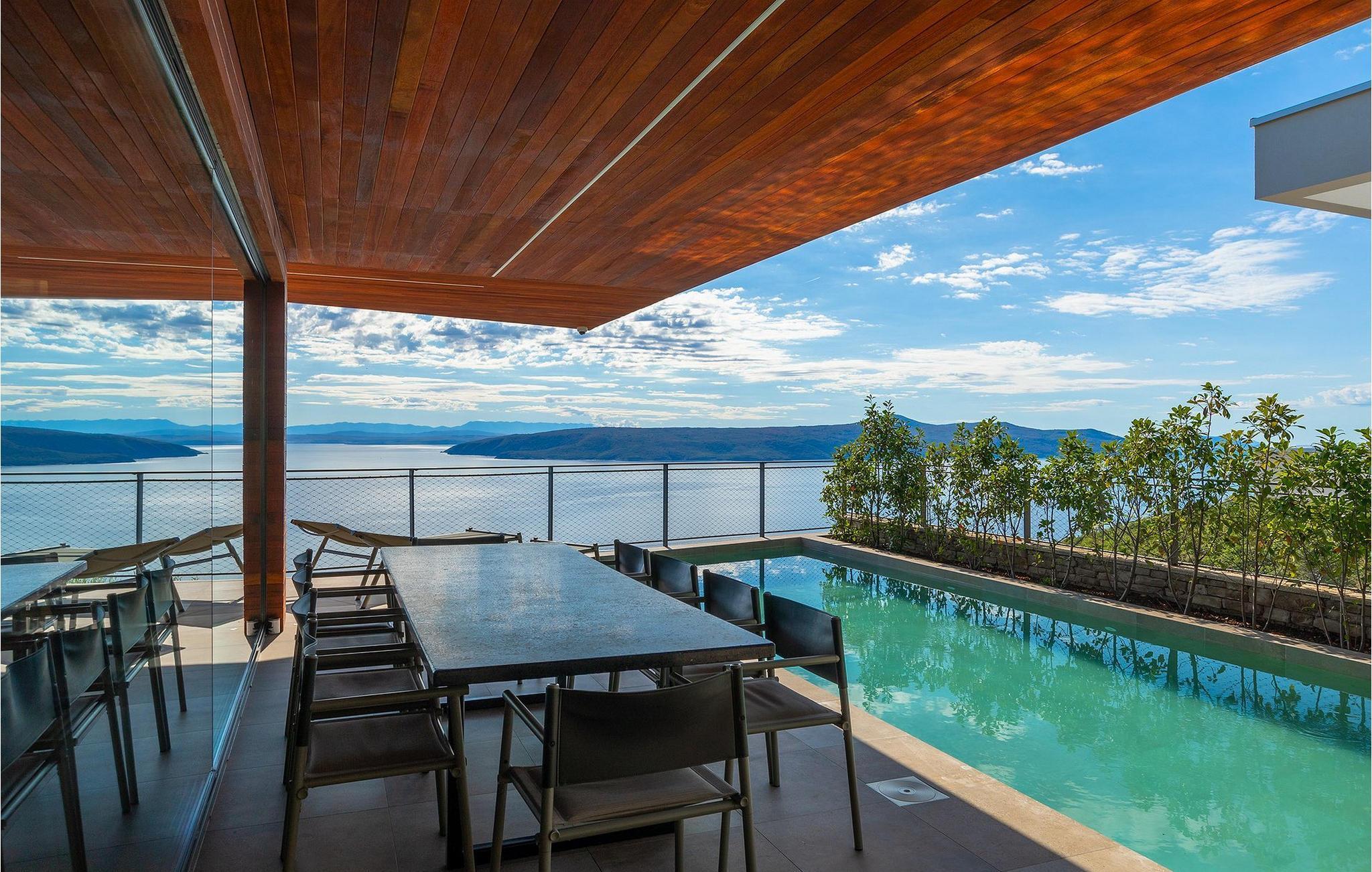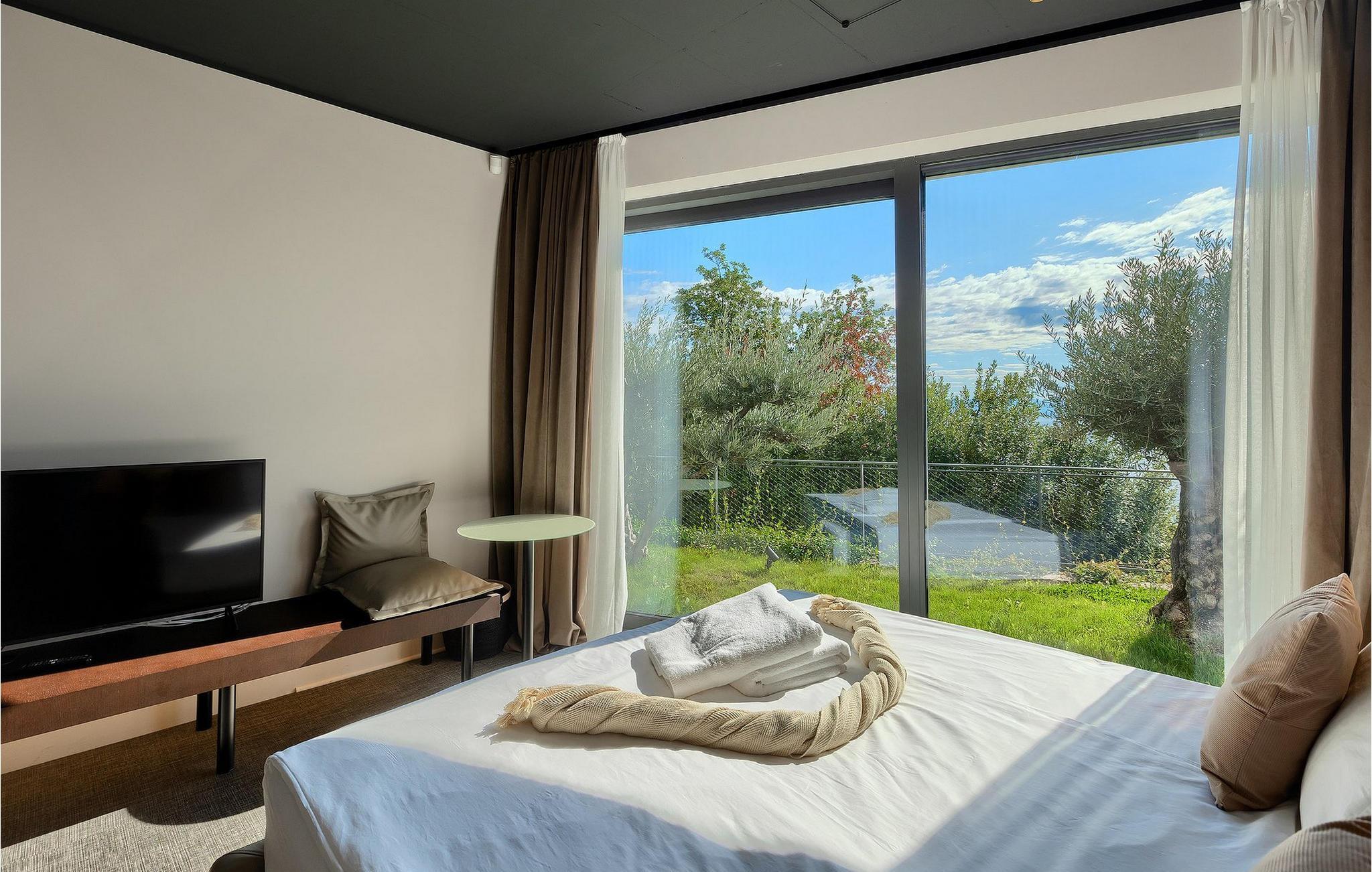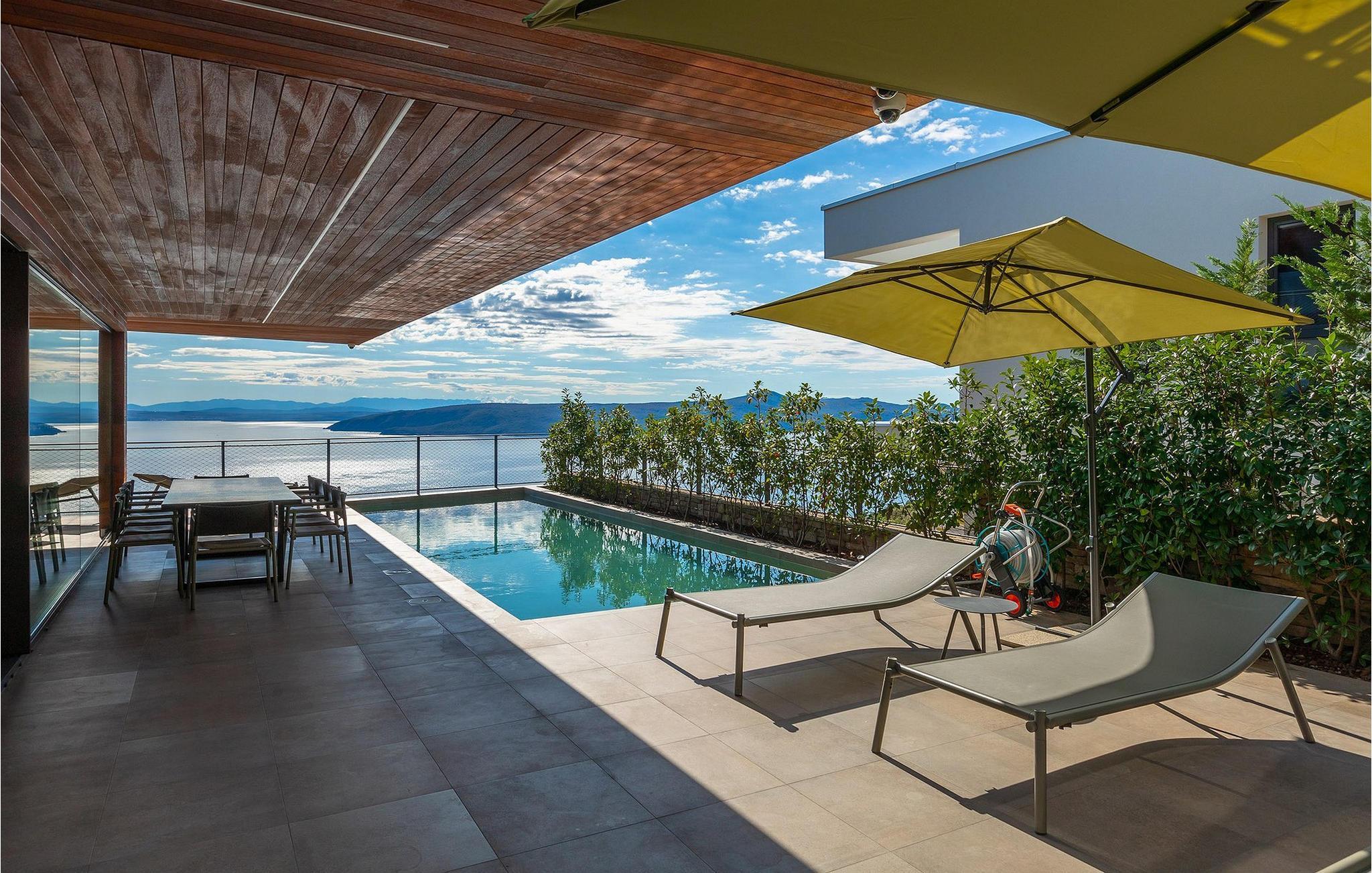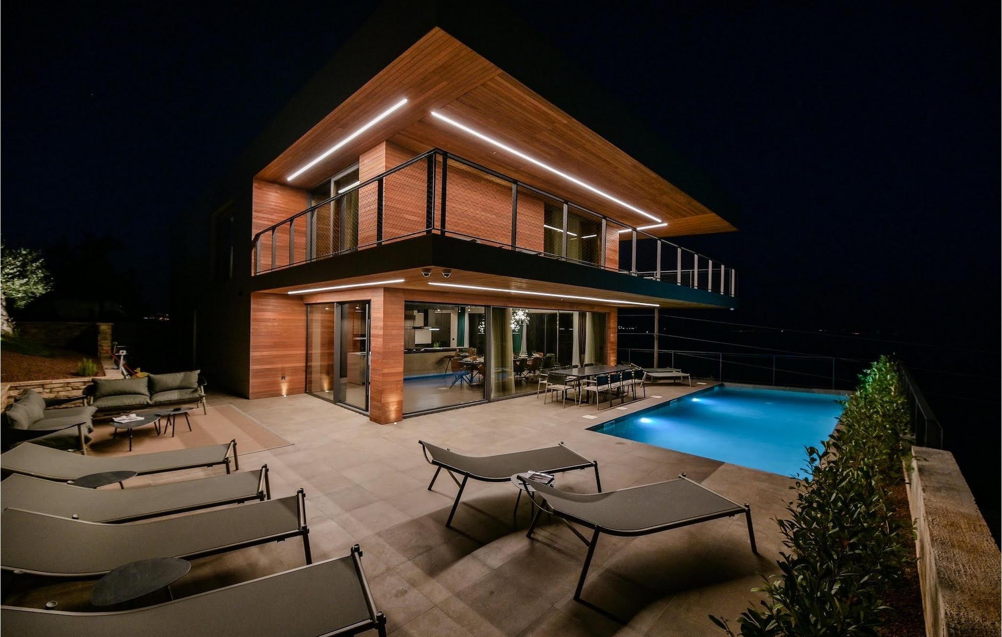 Die Luxusvilla Vista Hills bietet Ihnen einen unvergesslichen Urlaub mit königlicher Behandlung und Komfort. Die Villa verfügt über einen atemberaubenden Ausblick auf die Kvarner-Bucht und ist darauf ausgelegt, Ihren Aufenthalt mit Ruhe und in positiver Atmosphäre zu beeindrucken. Die Villa hat fünf Schlafzimmer für zehn Gäste, mit der Möglichkeit, bis zu zwei weitere Gäste auf Zustellbetten unterzubringen. Jedes Schlafzimmer ist klimatisiert und verfügt über ein eigenes Bad, einen Fernseher und Zugang zum Balkon. Im ersten Stock befinden sich drei moderne und luxuriöse Zimmer. Zwei weitere Zimmer befinden sich im dritten Stock. Im zweiten Stock der Villa befindet sich ein geräumiges Wohnzimmer mit hochwertigen italienischen Möbeln sowie ein Essbereich und eine komplett ausgestattete Küche, die nach den Anweisungen eines professionellen Kochs gestaltet wurde. Das Erdgeschoss der Villa bietet Ihnen eine Taverne mit Küche, ein idealer Ort für Geselligkeit. Ebenso befindet sich auf dieser Etage ein Wellnessraum mit Sauna, Whirlpool und Massageliege, wo Sie Körper und Geist aufladen können. Die Villa verfügt auch über ein Spielzimmer mit Spielzeug und Playstation, ein voll ausgestattetes Fitnessstudio und ein großes Büro. Olivenbäume sorgen für eine authentische mediterrane Atmosphäre und ein beheizter Pool mit Sonnenliegen und einem Loungebereich lädt zum Entspannen ein. Die Terrasse samt Esstisch und Grill ist vom inneren Essbereich aus zugänglich und ein idealer Ort zum Verweilen mit Familie sowie Freunden mit herrlichem Panoramablick. Neben der Unterkunft in der Villa, gibt es auf Anfrage und gegen Aufpreis verschiedene Zusatzleistungen wie ein privater Trainer, professioneller Koch, der köstlichte Spezialitäten zubereitet, ein Besuch von einem berühmten Sommelier, Schönheitsbehandlungen und Massagen, Yacht Verleih, Elektrofahrräder, Tauchlehrer und vieles mehr. Das Grundstück ist eingezäunt und bietet Parkplätze für 5 Fahrzeuge, 2 davon in der Garage.Nur einen Katzensprung von Opatija “der Perle der Adria” befindet sich die Luxusvilla Vista Hills, gelegen in einer kleinen Ortschaft Mošcenice. Die naheliegende Ortschaft Mošcenicka Draga ist bekannt für seinen schönen 2 km langen Kiesstrand Šipar und den Yachthafen. Rijeka, die größte Stadt der Kvarner Region, ist nur 20 km entfernt von der Villa. Sie können dort viele kulturelle und historische Denkmäler besuchen und die interessante lokale Geschichte, Kultur und Tradition kennenlernen. Die größte und bekannteste Manifestation in dieser Gegend ist der Karneval von Rijeka, heute einer der größten Karnevalsumzüge in Europa und der Welt. Im Jahr 2020 Rijeka war Kulturhauptstadt Europas.