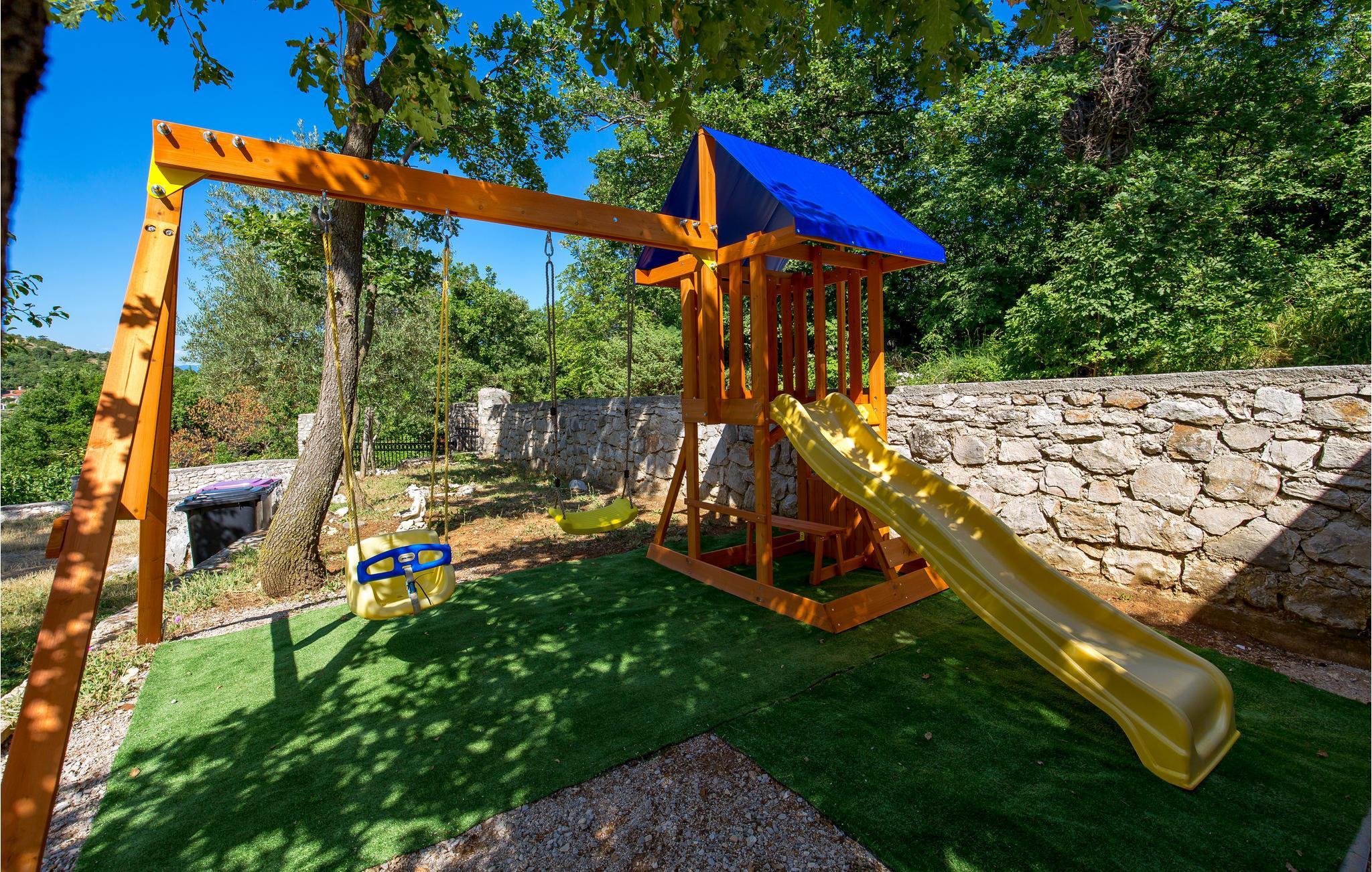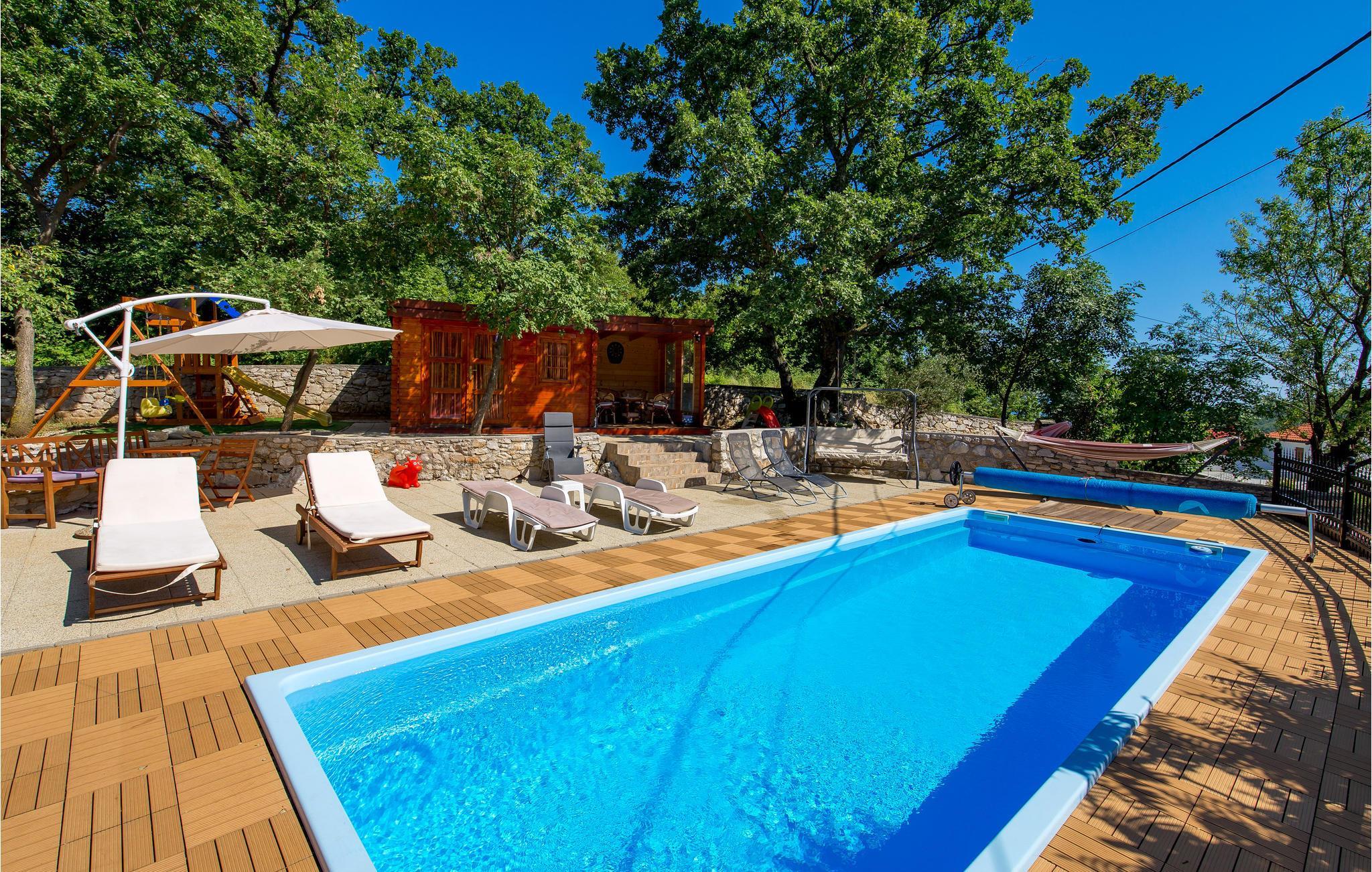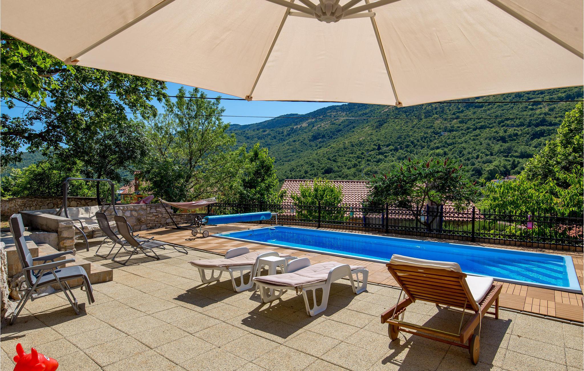 Oberhalb von Moscenicka Draga und in der Nähe von Brsec befindet sich dieses schöne Ferienhaus. Es liegt auf einem kaskadenartigen Grundstück und besteht aus zwei Häusern. Hier in natürlicher Umgebung finden Ruhesuchende die besten Voraussetzungen für einen rundum gelungenen Urlaub. Das Haupthaus besteht aus geräumigen Wohnzimmer mit Küche und Essbereich, zwei Schlafzimmern und zwei Bädern, während das Nebengebäude aus einer Wohnküche, Schlafzimmer und Bad besteht. Sobald es warm wird, steht Ihnen auf dem umzäunten Grundstück ein einladender Pool zur Verfügung und die Kleinsten können Ihre Freizeit am Spielbereich verbringen. Die schönen Strände entlang der Riviera von Opatija erreichen Sie nach einer kurzen Autofahrt.