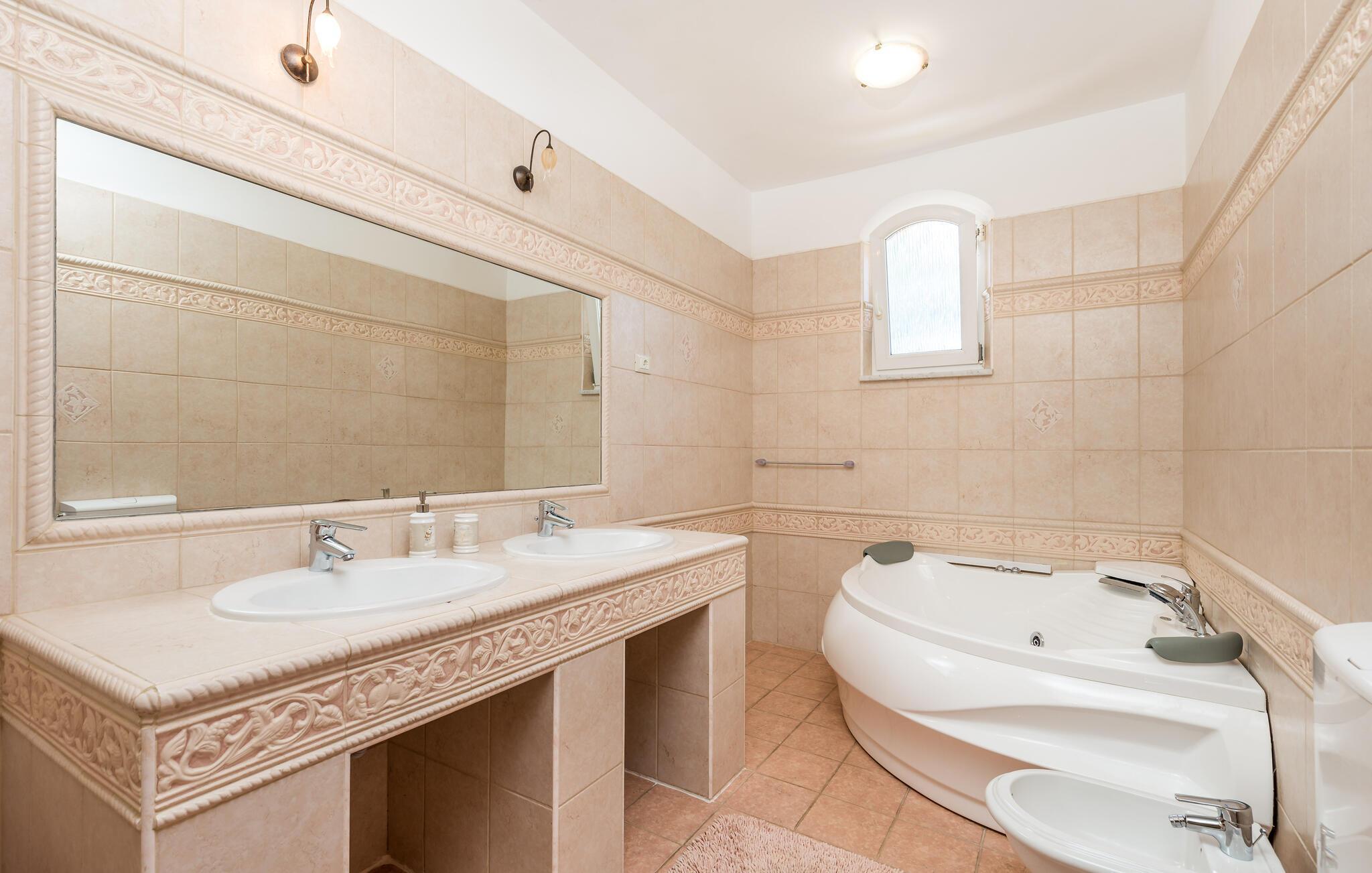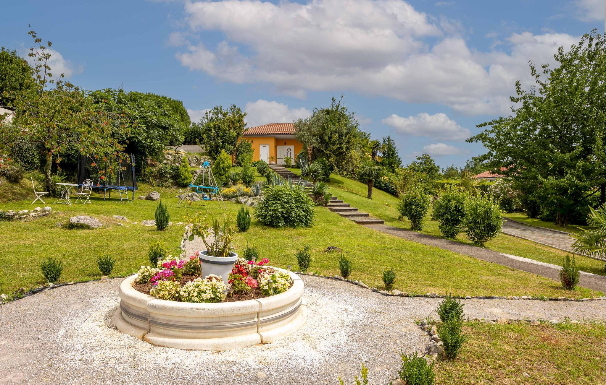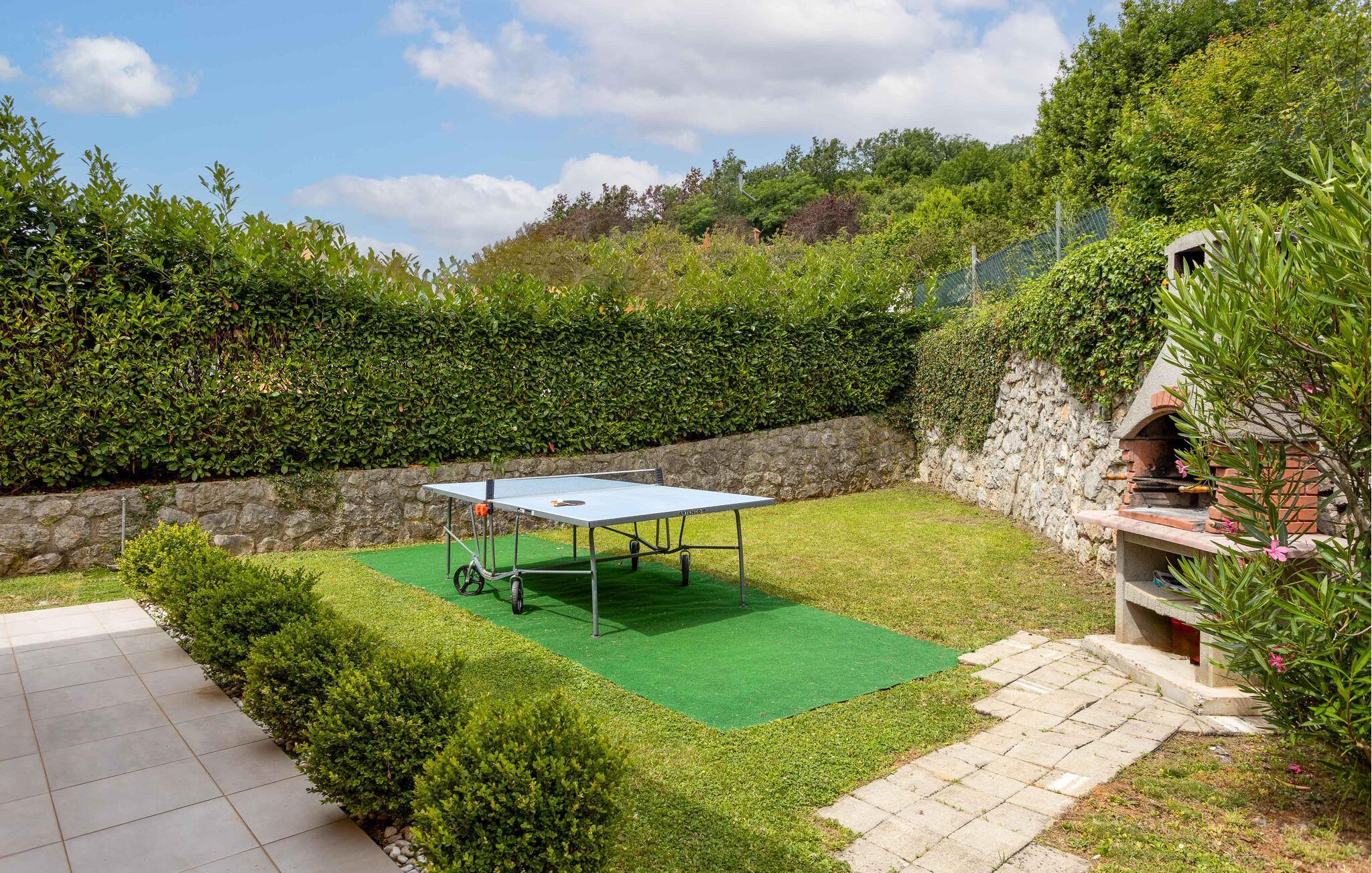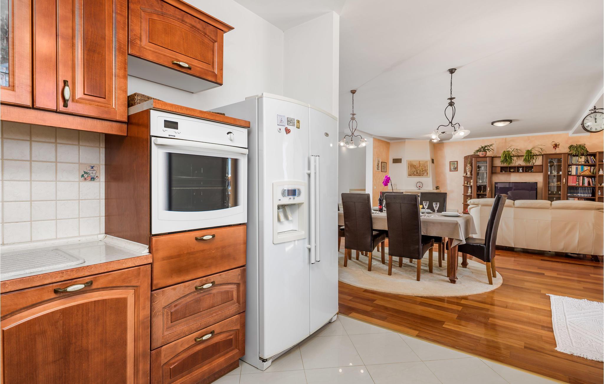 Verbringen Sie einen unvergesslichen Urlaub in diesem schönen Ferienhaus mit eigenem Swimmingpool in der Nähe von Opatija. Das Grundstück ist wunderbar angelegt und bietet viel Grün und eine Reihe von Annehmlichkeiten wie Pool, Liegestühle, Trampolin und Tischtennisplatte. Die Parkplätze befinden sich im unteren Grundstücksbereich, von wo Sie über Stufen zum Haus und Garten gelangen. Genießen Sie die Stunden im Freien auf der Terrasse und den fantastischen Blick auf das Meer und die Kvarner Bucht. Die Innenräume sind geräumig, lichtdurchflutet und klimatisiert. Vom Wohnbereich führen Innentreppen zu den Schlafzimmern und Bädern.