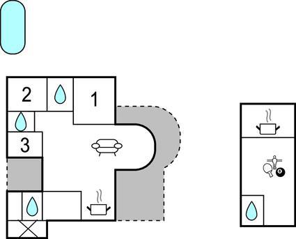 Badezimmer 8m2 (nr. 1) - WC. Warmes und kaltes Wasser. Badewanne