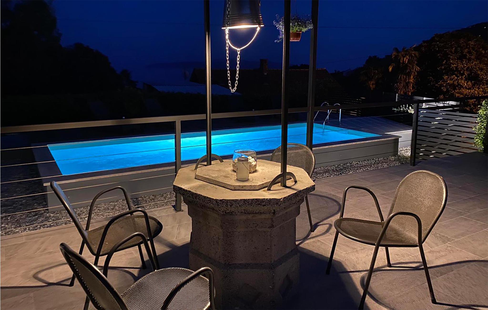 Während eines Frühstücks auf Ihrer Terrasse haben Sie das nahegelegene Meer bereits im Blick. Ziehen Sie gleich morgens Ihre Bahnen in Ihrem herrlichen Pool, bevor Ihre Kinder das Trampolin gegen erfrischendes Planschen eintauschen. Auch für stimmungsvolle Grillabende bietet Ihr geschützter Garten eine wunderbare Kulisse.