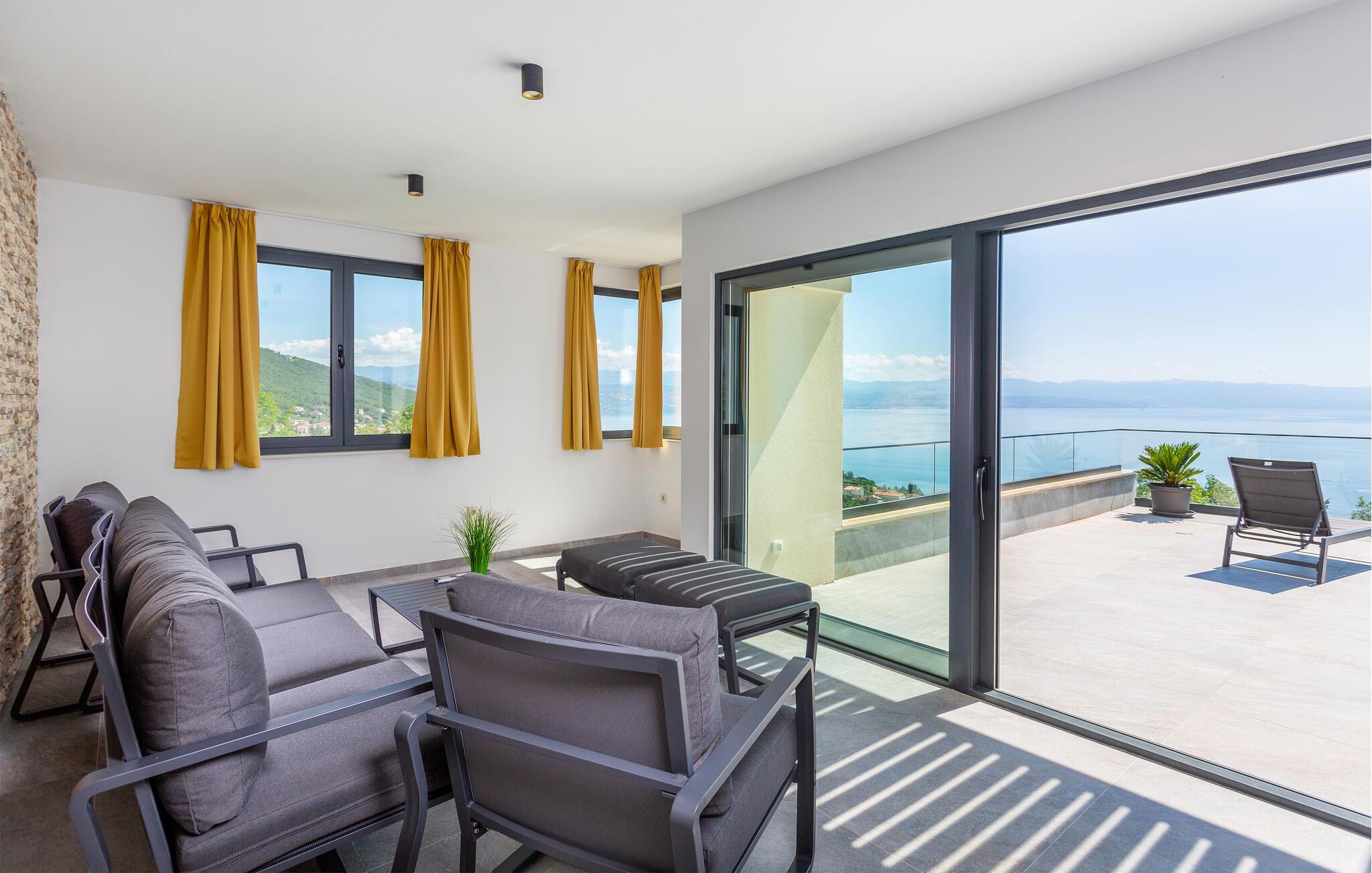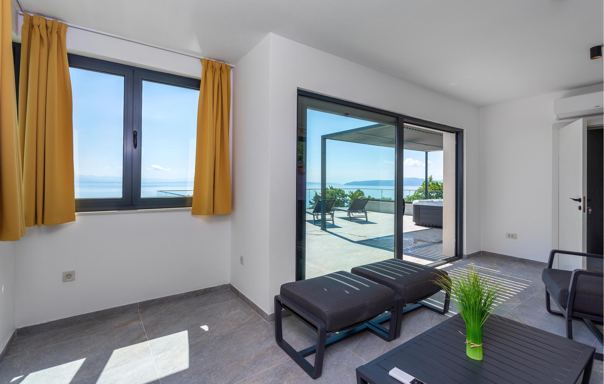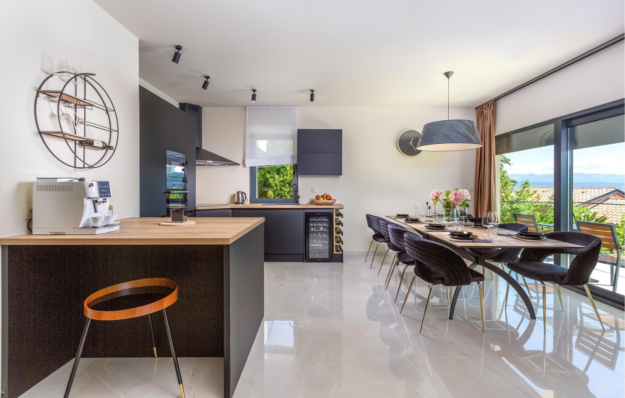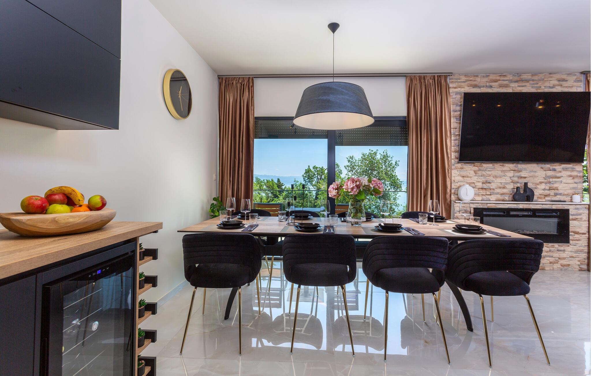 Verbringen Sie eine unvergessliche Zeit in diesem modernen und geräumigen Haus, das Sie in fantastischer Panoramalage empfängt, von hier überblicken Sie die gesamte Kvarner Bucht und die Inseln Krk und Cres. Entspannen Sie in stilvollem Ambiente, elegante Räume mit komfortabler Ausstattung bilden den Rahmen um Ihren Aufenthalt. Bereiten Sie ein gutes Abendessen zu, genießen Sie die traumhafte Aussicht durch bodentiefe Fenster, schwimmen Sie bei jedem Wetter im Pool und machen Sie es sich nach einem spannenden Tag gemeinsam gemütlich.
