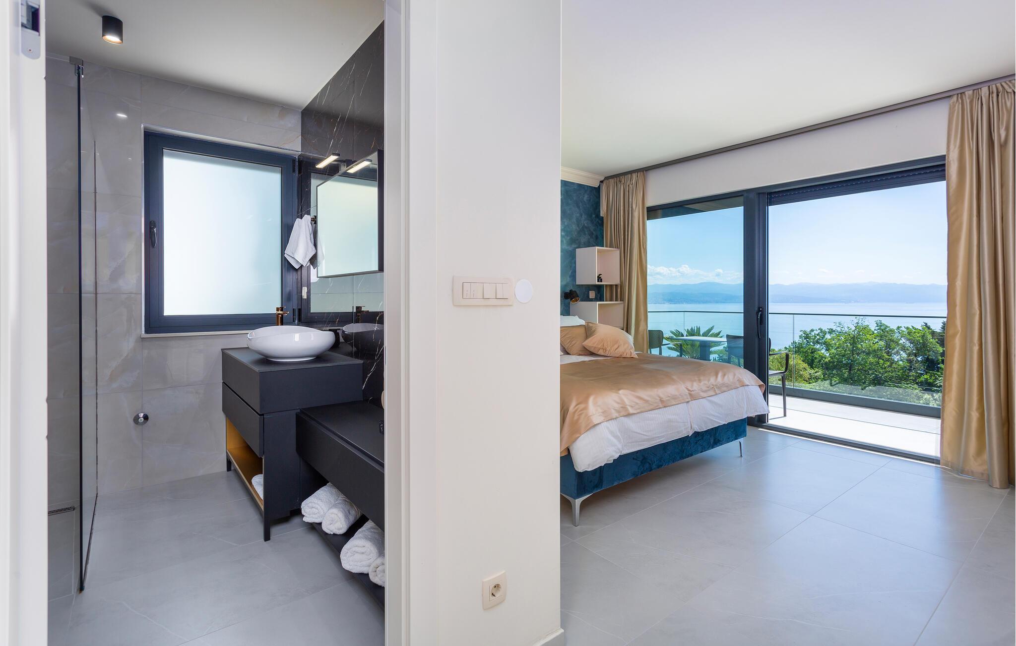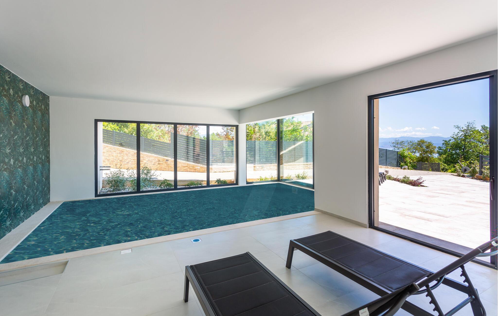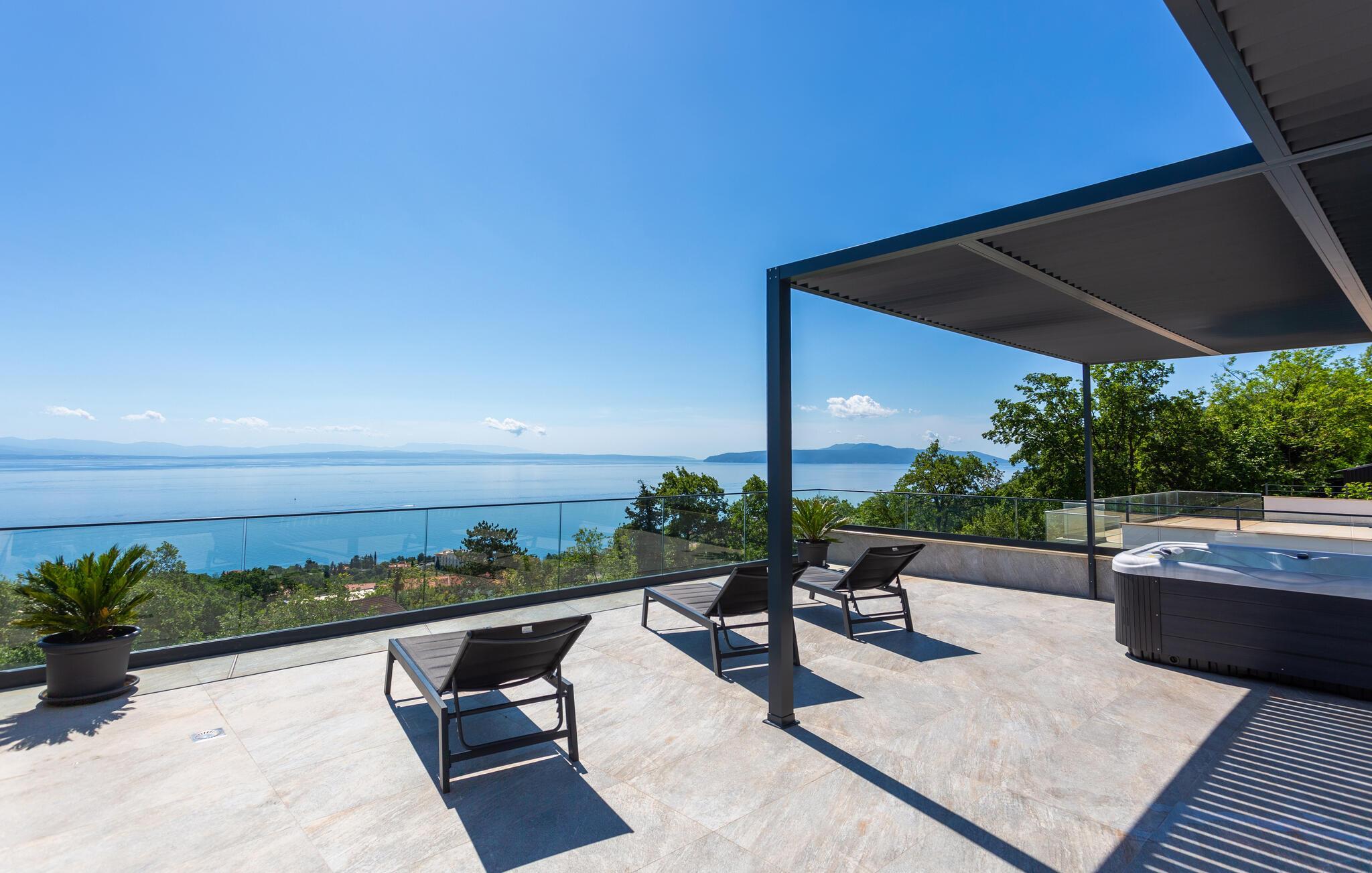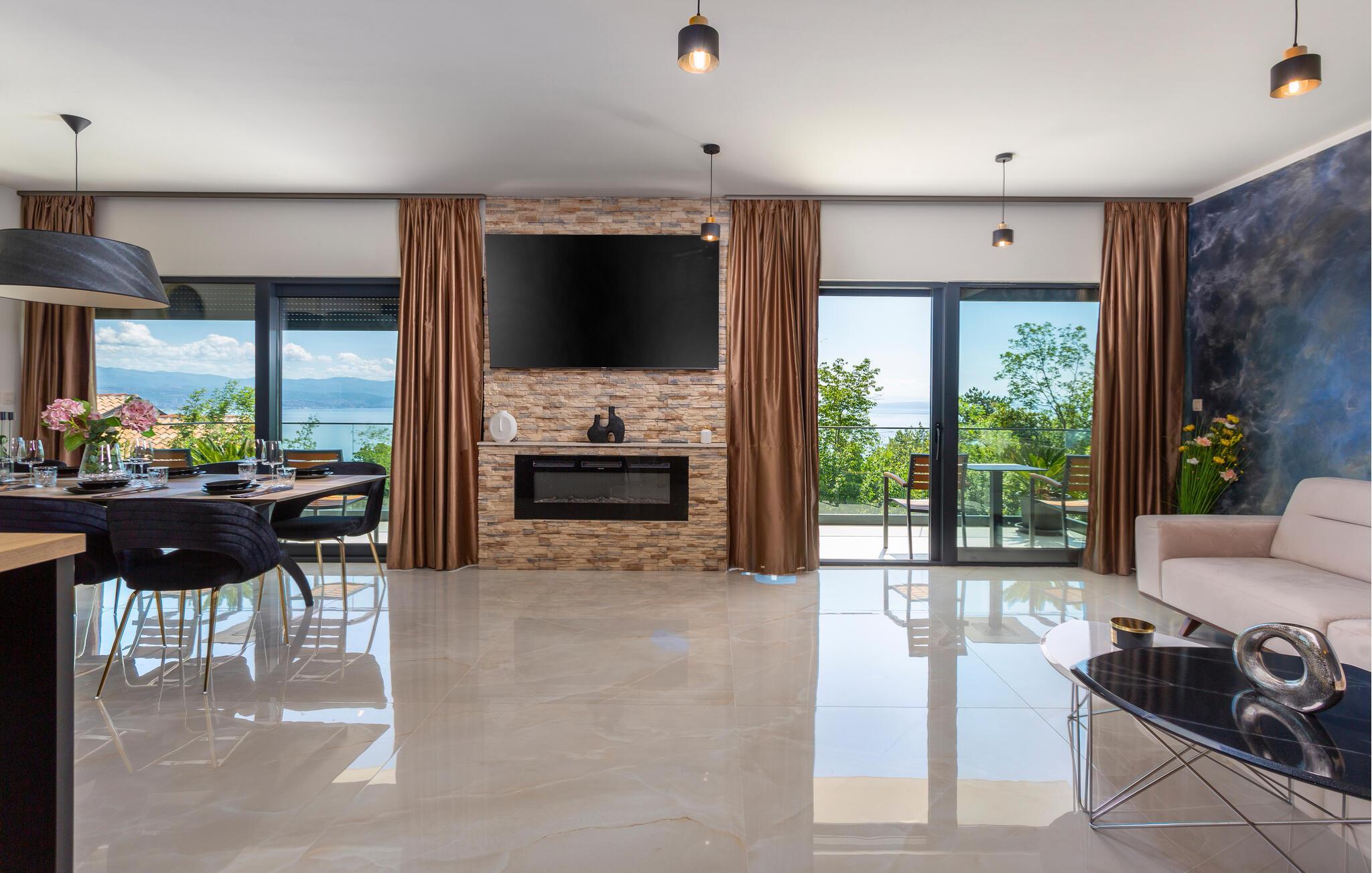 Verbringen Sie eine unvergessliche Zeit in diesem modernen und geräumigen Haus, das Sie in fantastischer Panoramalage empfängt, von hier überblicken Sie die gesamte Kvarner Bucht und die Inseln Krk und Cres. Entspannen Sie in stilvollem Ambiente, elegante Räume mit komfortabler Ausstattung bilden den Rahmen um Ihren Aufenthalt. Bereiten Sie ein gutes Abendessen zu, genießen Sie die traumhafte Aussicht durch bodentiefe Fenster, schwimmen Sie bei jedem Wetter im Pool und machen Sie es sich nach einem spannenden Tag gemeinsam gemütlich.