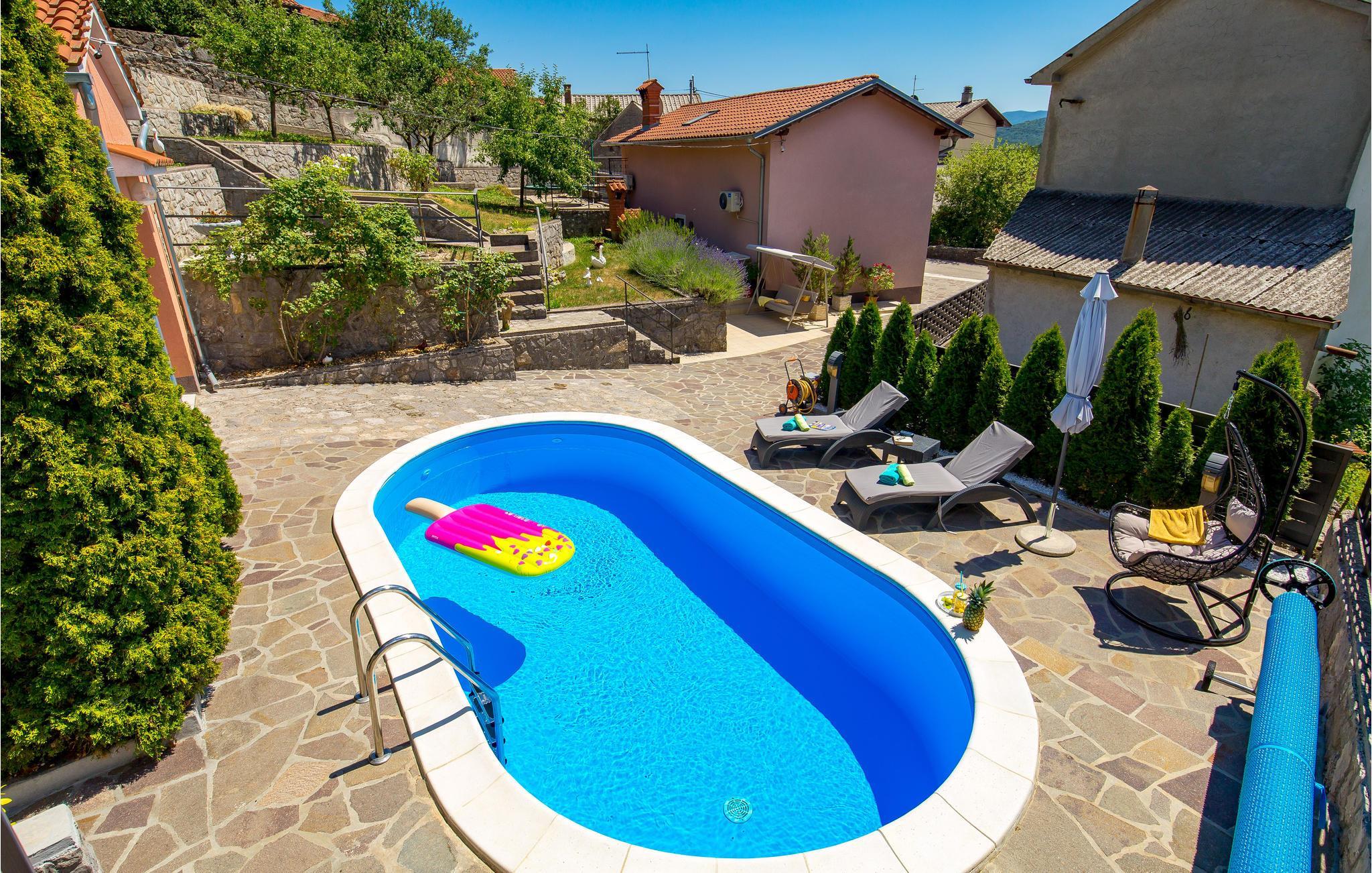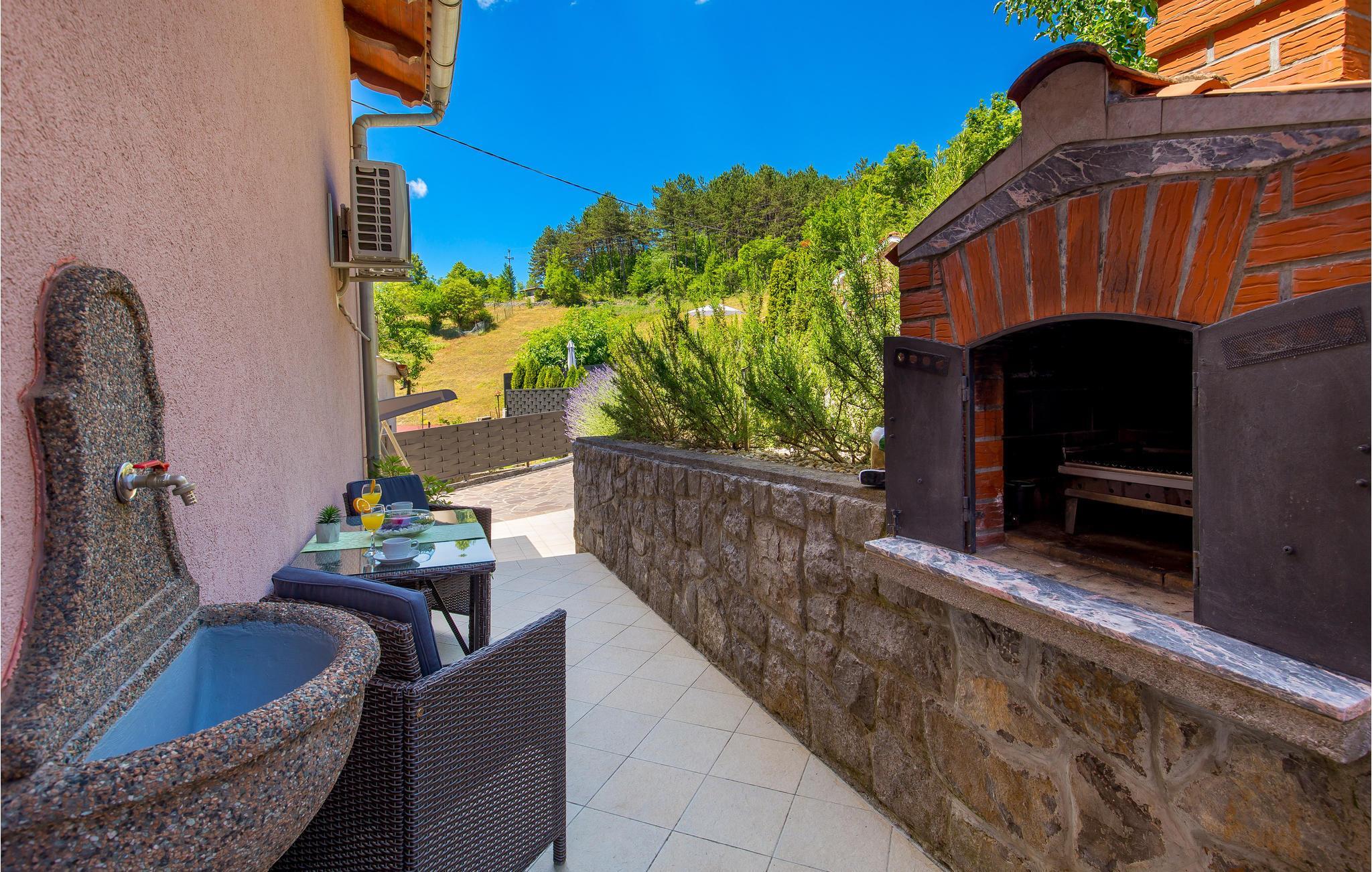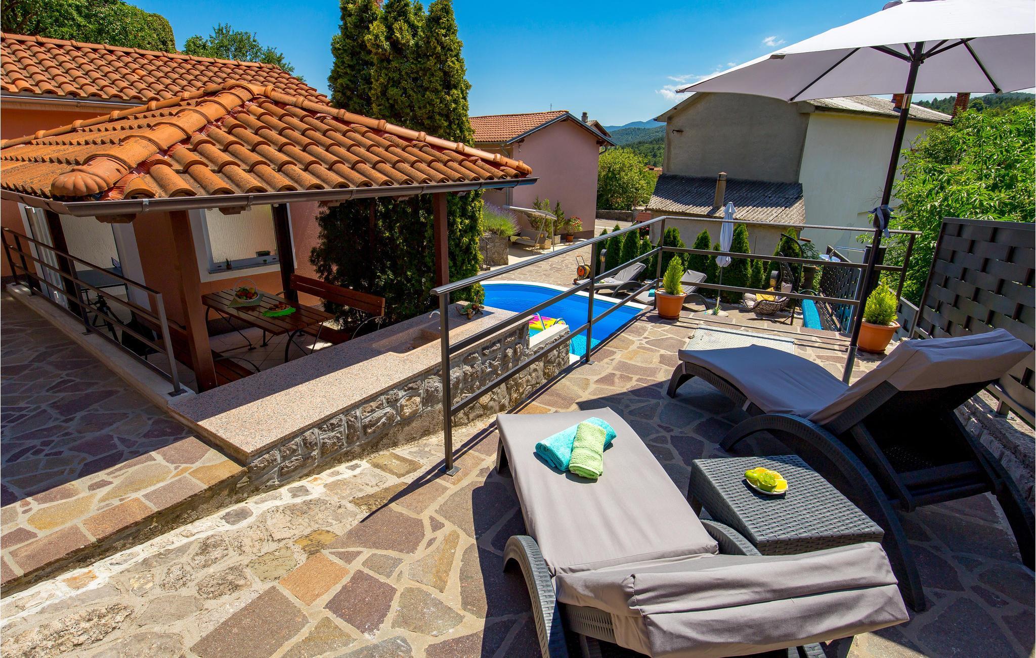 In einem typischen Dorf oberhalb der Kvarner Bucht, am Waldrand befindet sich dieses charmante und geschmackvoll eingerichtete Ferienhaus. Es ist ein ideales Urlaubsziel für Naturliebhaber sowie Haustierbesitzer. Es gibt eine überdachte Terrasse, auf der Sie tagsüber oder abends entspannen und Lieblingsspezialitäten auf dem Grill zubereiten können, während die Kinder sorglos im Garten spielen. Besuchen Sie das nahe gelegene Opatija, die Perle der Kvarner Riviera, die viele Unterhaltungs- und Kulturveranstaltungen, zahlreiche gastronomische Einrichtungen und wunderschöne Strände für jedes Alter bietet.
