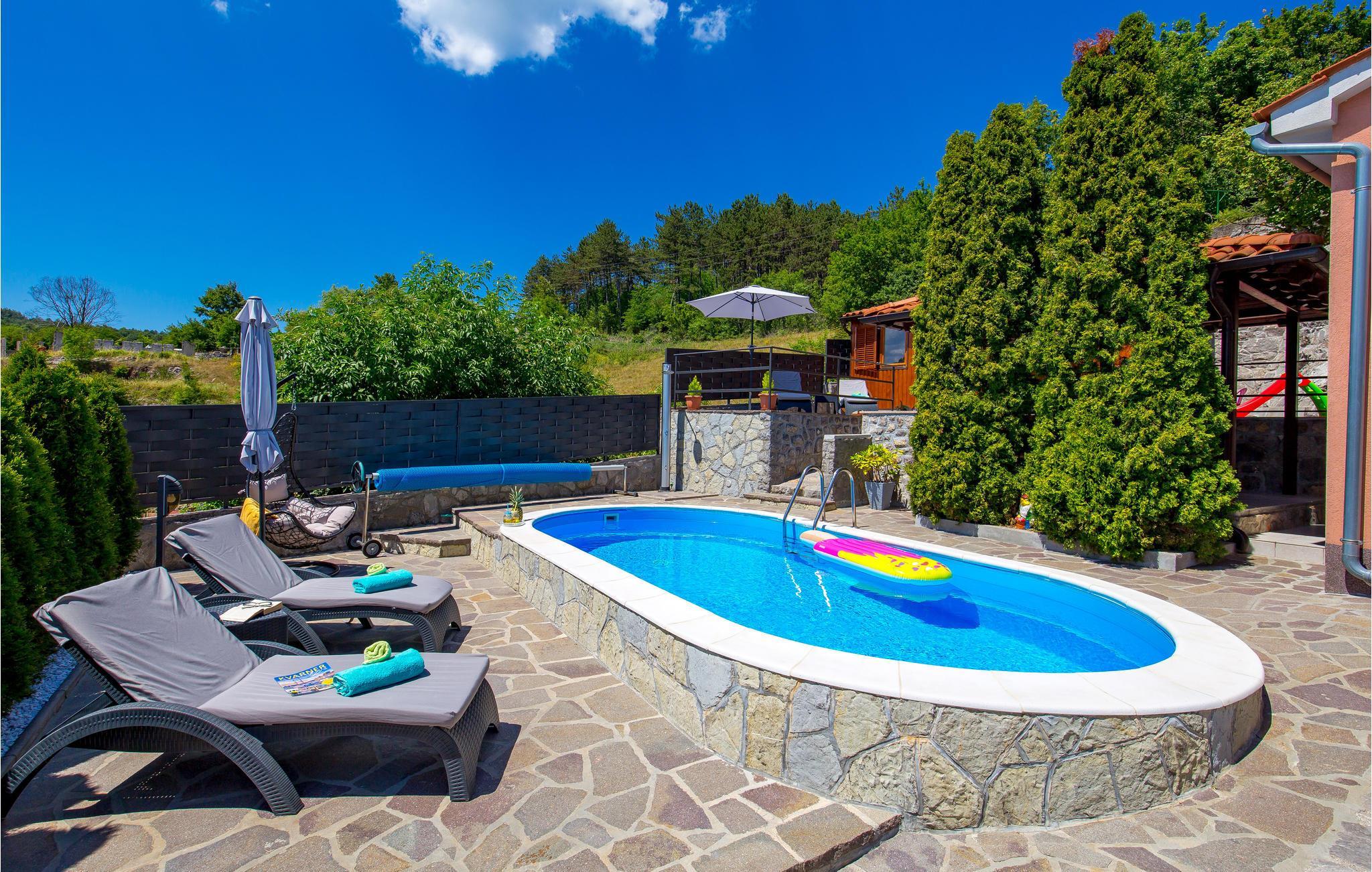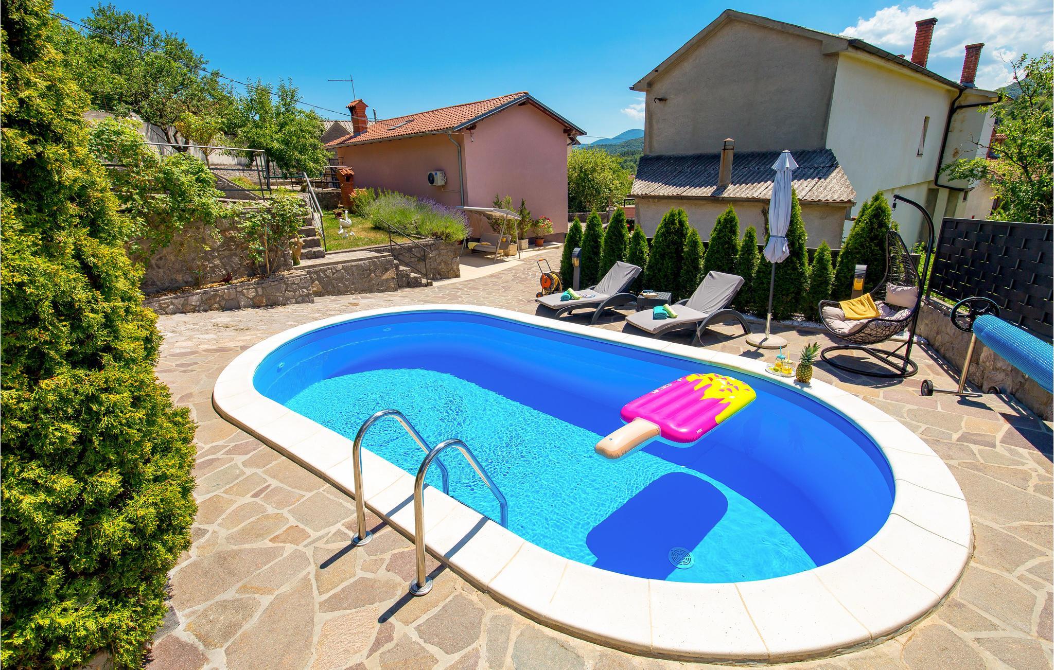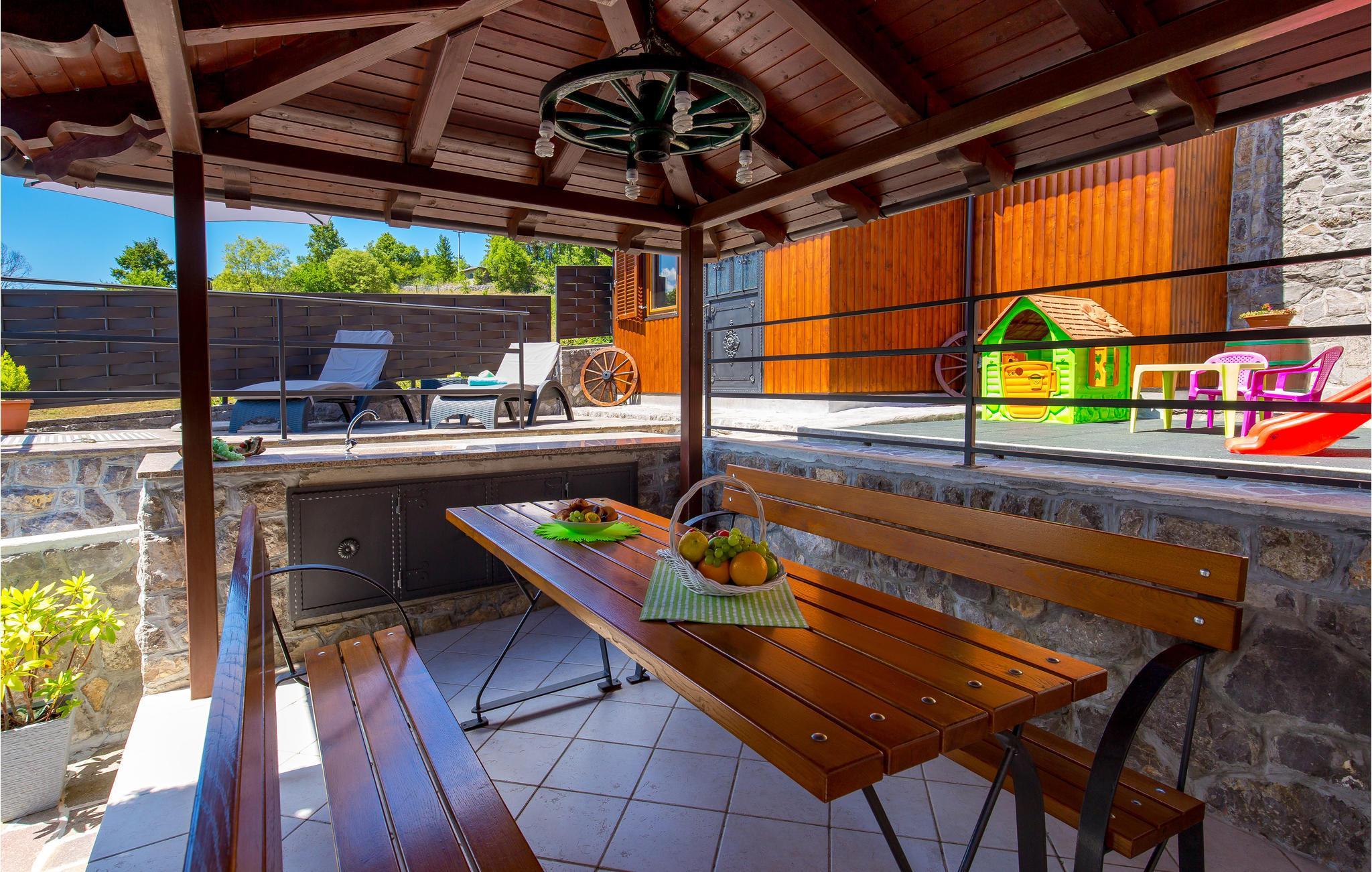 In einem typischen Dorf oberhalb der Kvarner Bucht, am Waldrand befindet sich dieses charmante und geschmackvoll eingerichtete Ferienhaus. Es ist ein ideales Urlaubsziel für Naturliebhaber sowie Haustierbesitzer. Es gibt eine überdachte Terrasse, auf der Sie tagsüber oder abends entspannen und Lieblingsspezialitäten auf dem Grill zubereiten können, während die Kinder sorglos im Garten spielen. Besuchen Sie das nahe gelegene Opatija, die Perle der Kvarner Riviera, die viele Unterhaltungs- und Kulturveranstaltungen, zahlreiche gastronomische Einrichtungen und wunderschöne Strände für jedes Alter bietet.